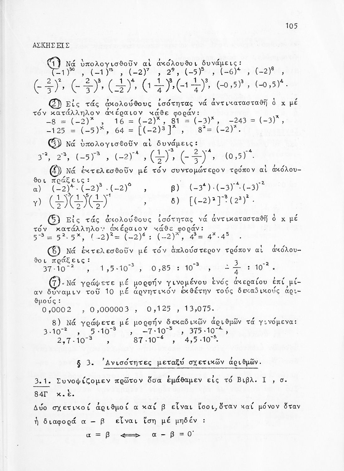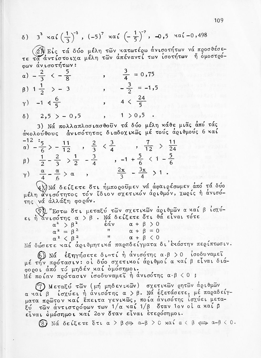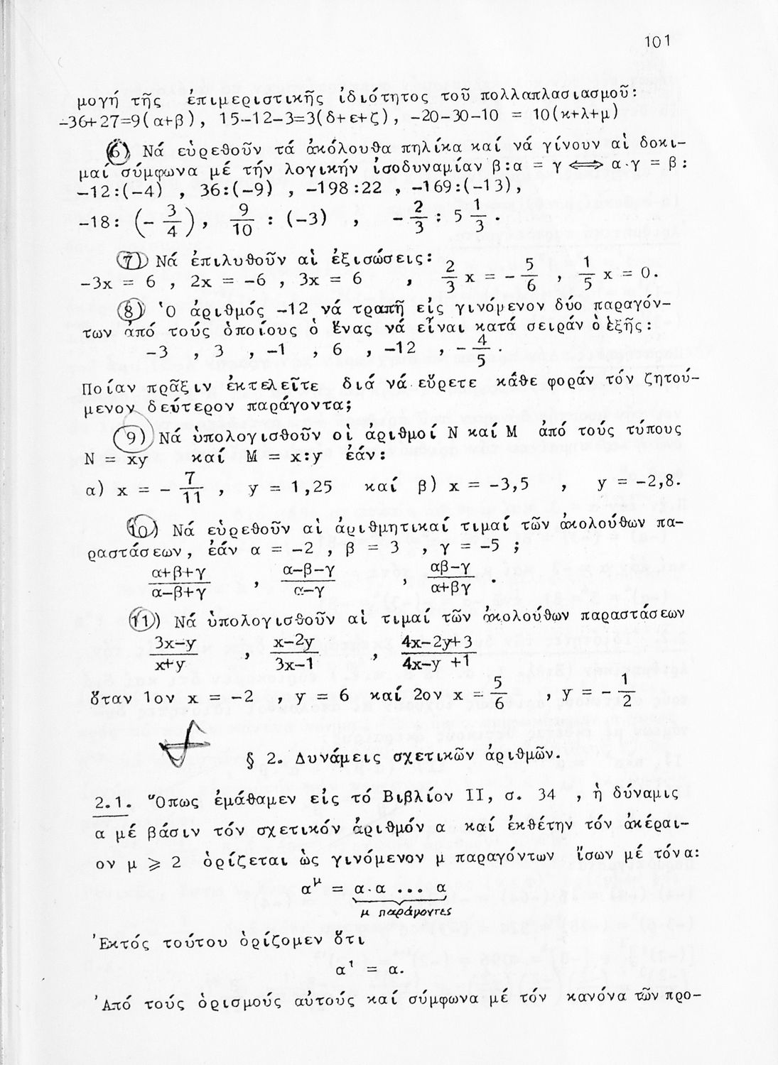 Σχολικό εγχειρίδιο Μαθηματικών Β΄ Γυμνασίου χωρισμένο σε θεωρία και ασκήσεις. Φέρει το σύμβολο της δικτατορίας.