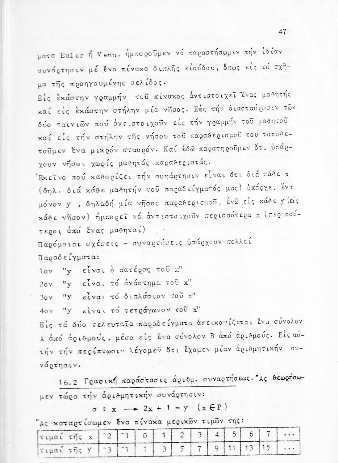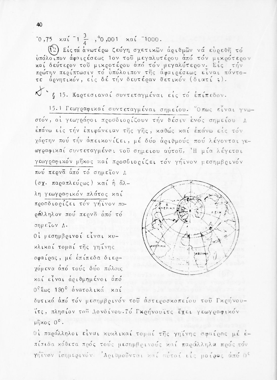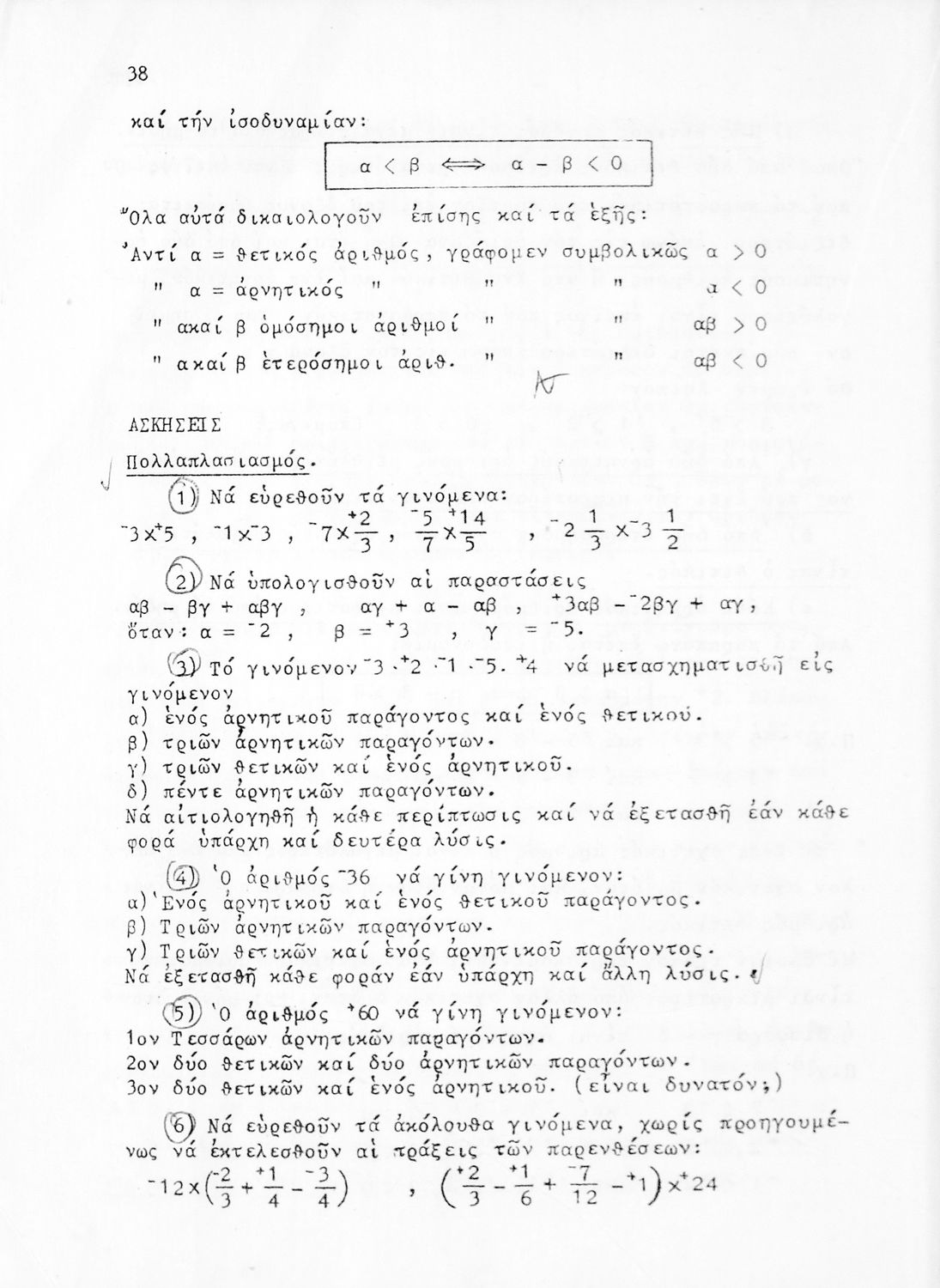 Βαθμίδα εκπαίδευσης: Δευτεροβάθμια Τάξη: Β' Γυμνασίου Μάθημα: Μαθηματικά Γλώσσα: Απλή καθαρεύουσα Παρουσίαση περιεχομένου: Σχολικό εγχειρίδιο Μαθηματικών Β΄ Γυμνασίου χωρισμένο σε θεωρία και ασκήσεις. Φέρει το σύμβολο της δικτατορίας. |