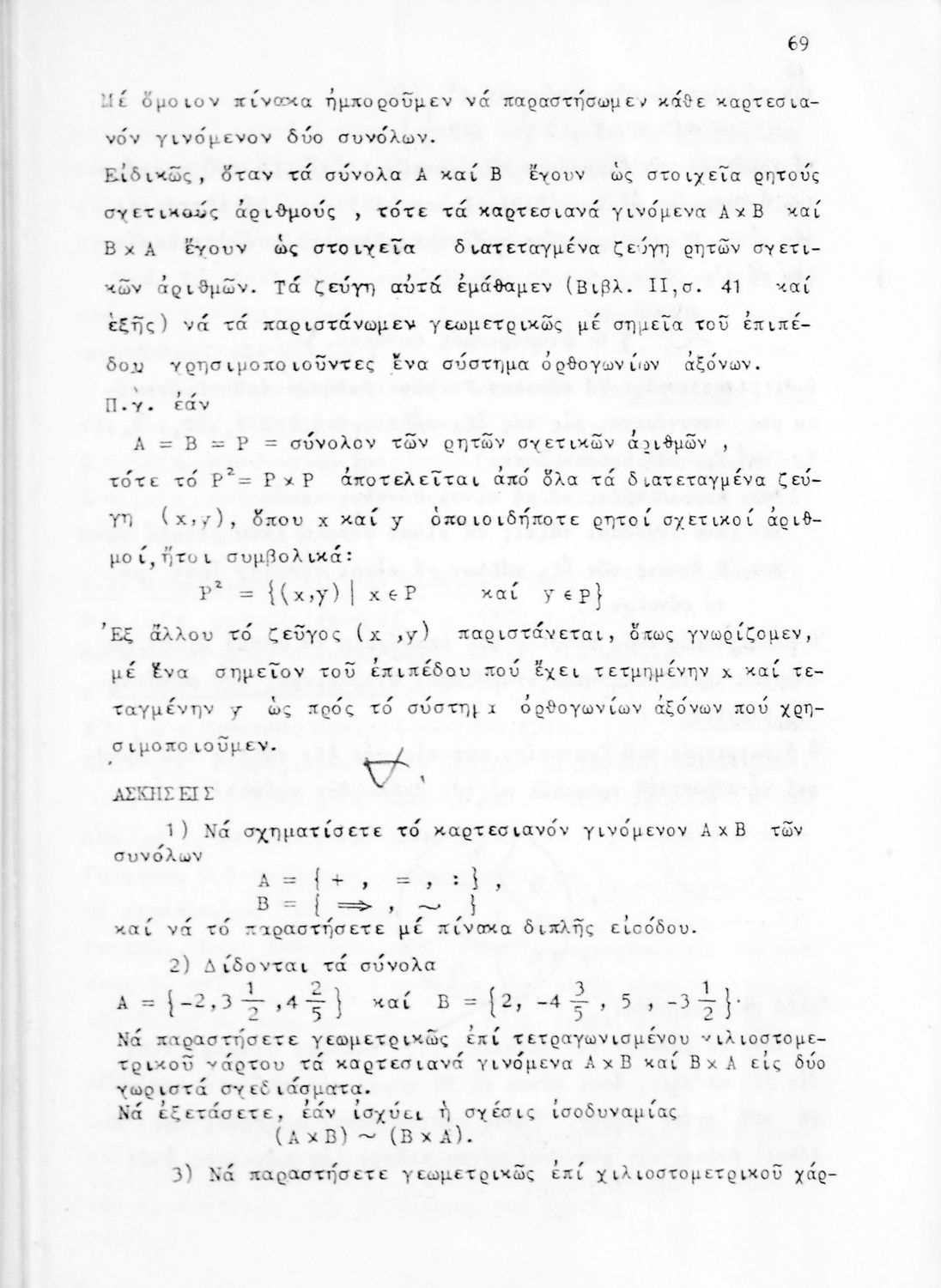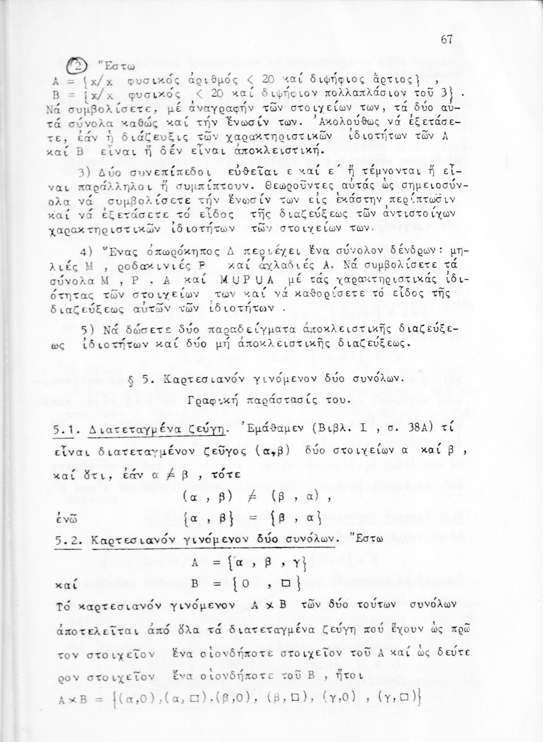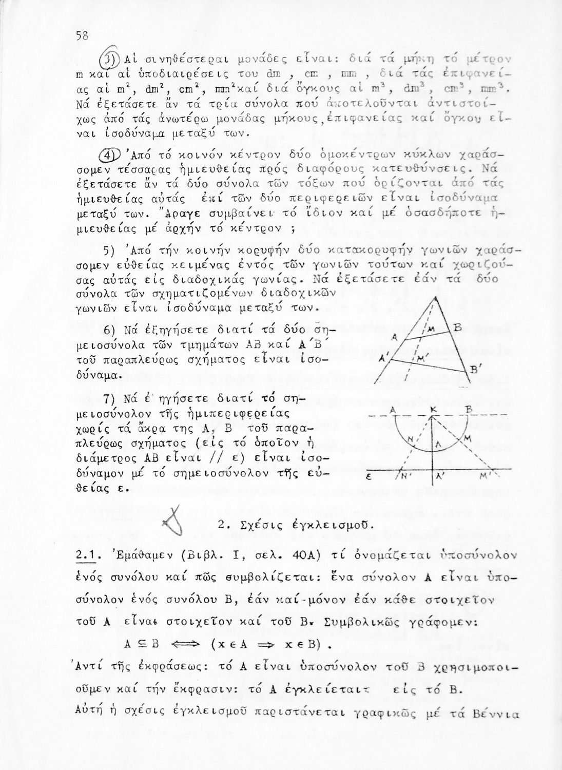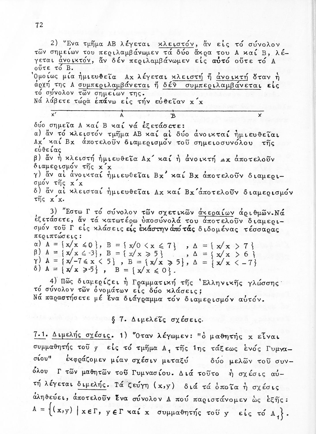 Βαθμίδα εκπαίδευσης: Δευτεροβάθμια Τάξη: Β' Γυμνασίου Μάθημα: Μαθηματικά Γλώσσα: Απλή καθαρεύουσα Παρουσίαση περιεχομένου: Σχολικό εγχειρίδιο Μαθηματικών Β΄ Γυμνασίου χωρισμένο σε θεωρία και ασκήσεις. Φέρει το σύμβολο της δικτατορίας. |