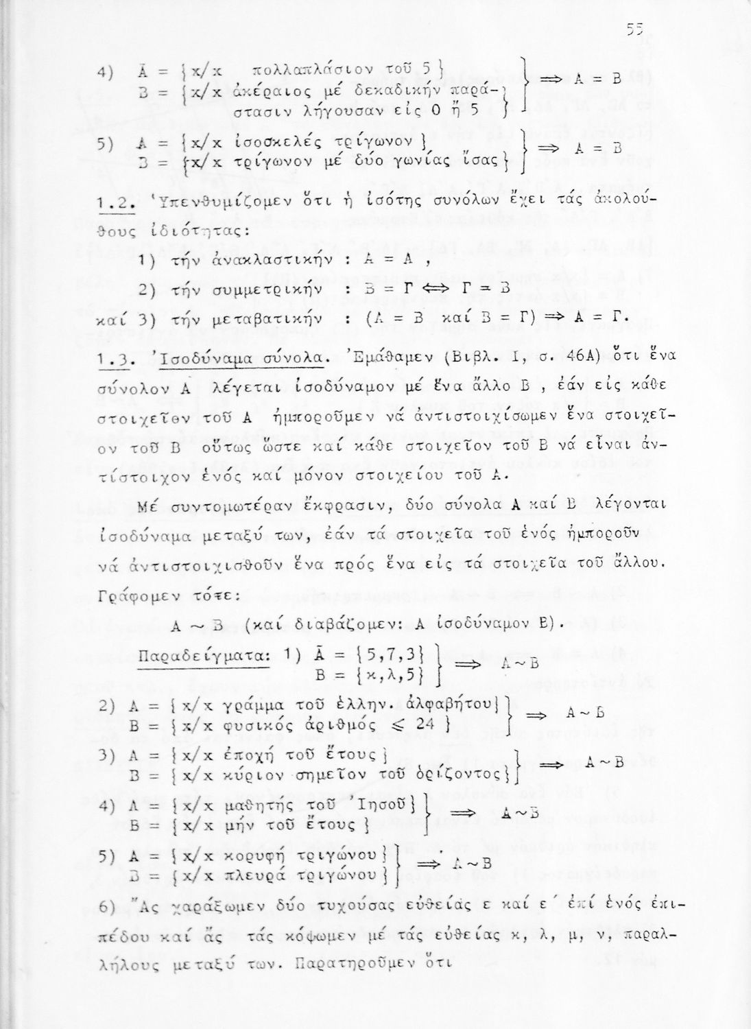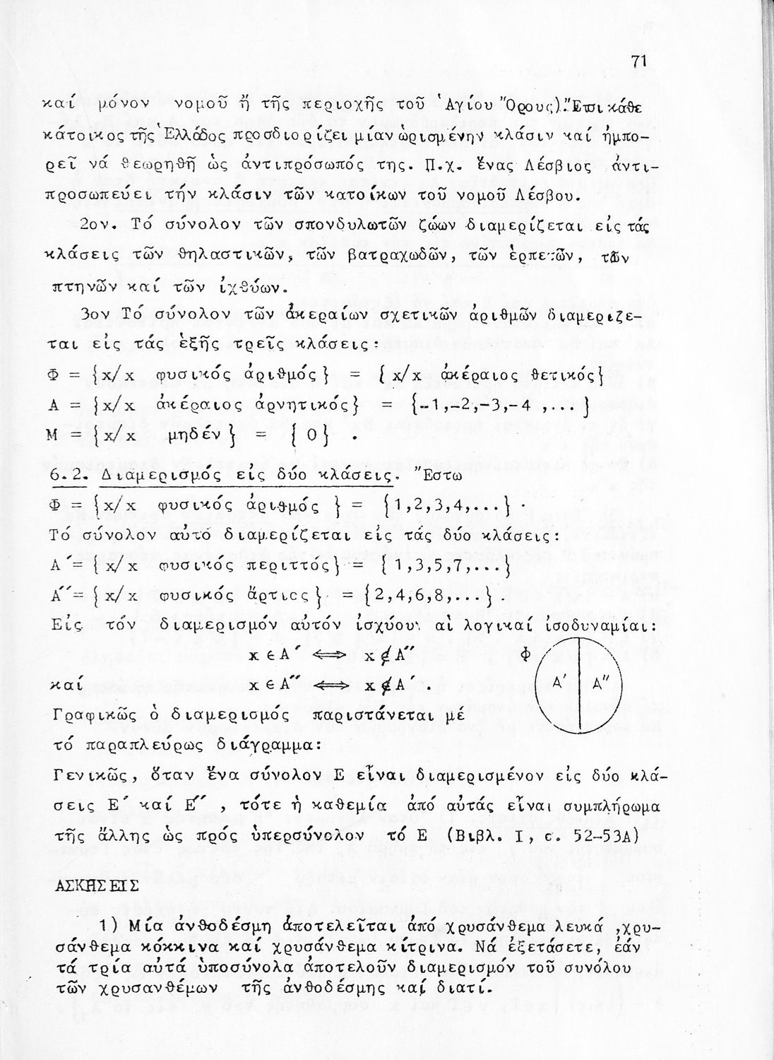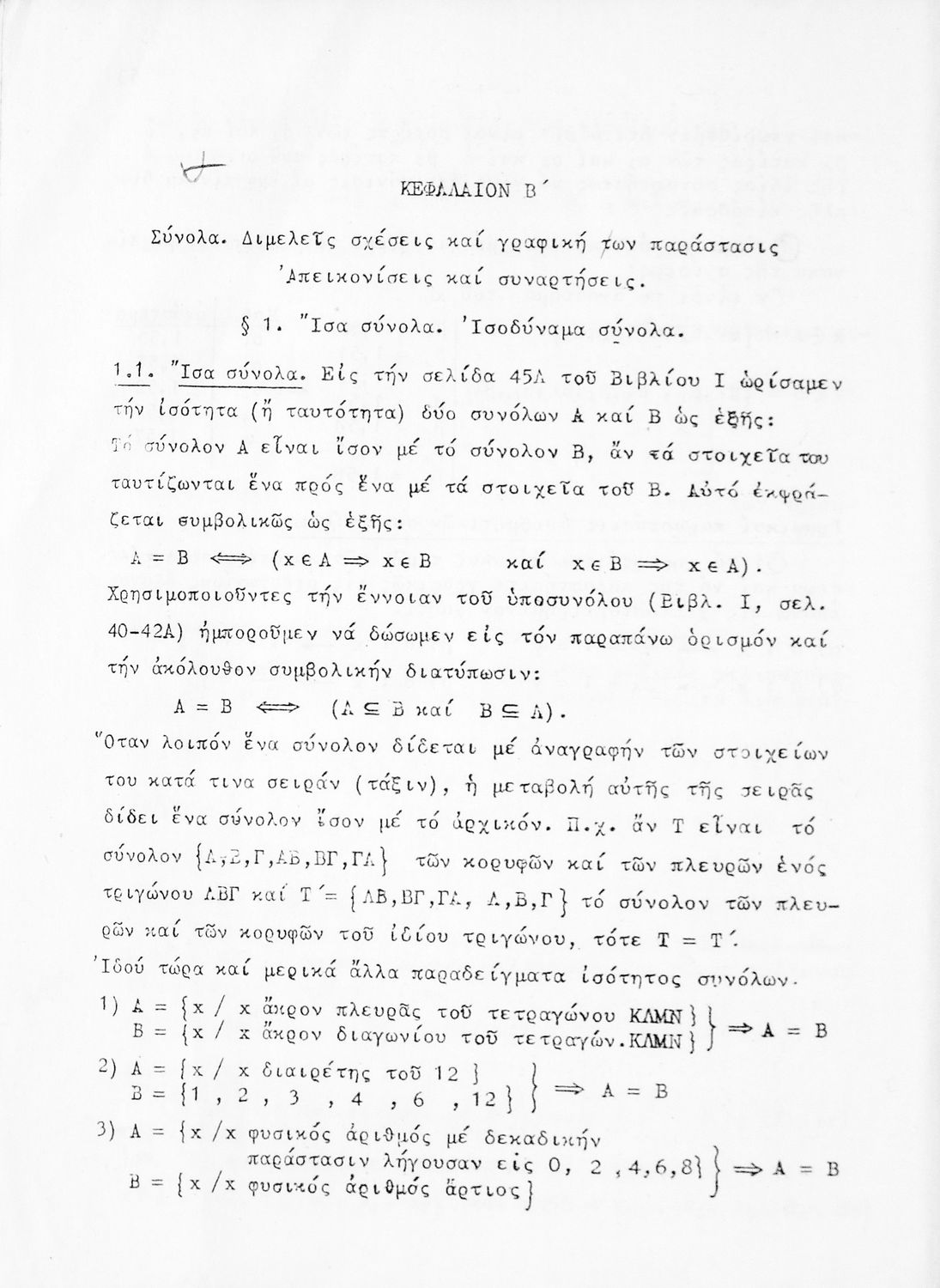 Βαθμίδα εκπαίδευσης: Δευτεροβάθμια Τάξη: Β' Γυμνασίου Μάθημα: Μαθηματικά Γλώσσα: Απλή καθαρεύουσα Παρουσίαση περιεχομένου: Σχολικό εγχειρίδιο Μαθηματικών Β΄ Γυμνασίου χωρισμένο σε θεωρία και ασκήσεις. Φέρει το σύμβολο της δικτατορίας. |