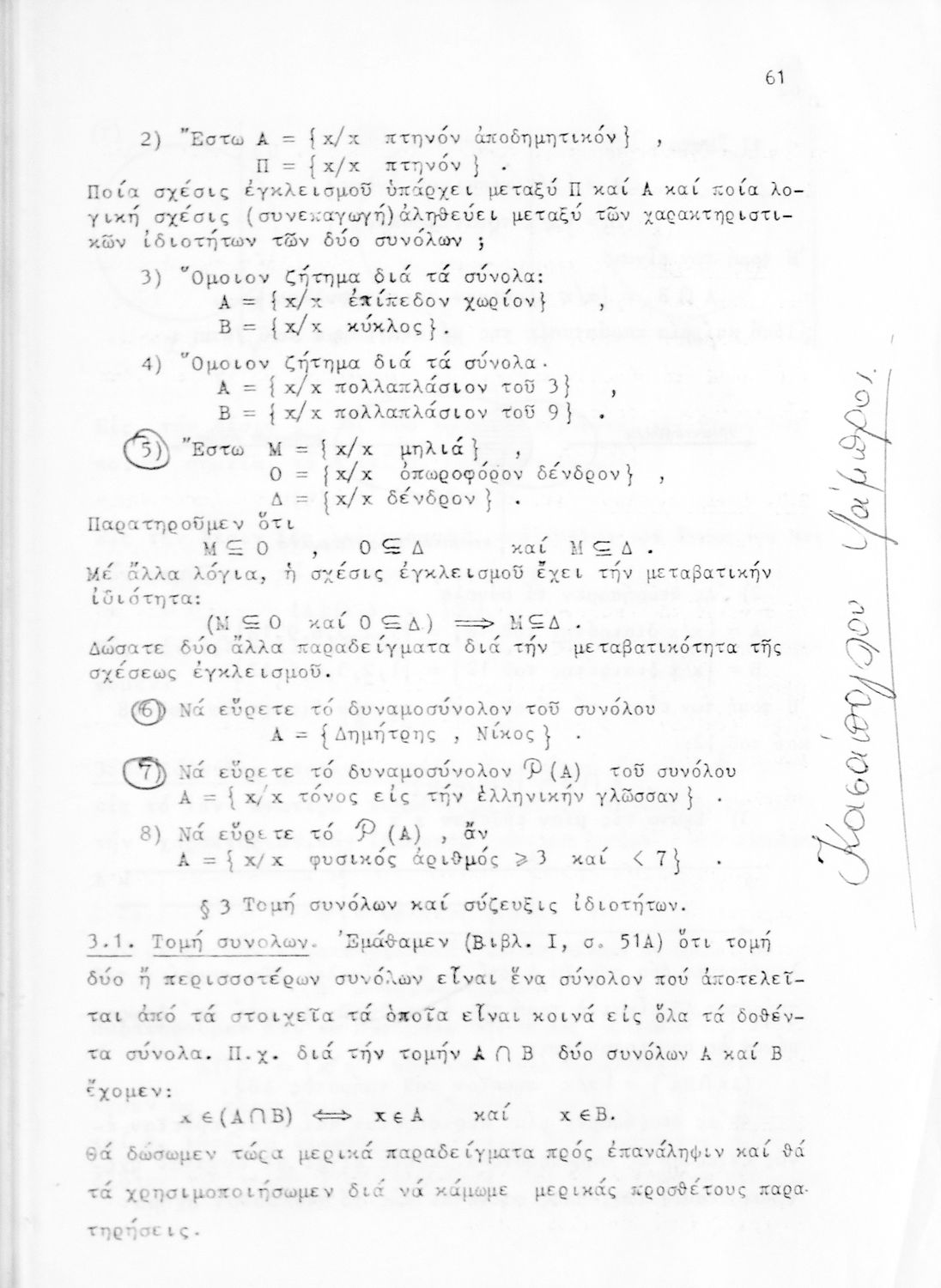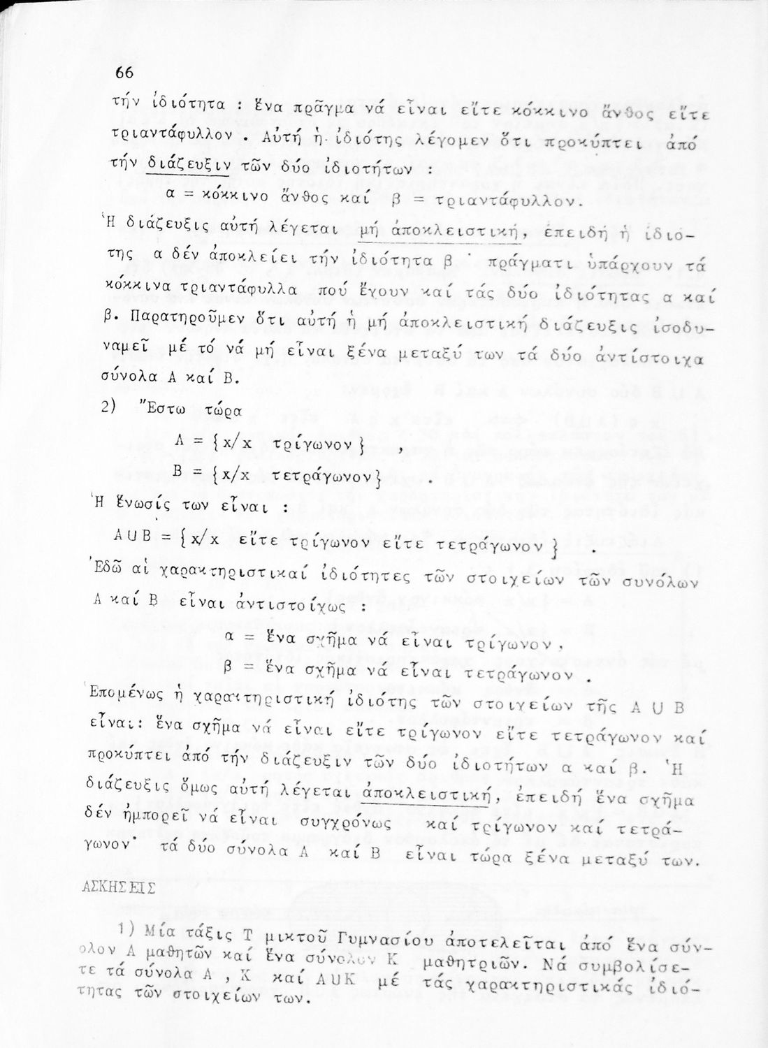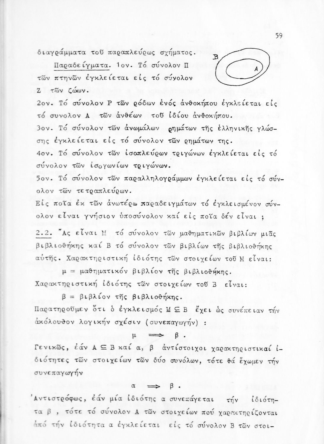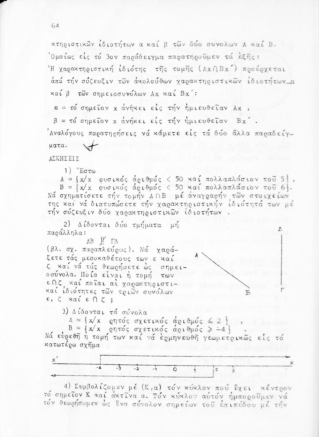 Βαθμίδα εκπαίδευσης: Δευτεροβάθμια Τάξη: Β' Γυμνασίου Μάθημα: Μαθηματικά Γλώσσα: Απλή καθαρεύουσα Παρουσίαση περιεχομένου: Σχολικό εγχειρίδιο Μαθηματικών Β΄ Γυμνασίου χωρισμένο σε θεωρία και ασκήσεις. Φέρει το σύμβολο της δικτατορίας. |