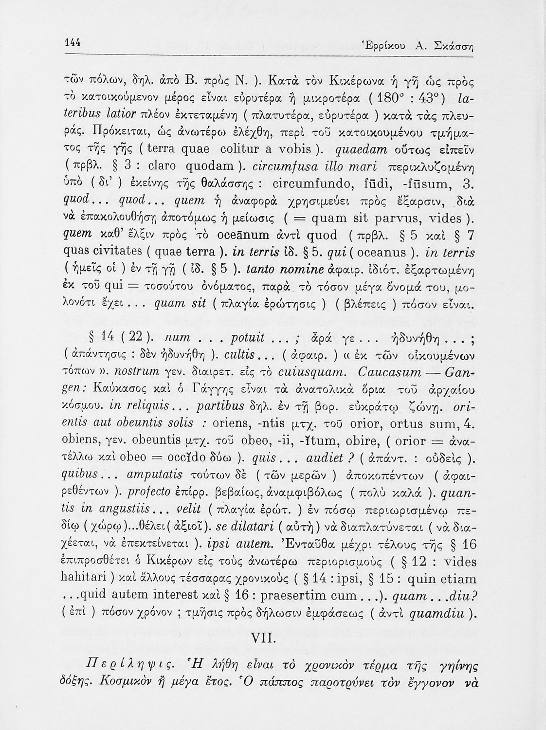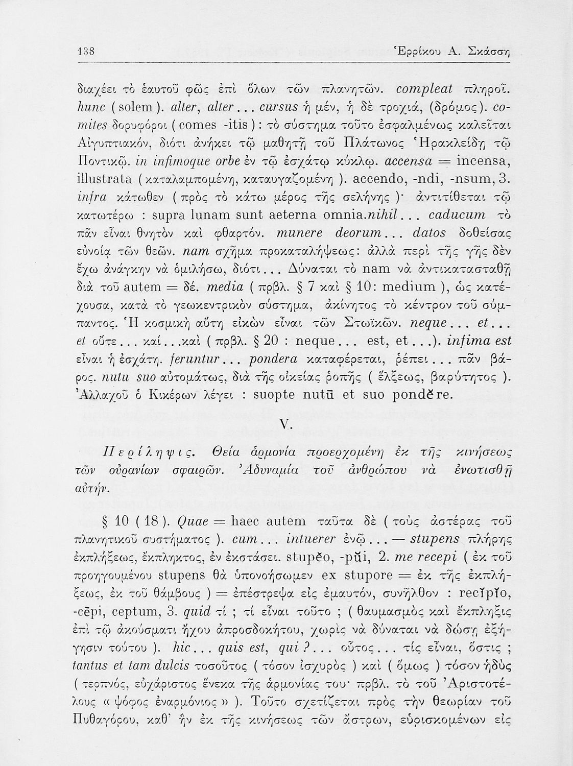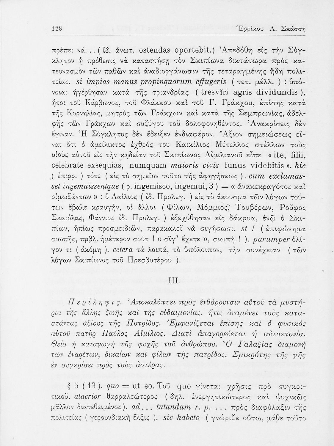 Πόπλιος Βιργίλιος Μάρων (P. Vergilius Maro), Μάρκος Τύλλιος Κικέρωνας (Marcus Tullius Ciceco), Κουίντος Οράτιος Φλάκκος (Q. Horati Flacci), Φωκίωνας Β. Βουσβούνης, Ερρίκος Σκάσσης, Ζαφείριος Ν. Φραγκίσκος (σχόλια)