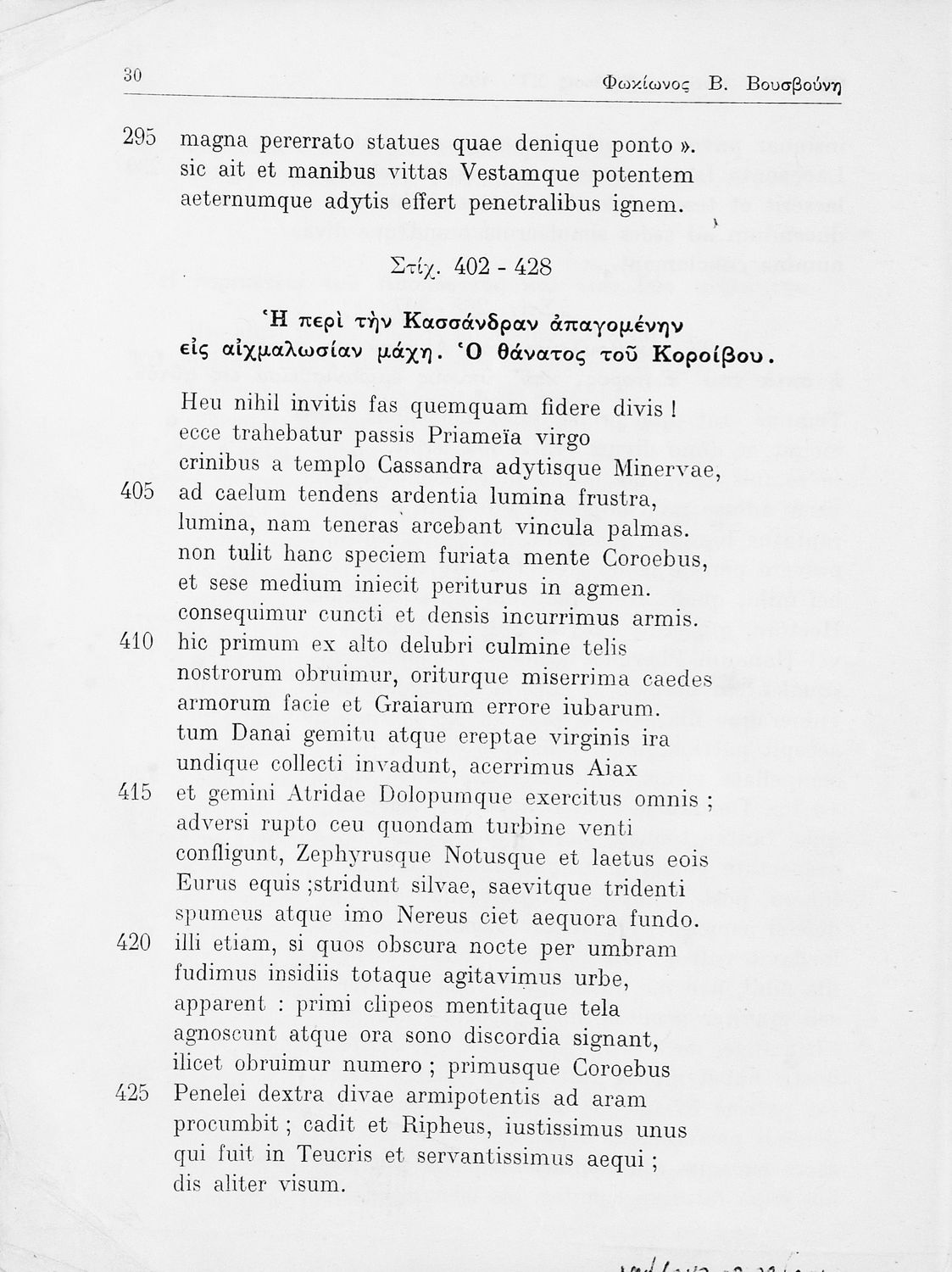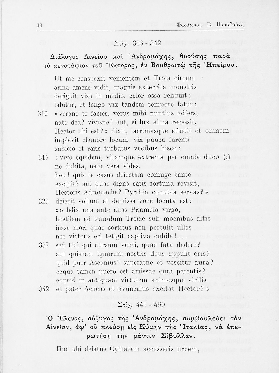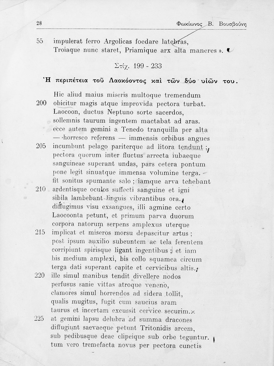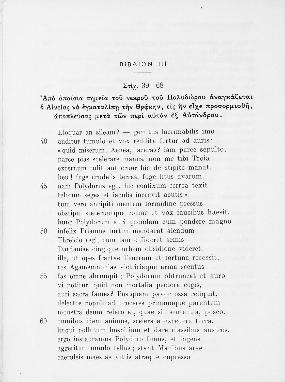 Σχολικό εγχειρίδιο Λατινικών που περιέχει αποσπάσματα από έργα τριών Λατίνων συγγραφέων, βιογραφικά σημειώματα των συγγραφέων, εισαγωγικά σχόλια, και ερμηνευτικές παρατηρήσεις.