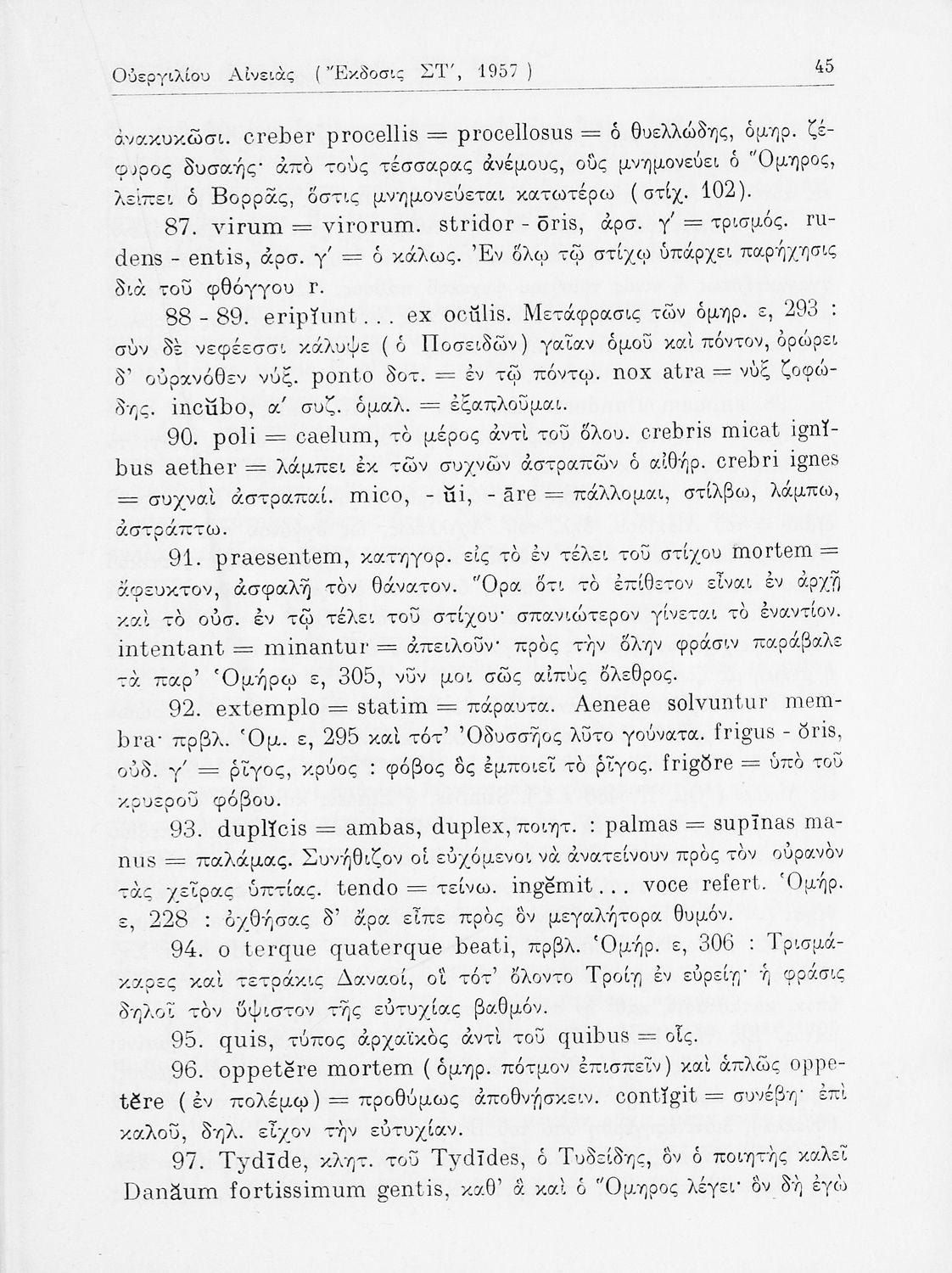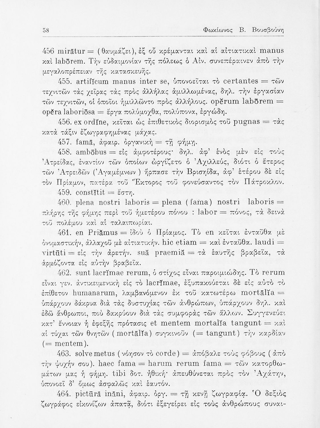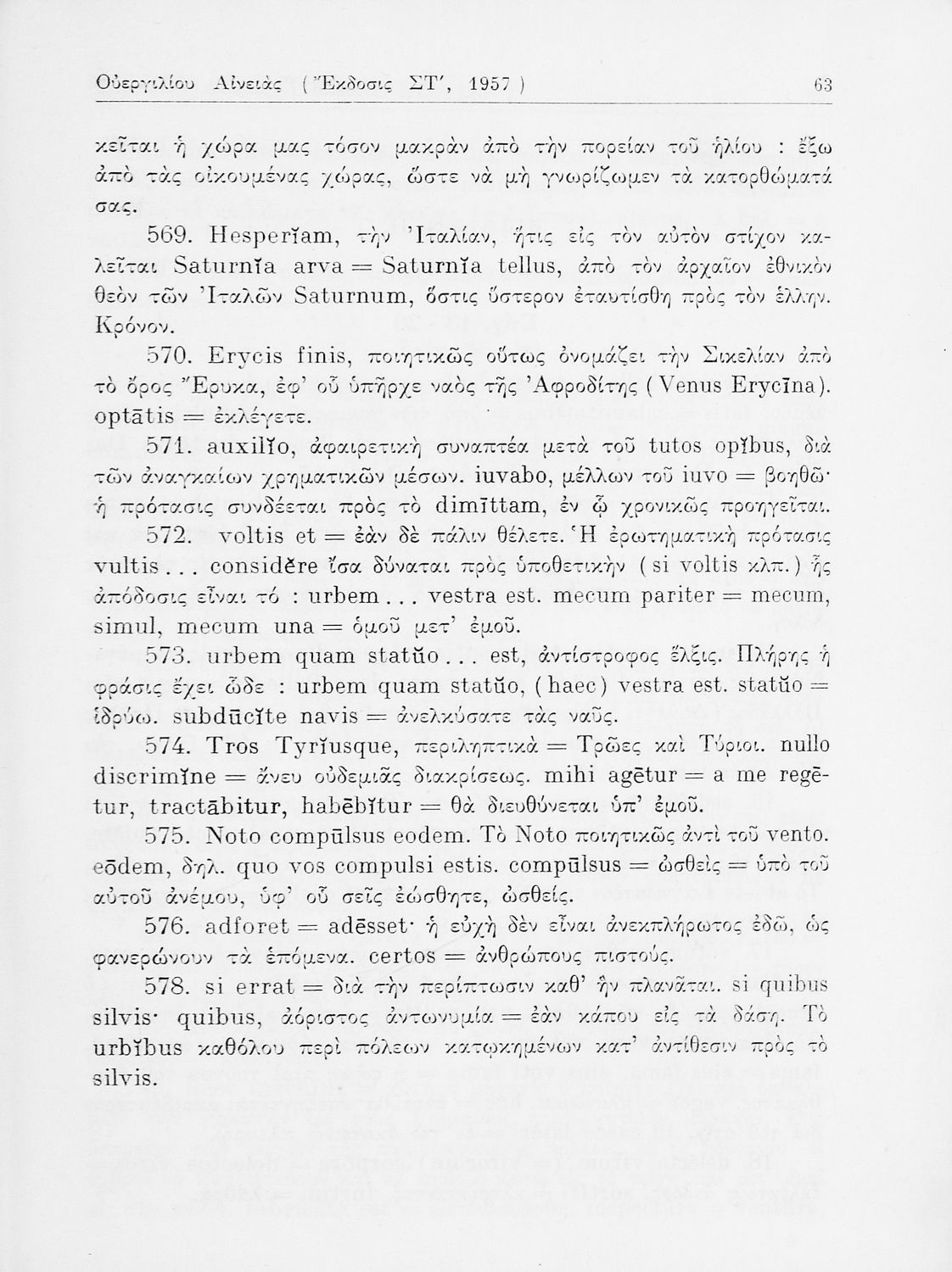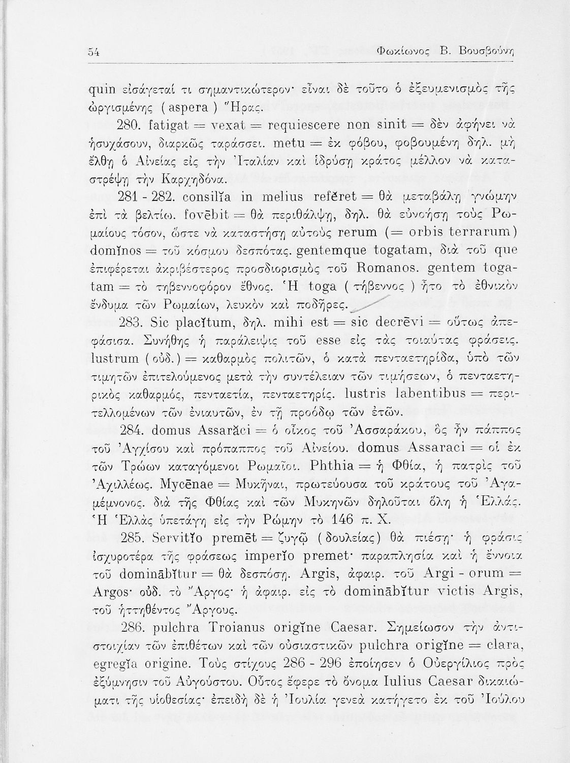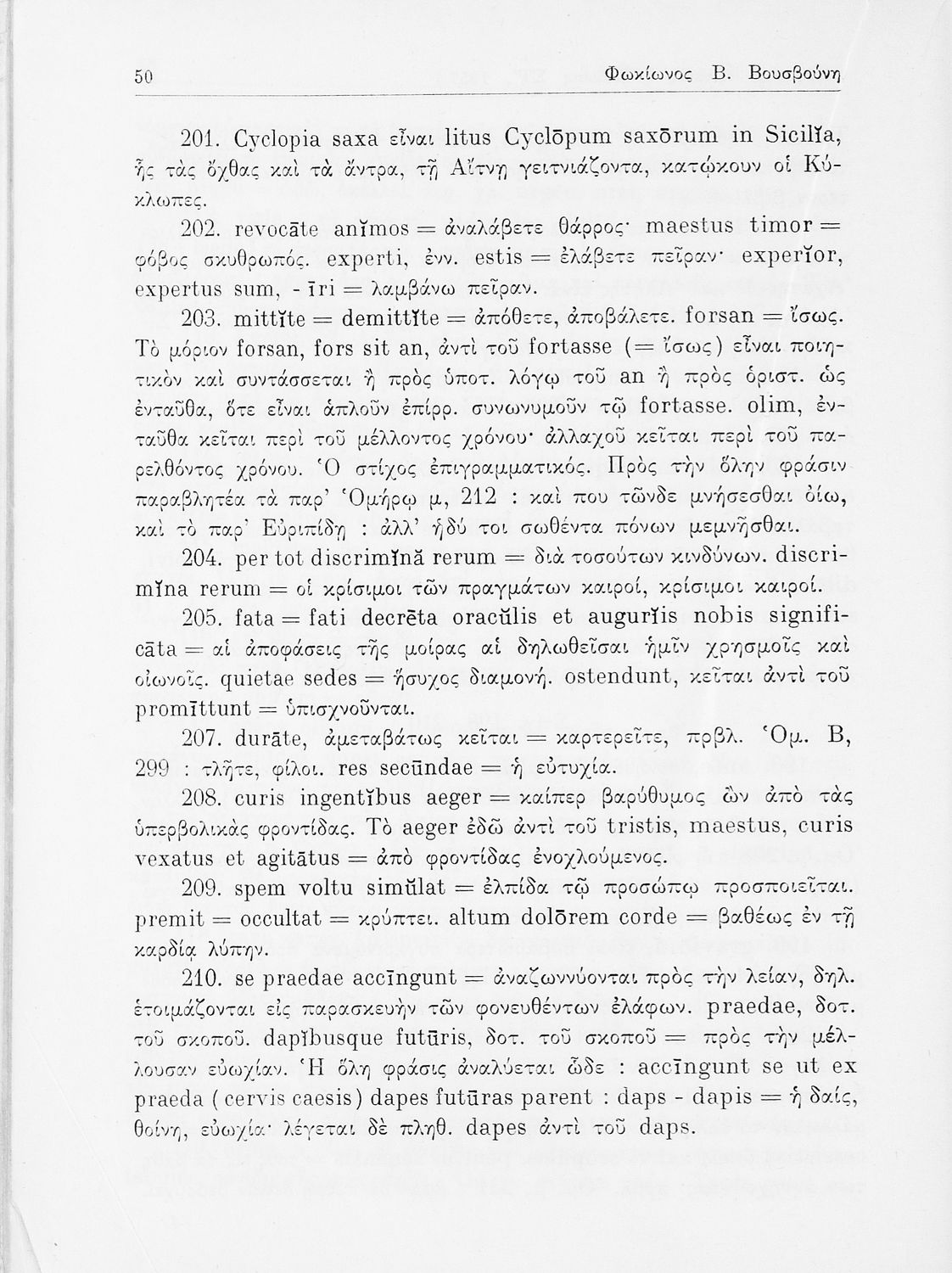 Πόπλιος Βιργίλιος Μάρων (P. Vergilius Maro), Μάρκος Τύλλιος Κικέρωνας (Marcus Tullius Ciceco), Κουίντος Οράτιος Φλάκκος (Q. Horati Flacci), Φωκίωνας Β. Βουσβούνης, Ερρίκος Σκάσσης, Ζαφείριος Ν. Φραγκίσκος (σχόλια)