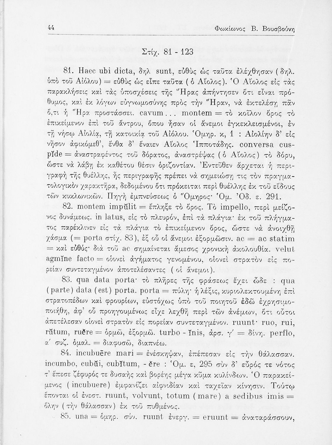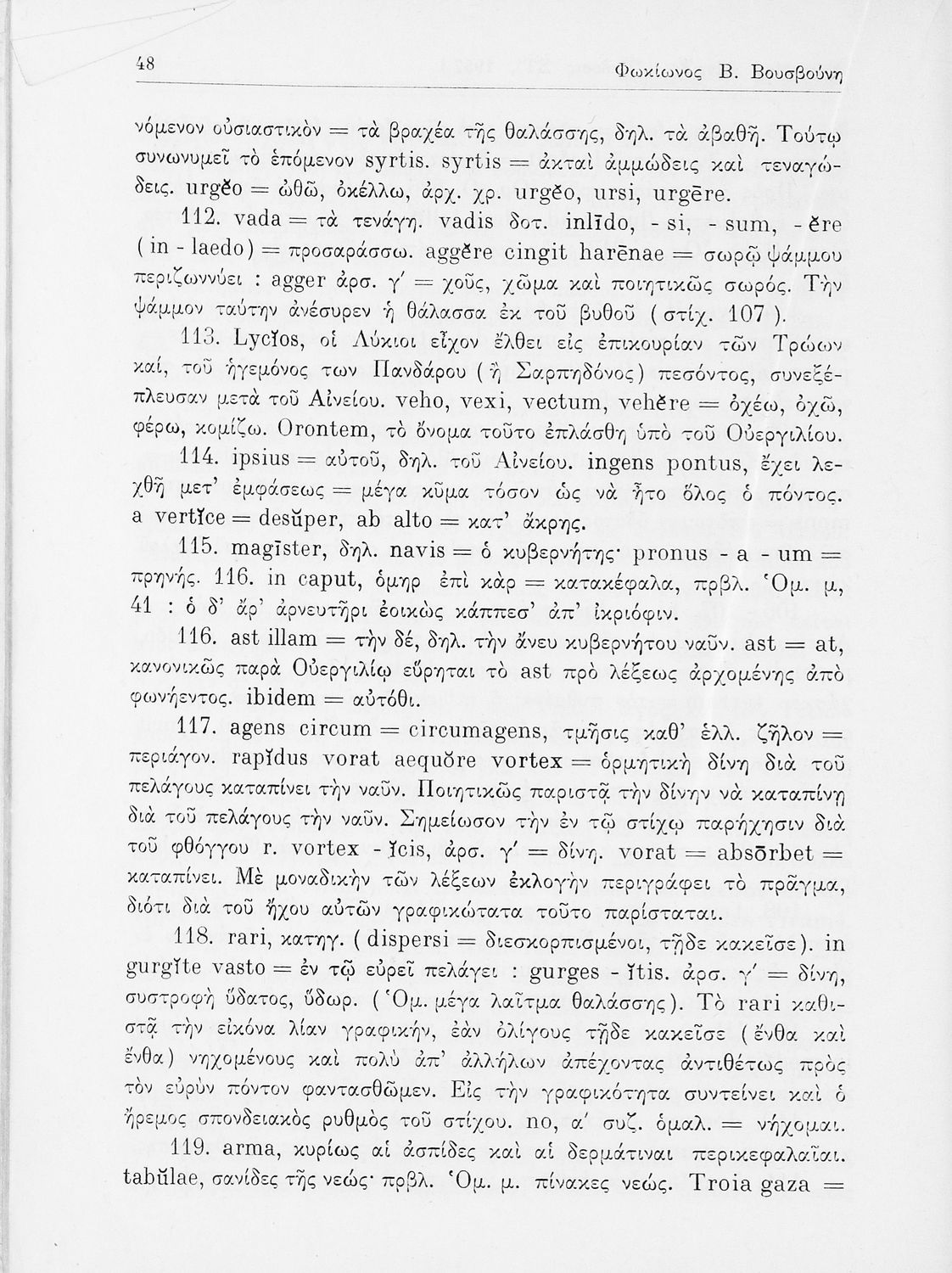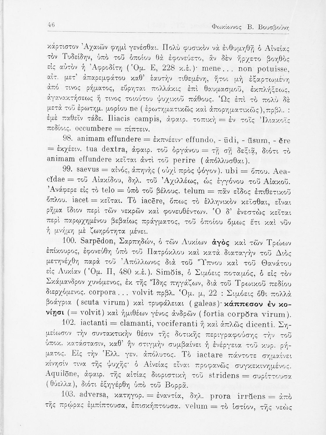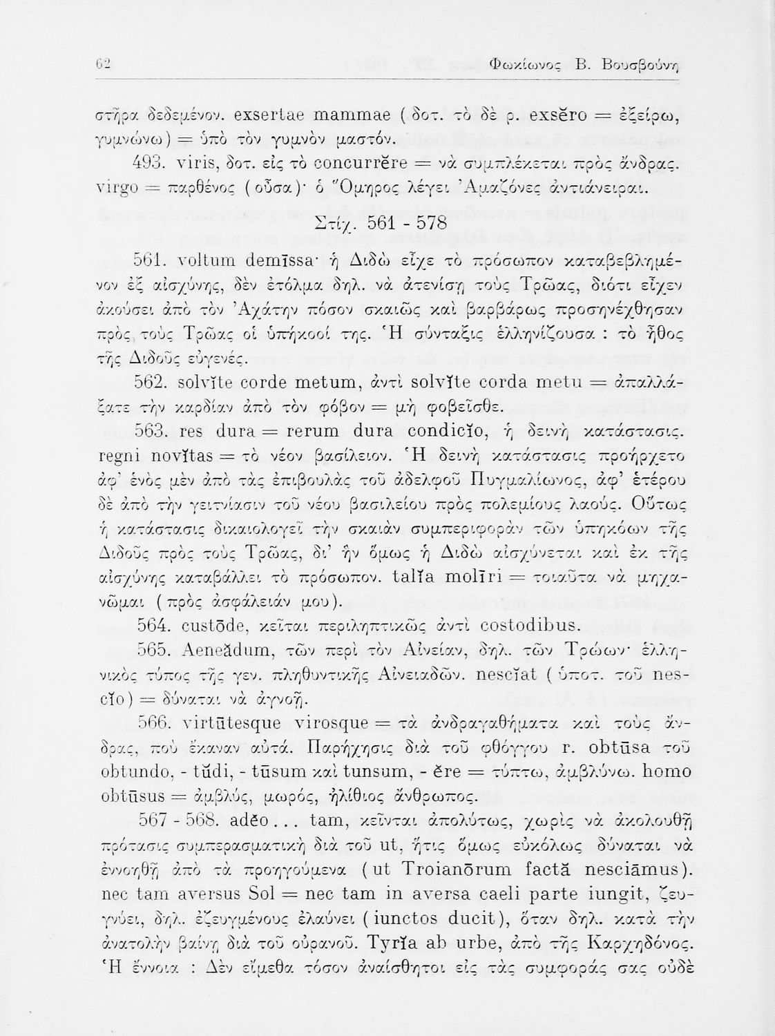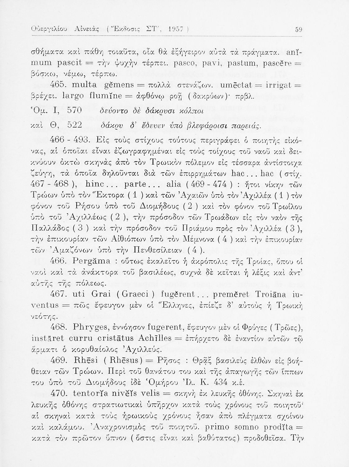 Πόπλιος Βιργίλιος Μάρων (P. Vergilius Maro), Μάρκος Τύλλιος Κικέρωνας (Marcus Tullius Ciceco), Κουίντος Οράτιος Φλάκκος (Q. Horati Flacci), Φωκίωνας Β. Βουσβούνης, Ερρίκος Σκάσσης, Ζαφείριος Ν. Φραγκίσκος (σχόλια)