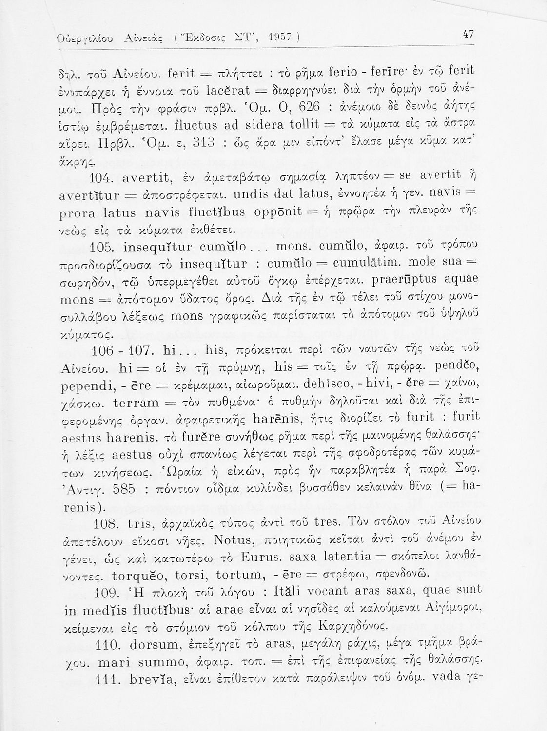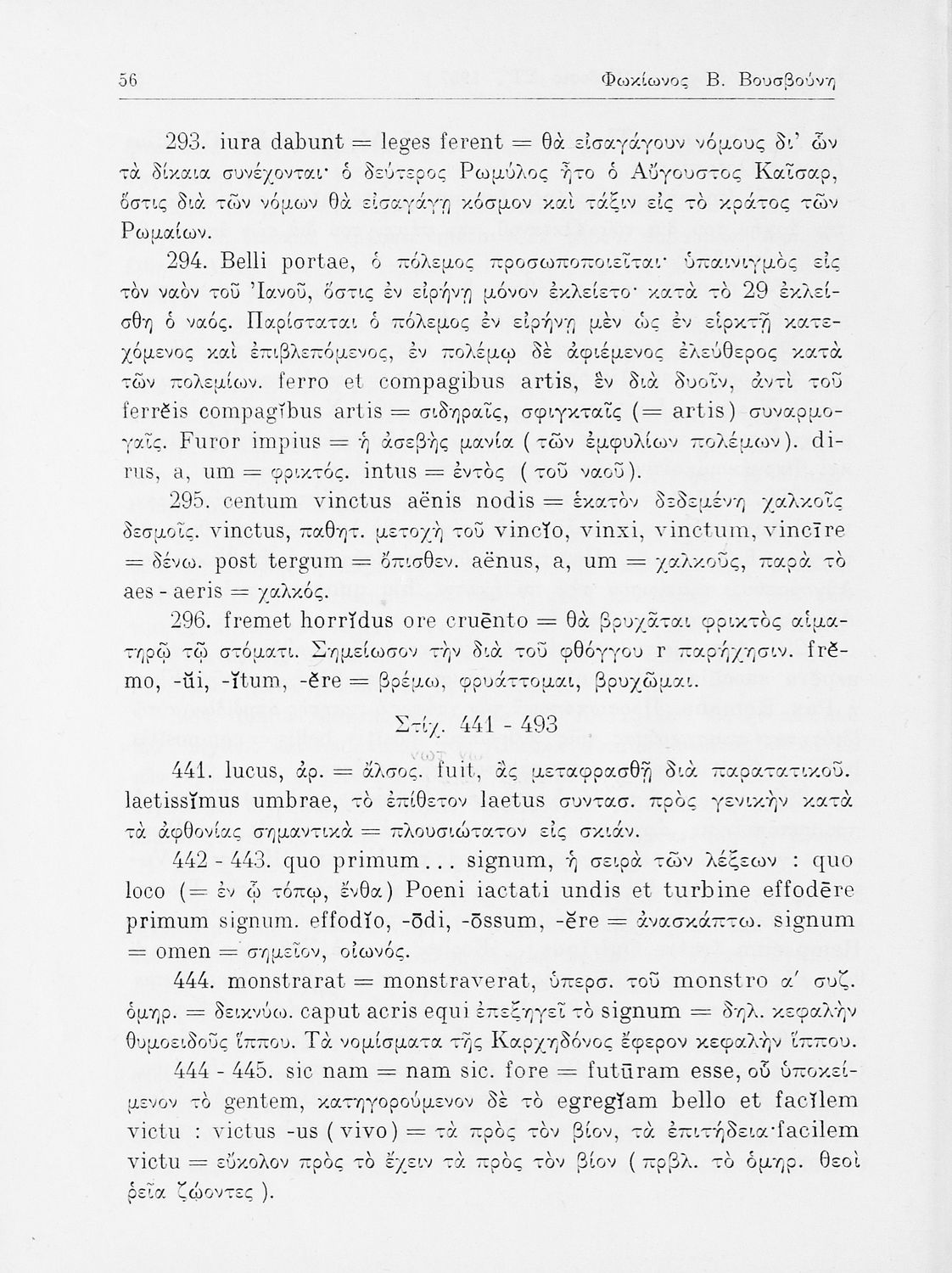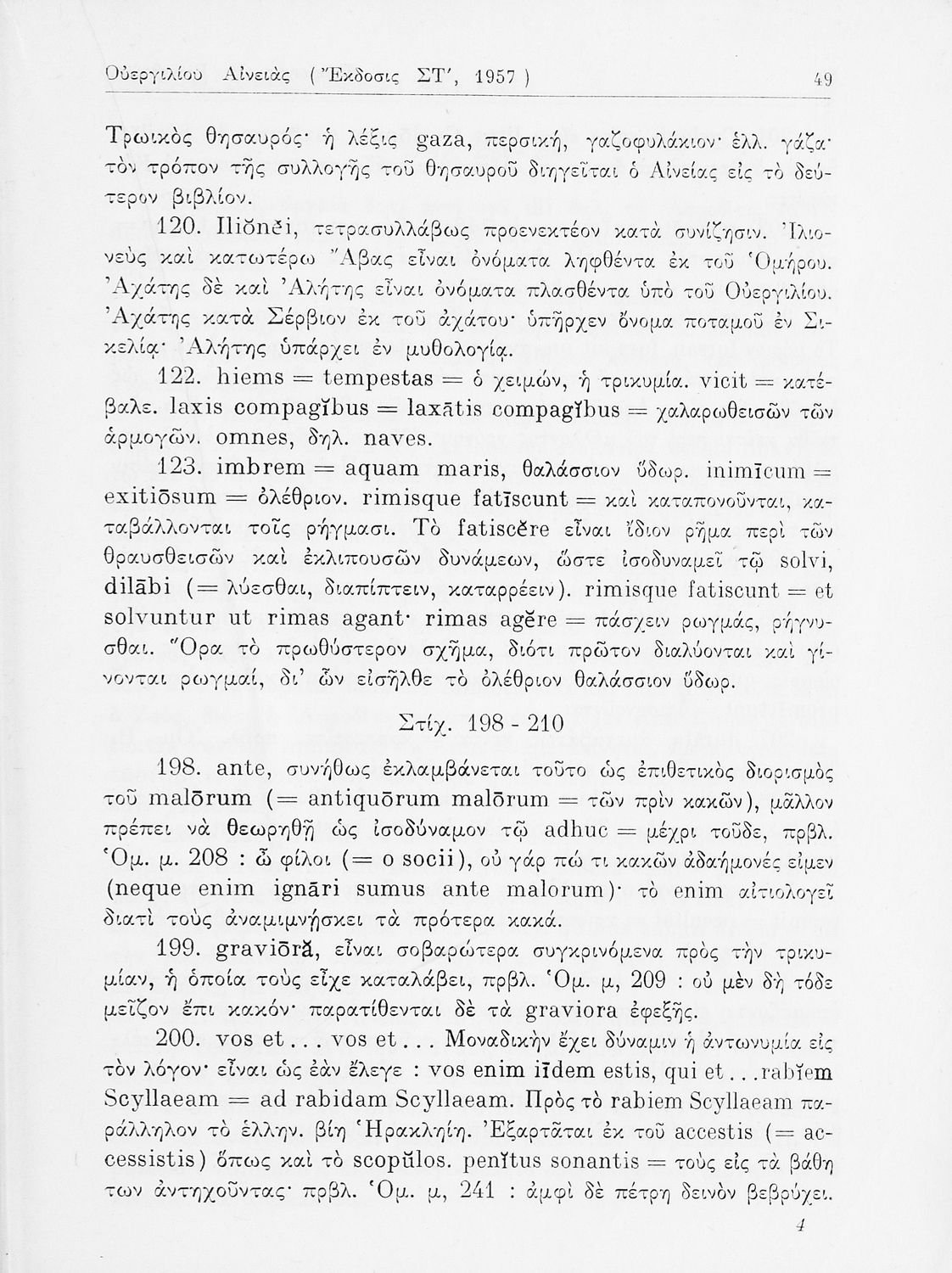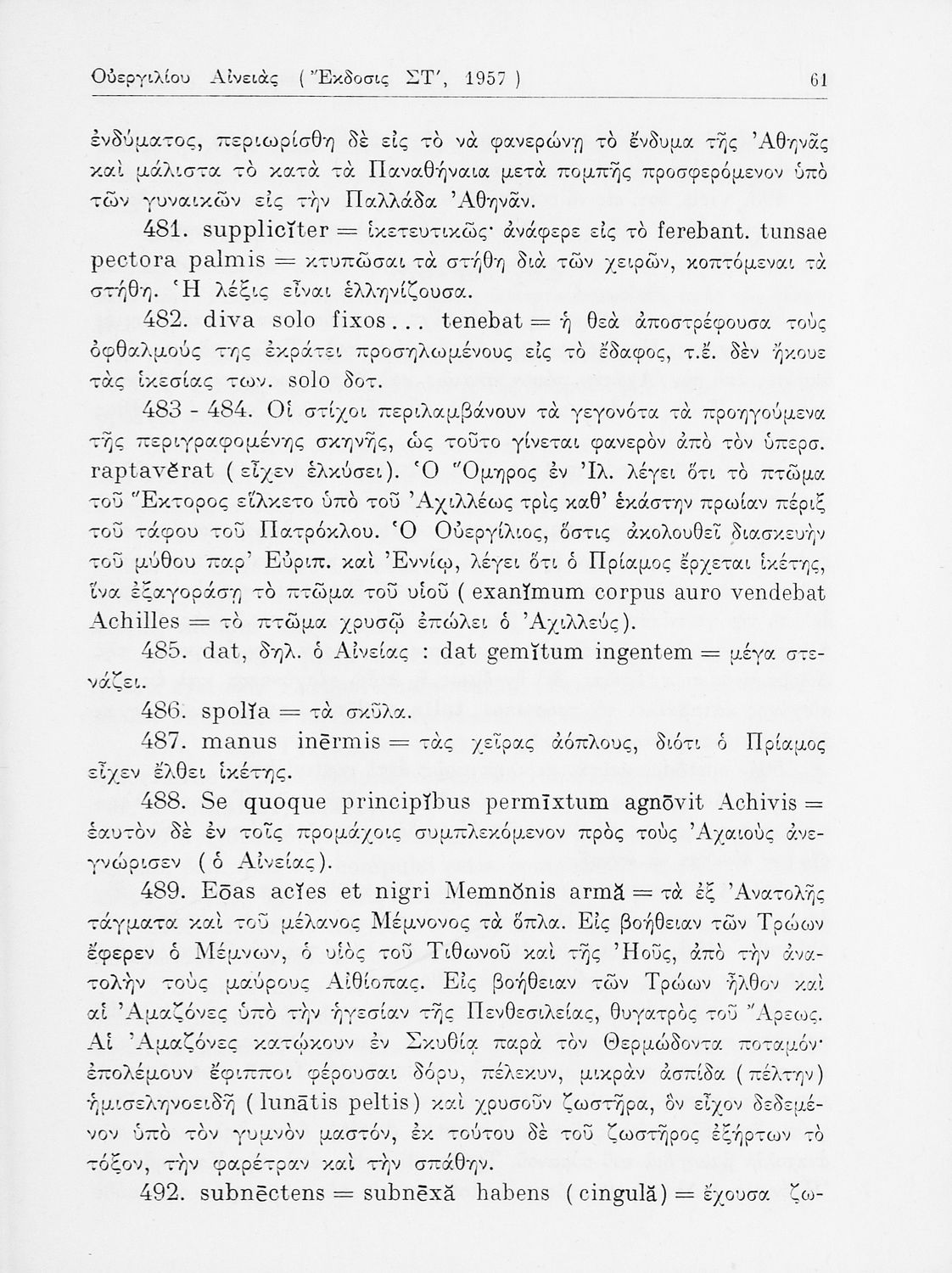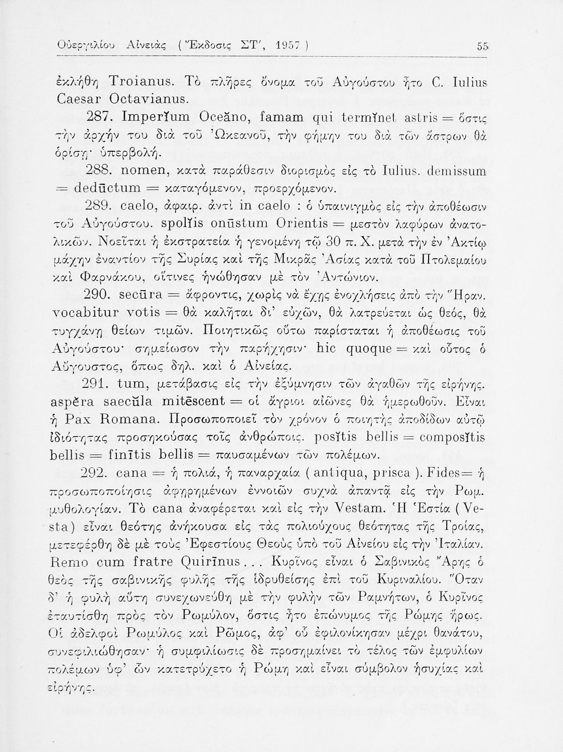 Πόπλιος Βιργίλιος Μάρων (P. Vergilius Maro), Μάρκος Τύλλιος Κικέρωνας (Marcus Tullius Ciceco), Κουίντος Οράτιος Φλάκκος (Q. Horati Flacci), Φωκίωνας Β. Βουσβούνης, Ερρίκος Σκάσσης, Ζαφείριος Ν. Φραγκίσκος (σχόλια)