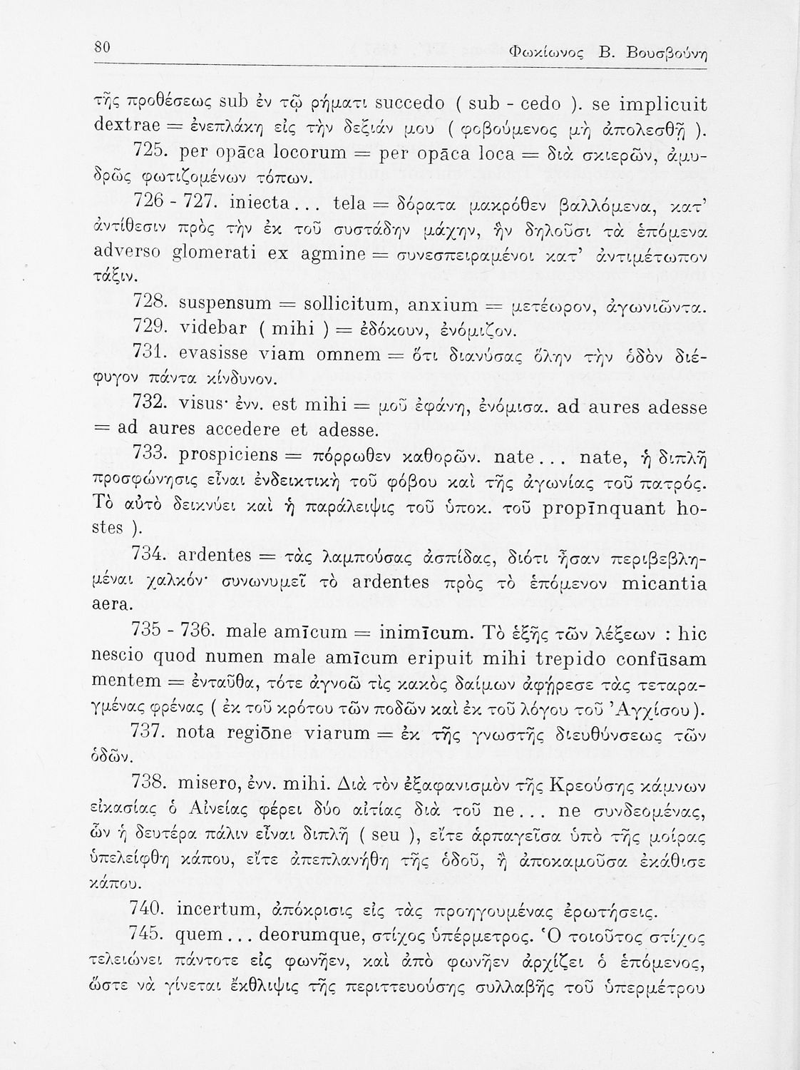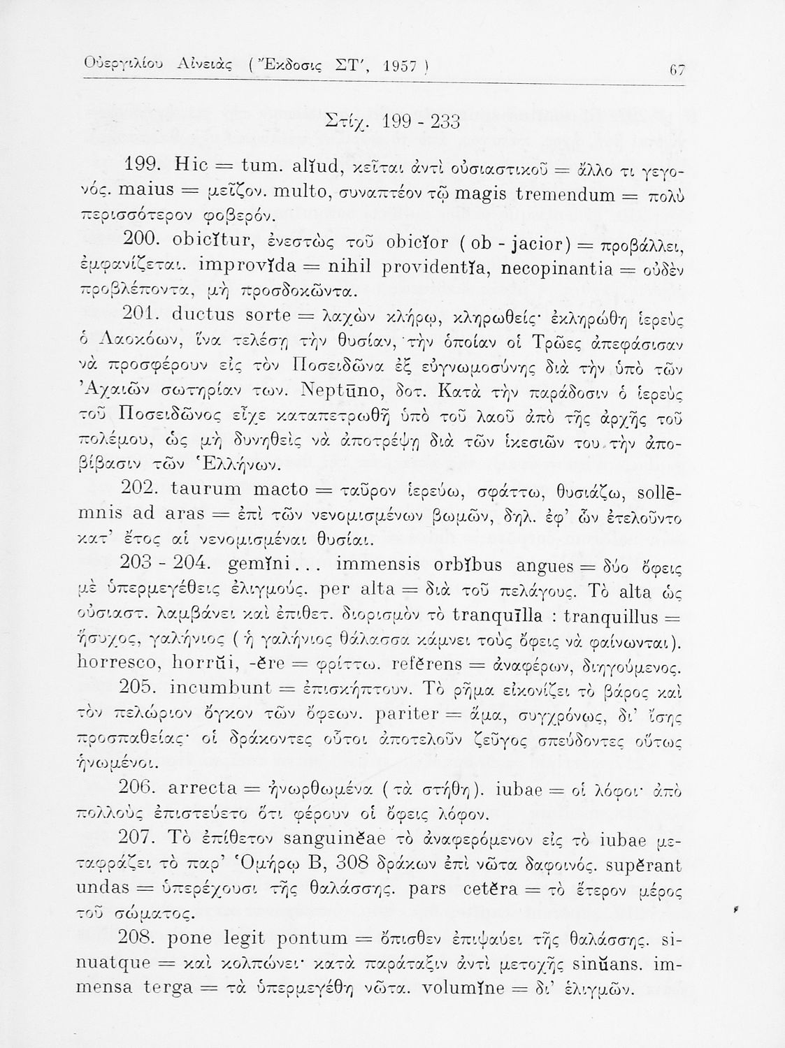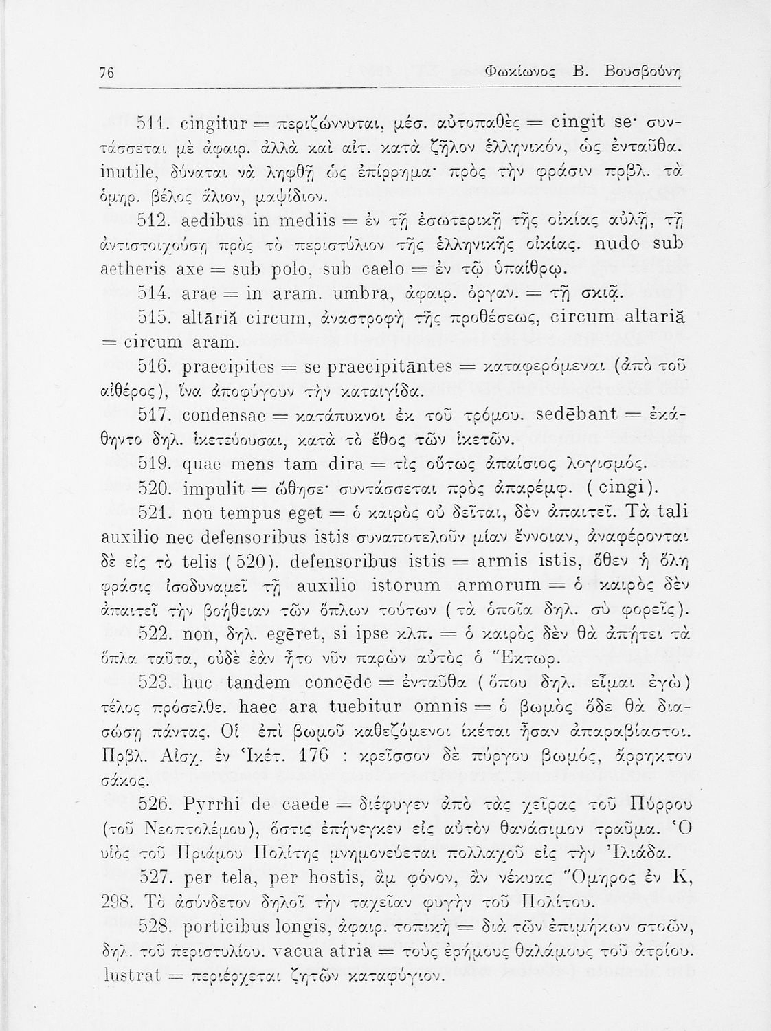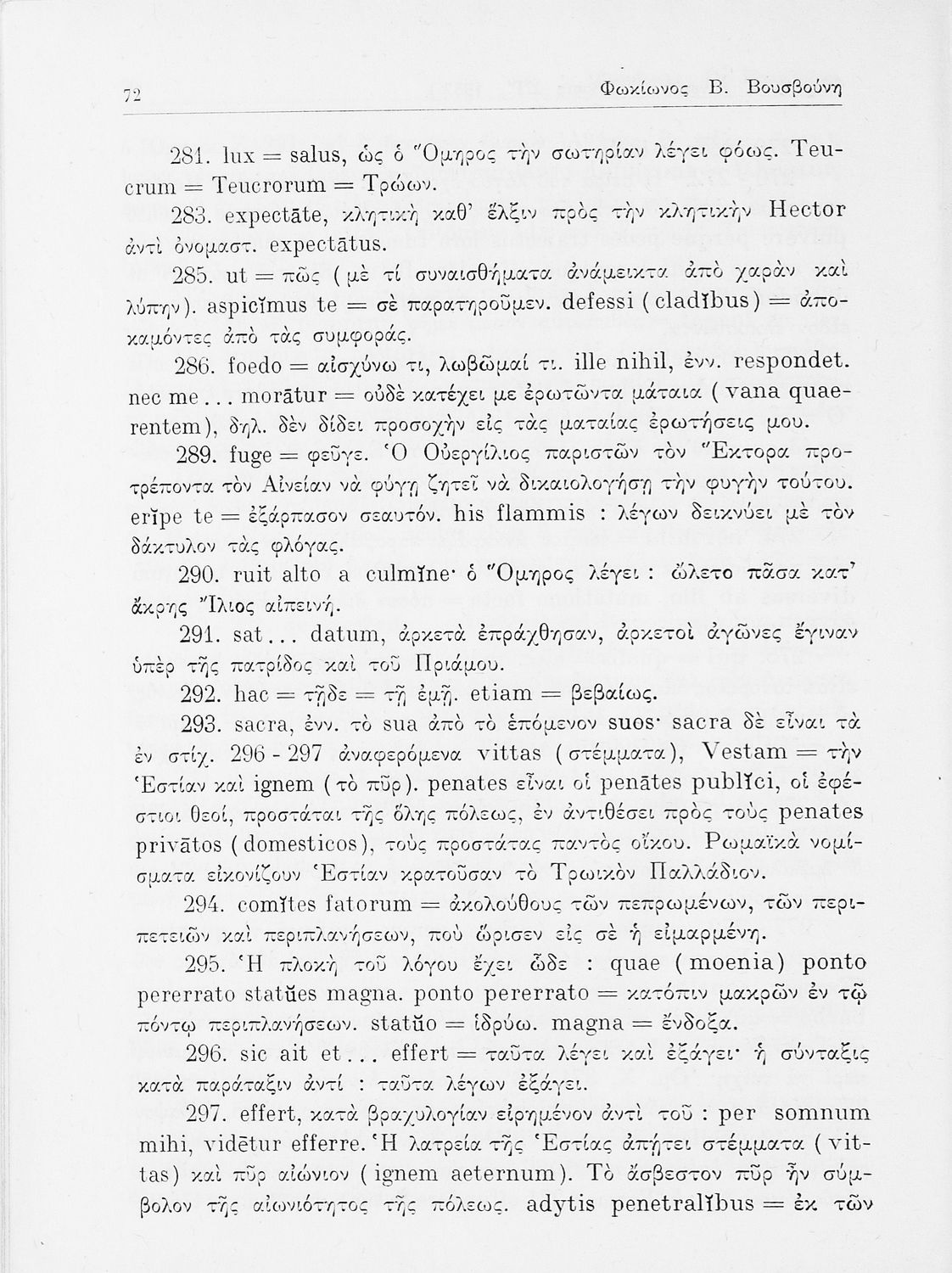Πόπλιος Βιργίλιος Μάρων (P. Vergilius Maro), Μάρκος Τύλλιος Κικέρωνας (Marcus Tullius Ciceco), Κουίντος Οράτιος Φλάκκος (Q. Horati Flacci), Φωκίωνας Β. Βουσβούνης, Ερρίκος Σκάσσης, Ζαφείριος Ν. Φραγκίσκος (σχόλια)