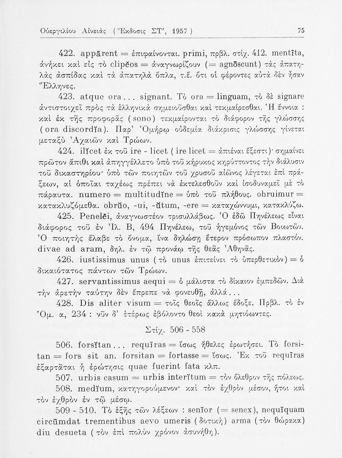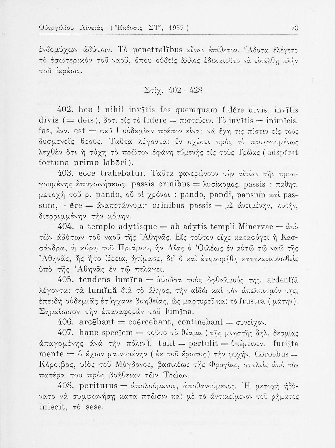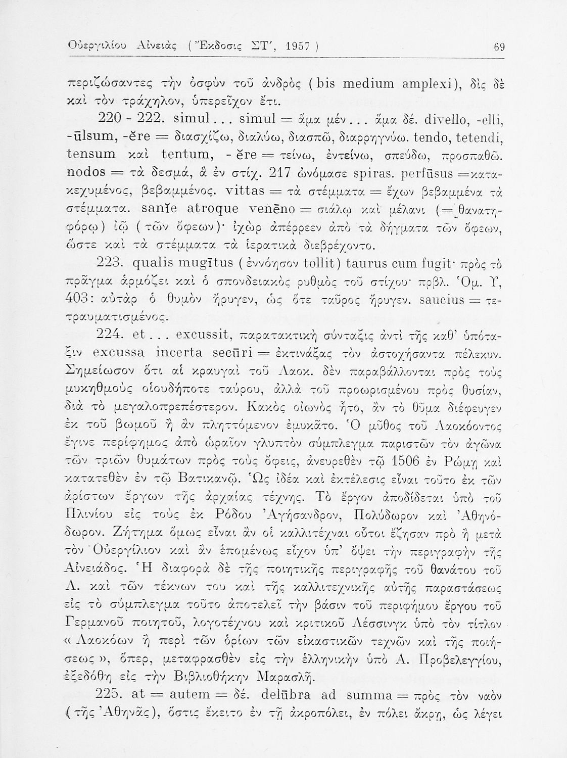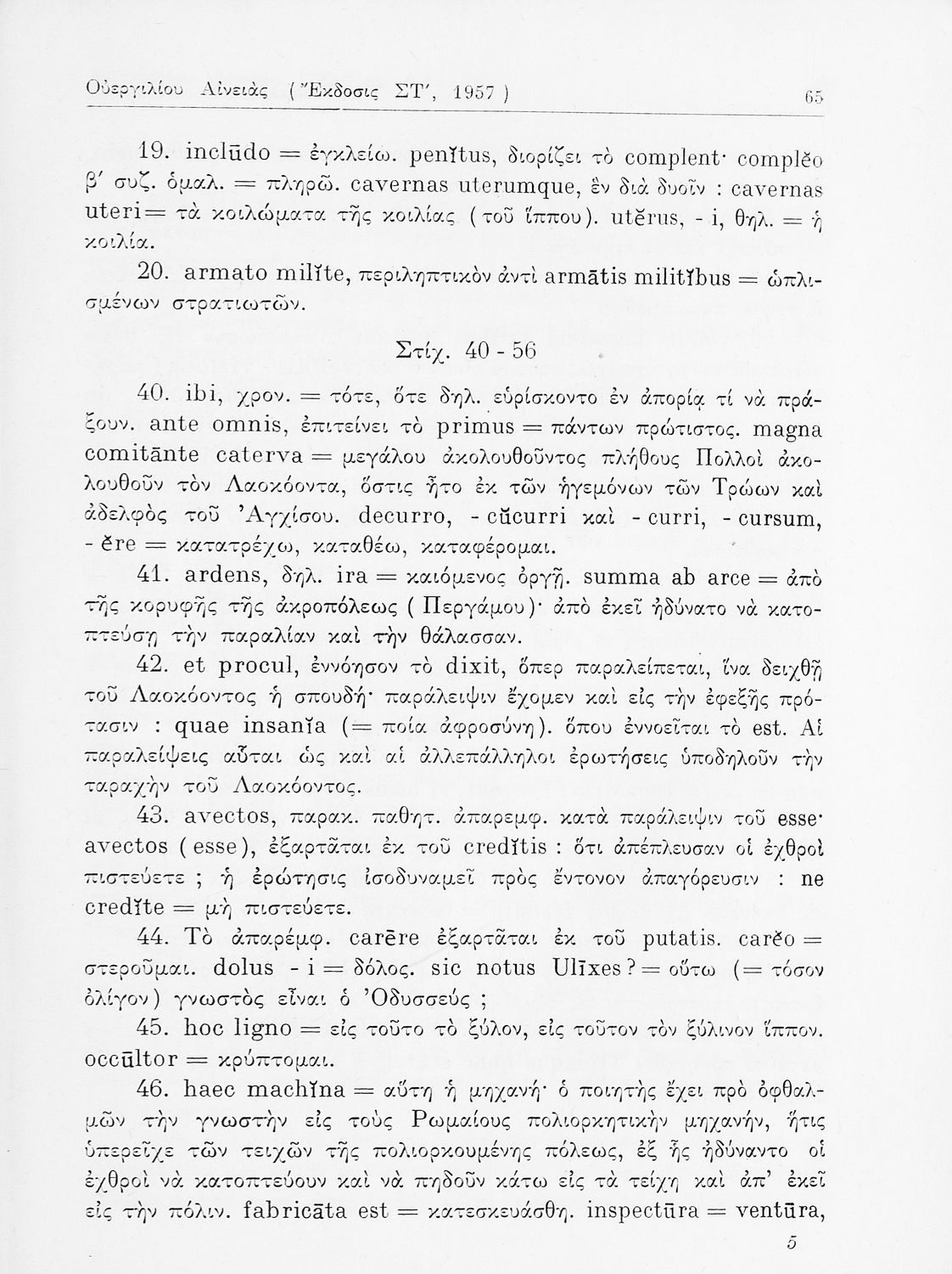 Πόπλιος Βιργίλιος Μάρων (P. Vergilius Maro), Μάρκος Τύλλιος Κικέρωνας (Marcus Tullius Ciceco), Κουίντος Οράτιος Φλάκκος (Q. Horati Flacci), Φωκίωνας Β. Βουσβούνης, Ερρίκος Σκάσσης, Ζαφείριος Ν. Φραγκίσκος (σχόλια)