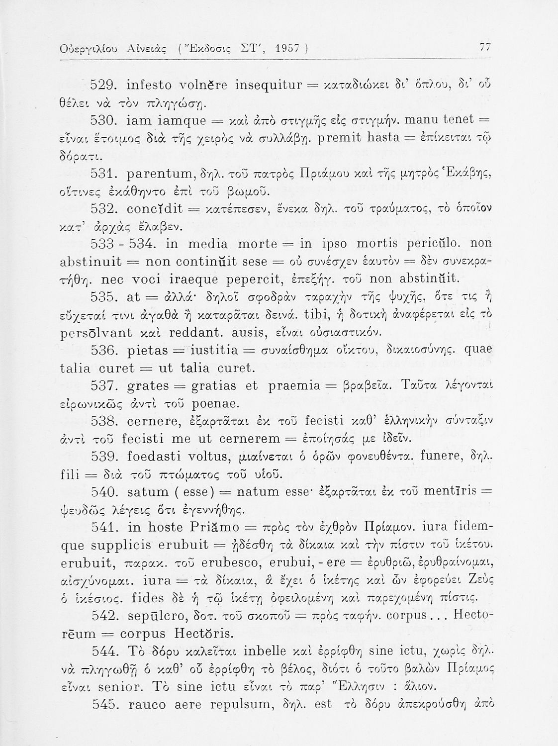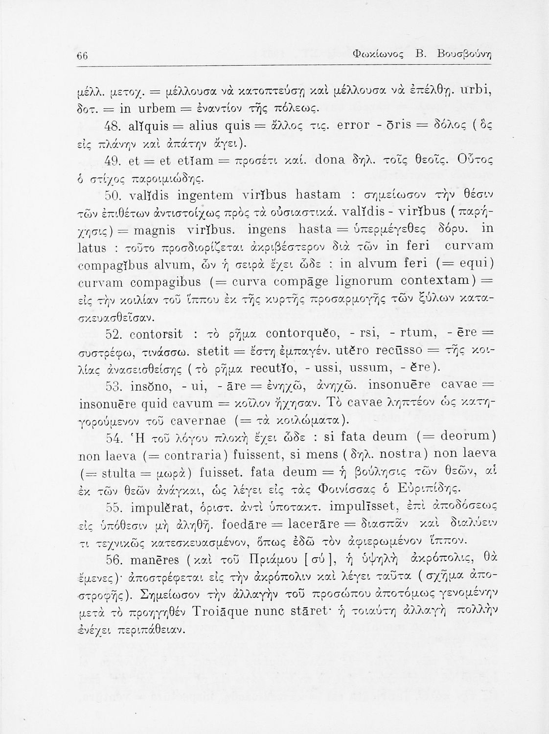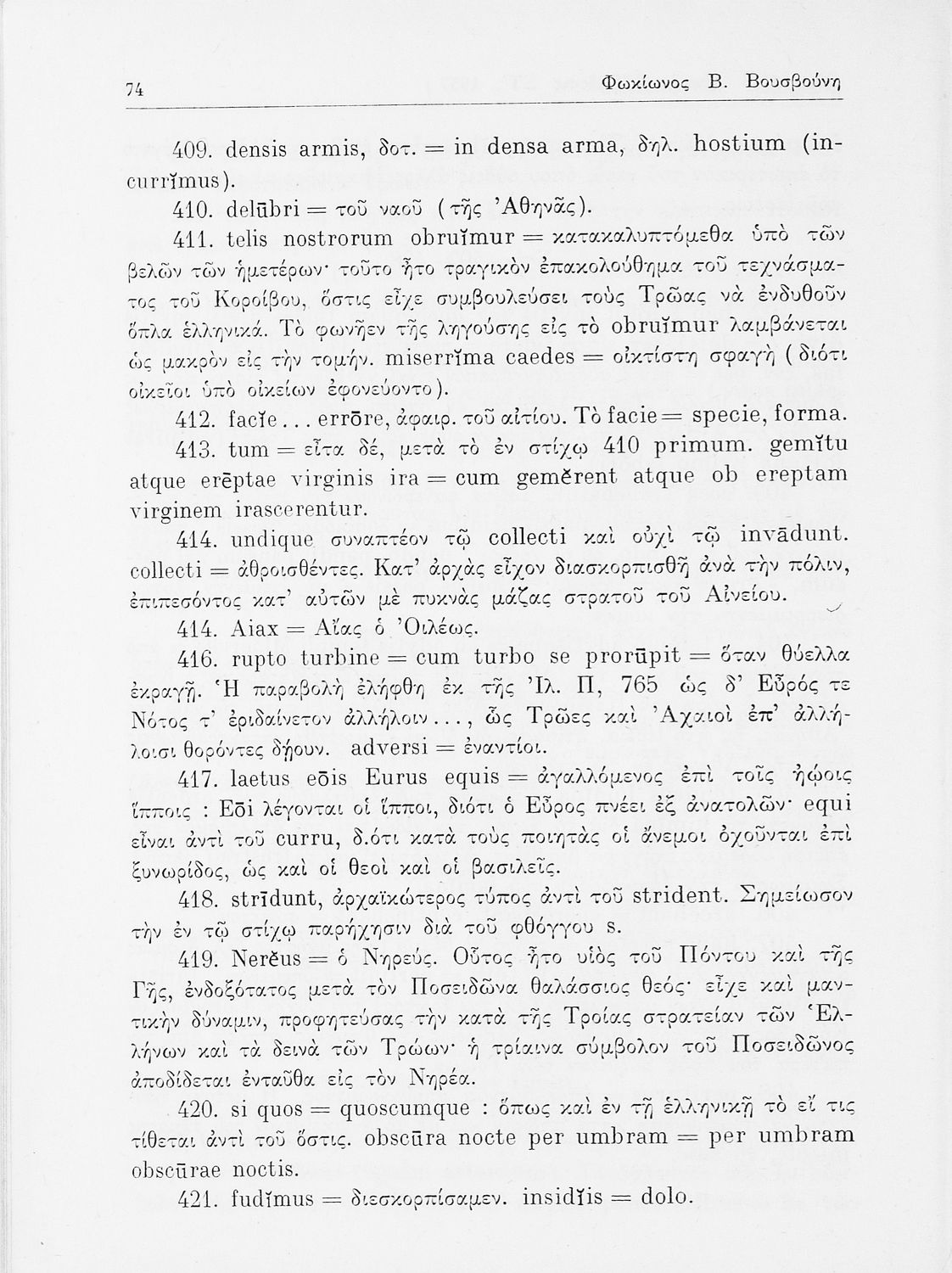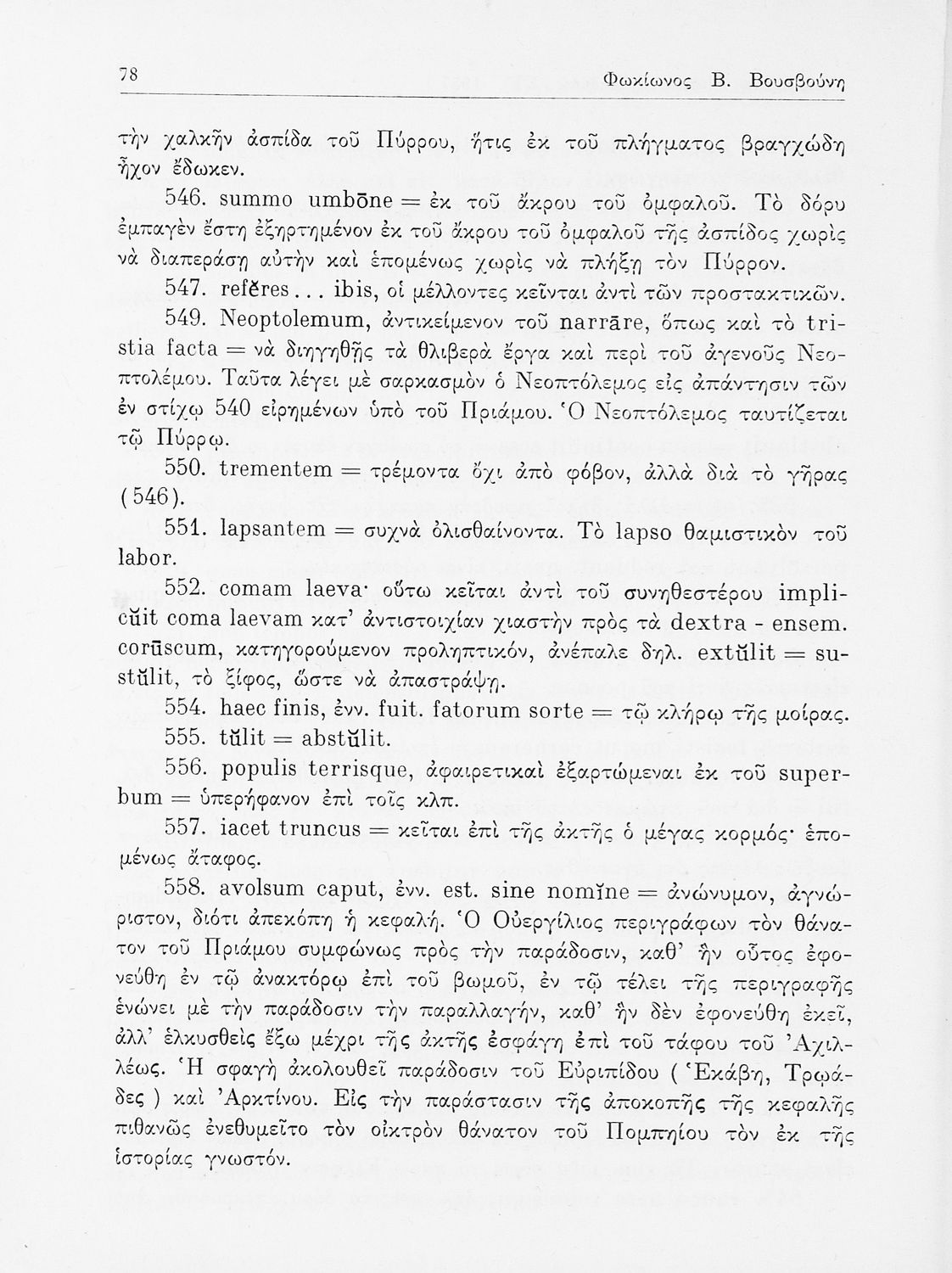 Πόπλιος Βιργίλιος Μάρων (P. Vergilius Maro), Μάρκος Τύλλιος Κικέρωνας (Marcus Tullius Ciceco), Κουίντος Οράτιος Φλάκκος (Q. Horati Flacci), Φωκίωνας Β. Βουσβούνης, Ερρίκος Σκάσσης, Ζαφείριος Ν. Φραγκίσκος (σχόλια)