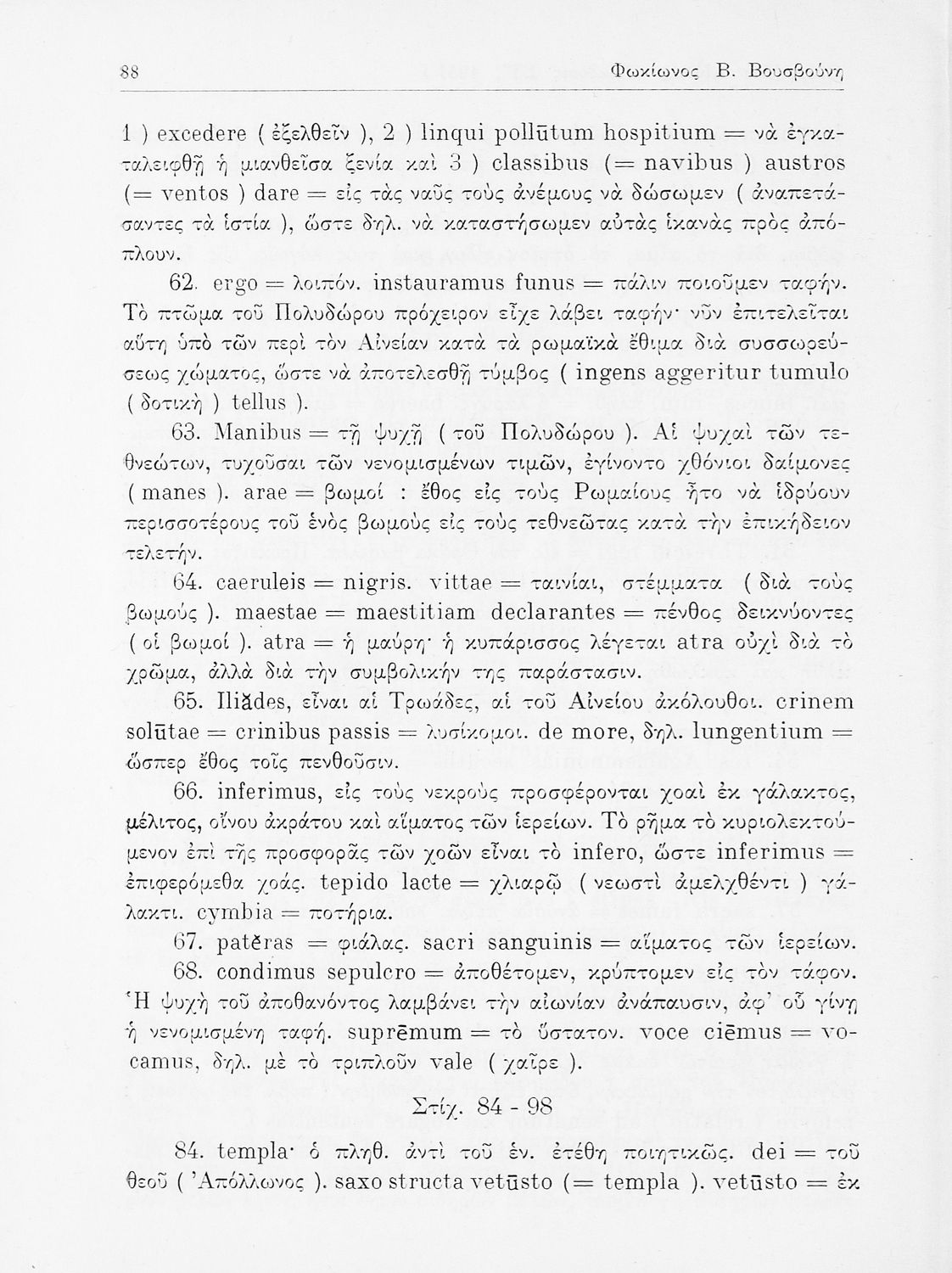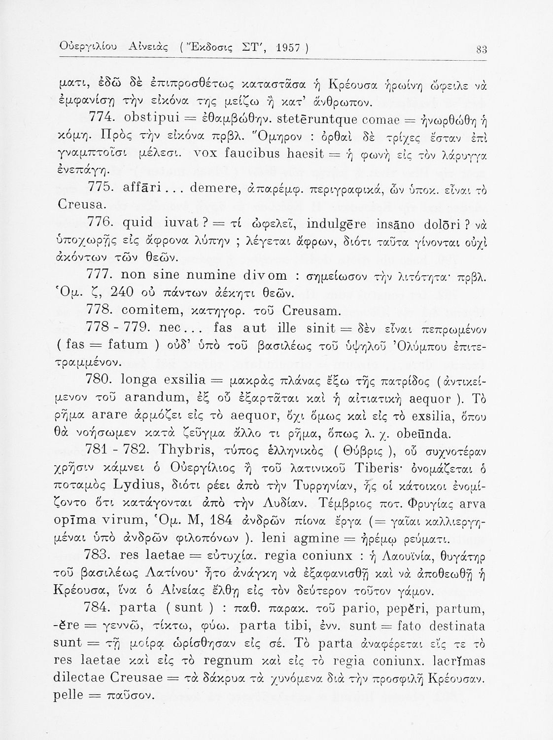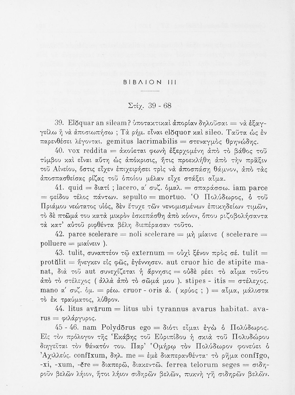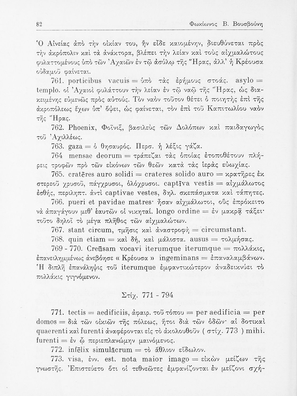 Πόπλιος Βιργίλιος Μάρων (P. Vergilius Maro), Μάρκος Τύλλιος Κικέρωνας (Marcus Tullius Ciceco), Κουίντος Οράτιος Φλάκκος (Q. Horati Flacci), Φωκίωνας Β. Βουσβούνης, Ερρίκος Σκάσσης, Ζαφείριος Ν. Φραγκίσκος (σχόλια)