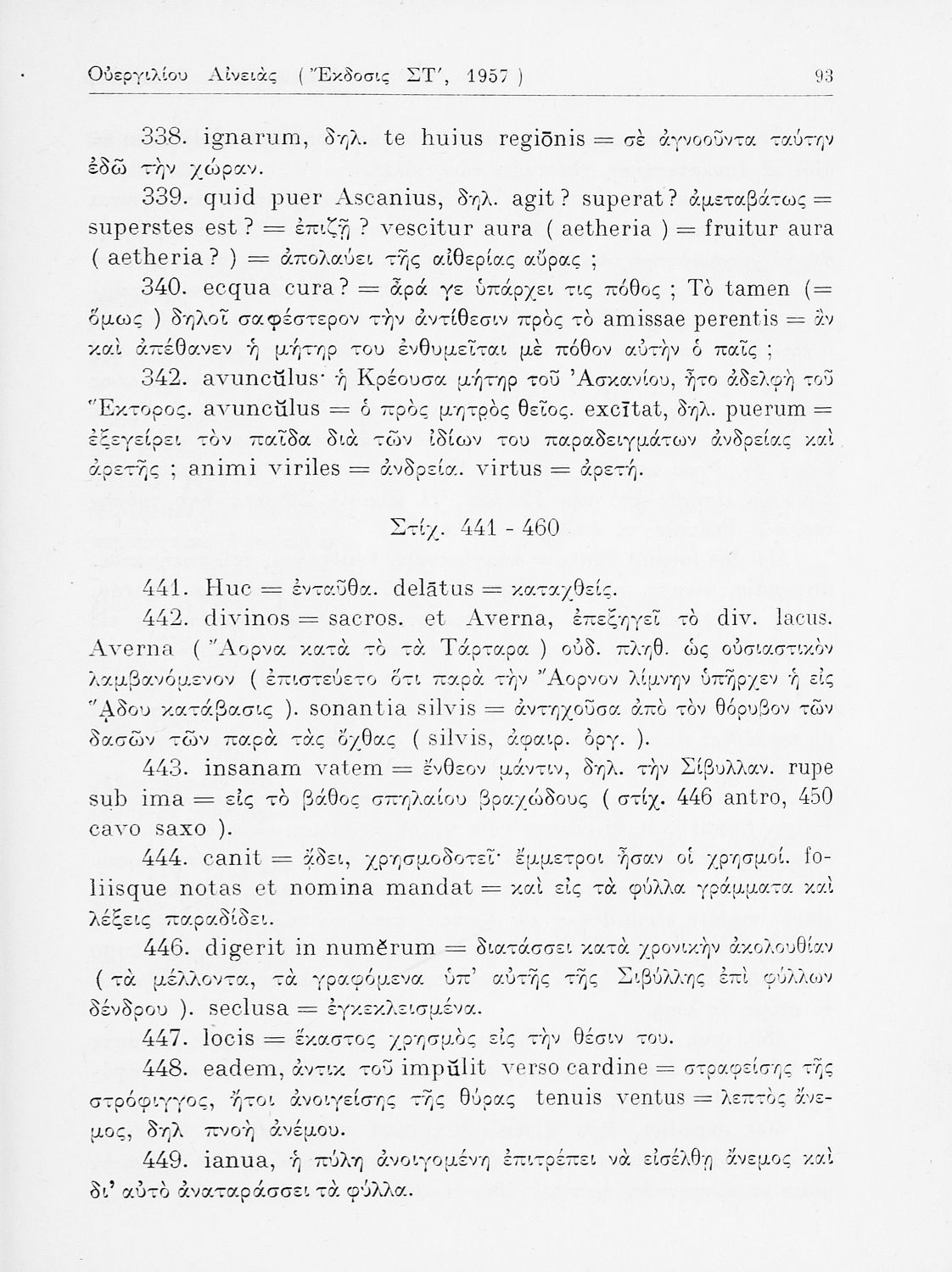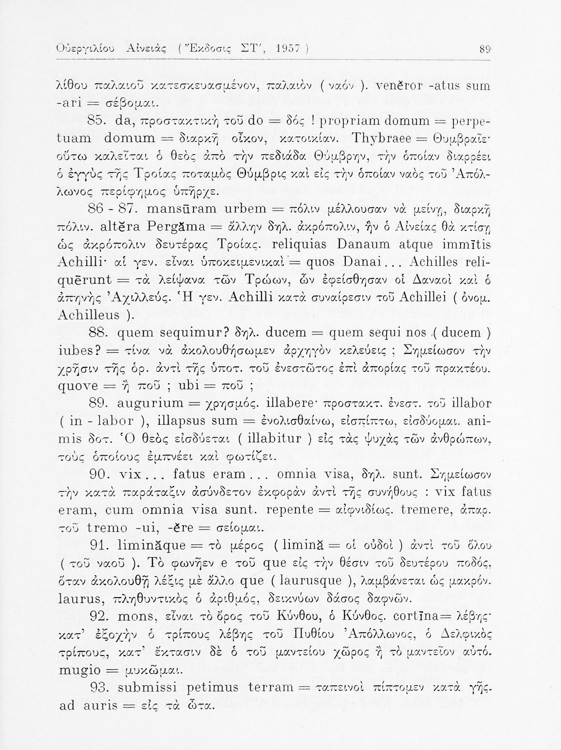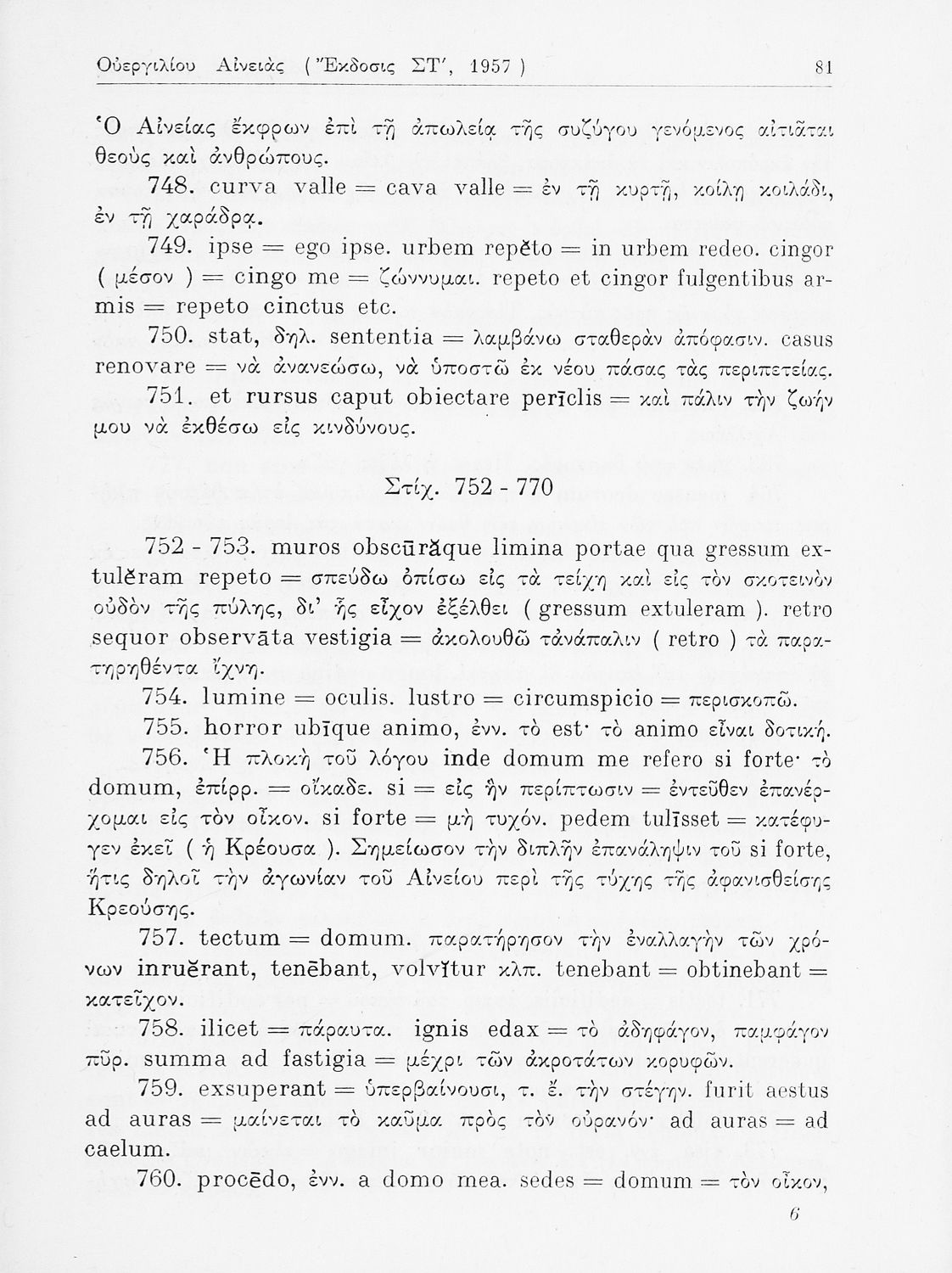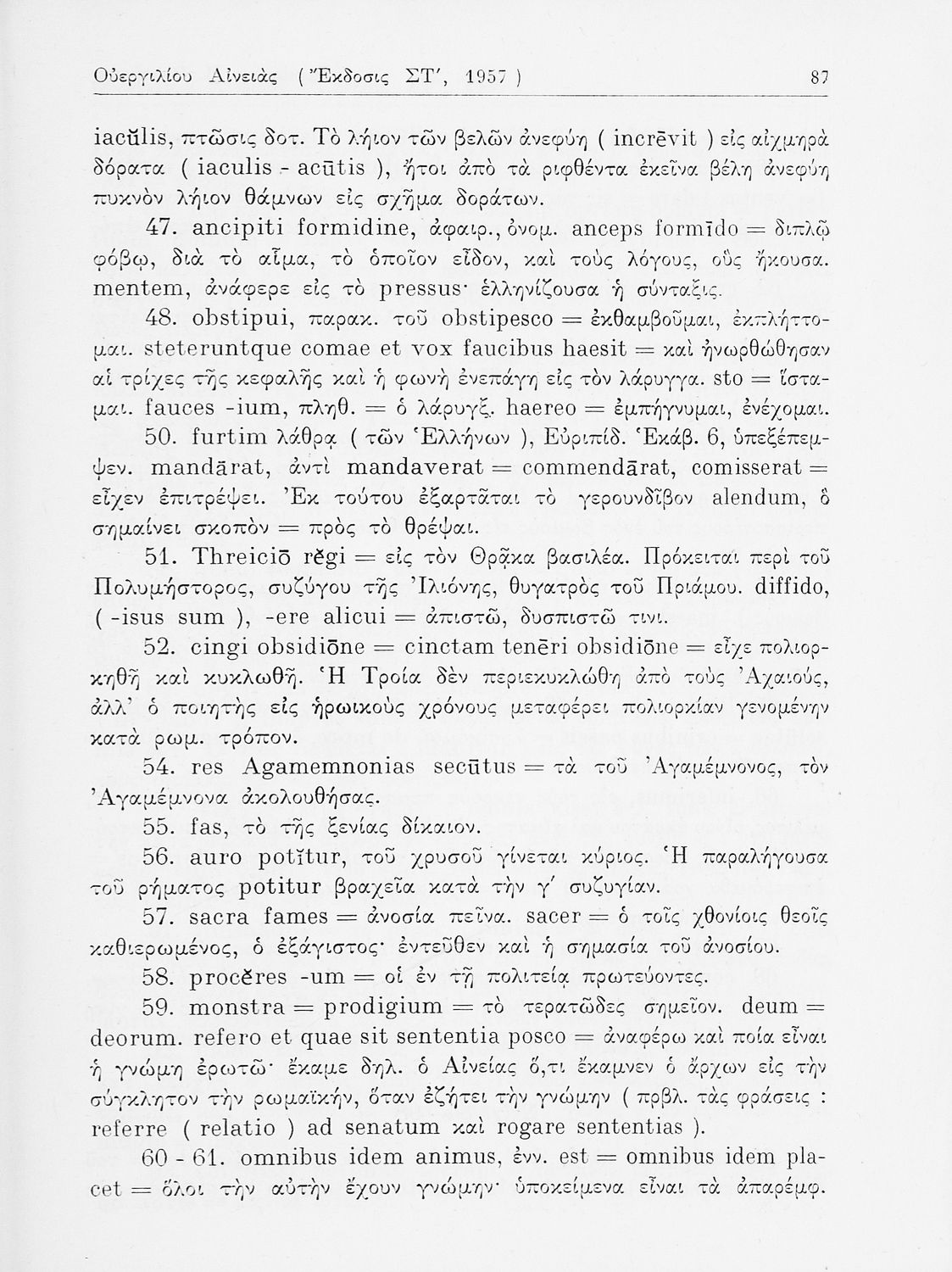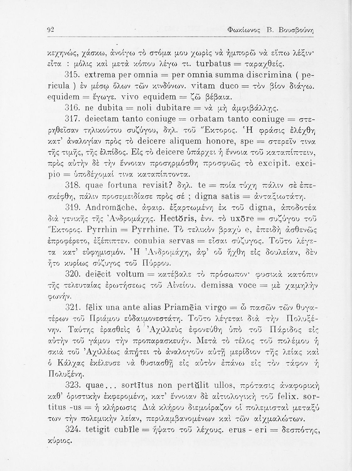 Πόπλιος Βιργίλιος Μάρων (P. Vergilius Maro), Μάρκος Τύλλιος Κικέρωνας (Marcus Tullius Ciceco), Κουίντος Οράτιος Φλάκκος (Q. Horati Flacci), Φωκίωνας Β. Βουσβούνης, Ερρίκος Σκάσσης, Ζαφείριος Ν. Φραγκίσκος (σχόλια)