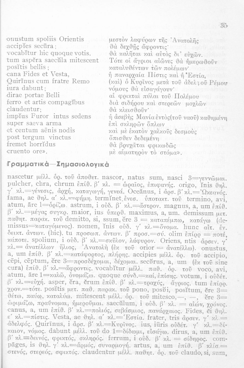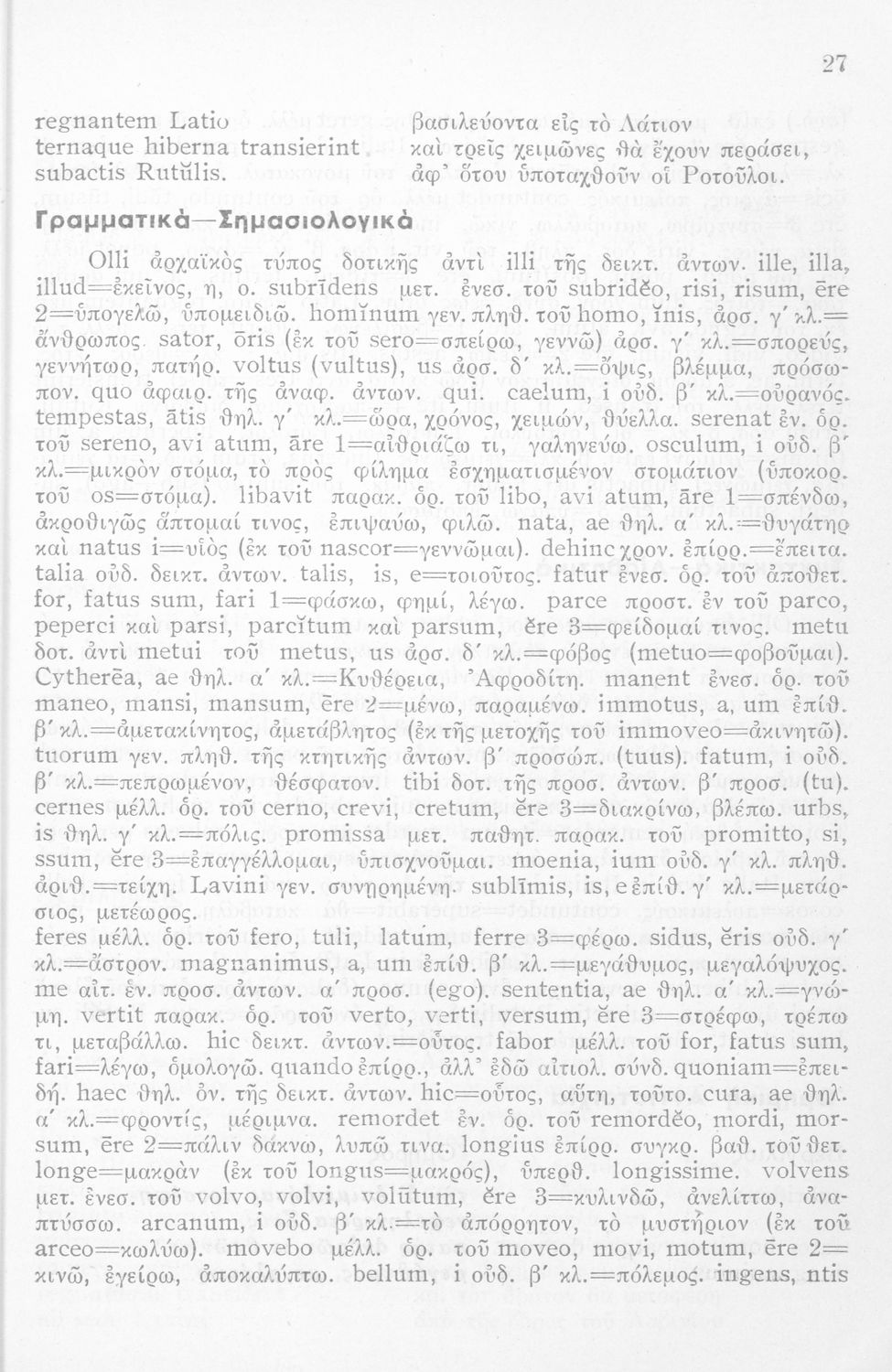 LDR 01277 2200193 4500 035 ## _a01-45067 040 ## _aΙνστιτούτο Εκπαιδευτικής Πολιτικής 041 ## _ael 100 ## _aΠόπλιος Βιργίλιος Μάρων (P. Vergilius Maro) _aΓεώργιος Ν. Παπανικολάου (μετάφραση/σχόλια) 110 ## _a45067 245 0# _aΟυεργιλίου Αινειάδος Εκλογαί εκ του Α΄ βιβλίου Σχολικόν βοήθημα δια την Η΄ τάξιν των Οκταταξίων Γυμνασίων 260 ## _aΑθήνα 300 ## _a56 _c20 520 ## _aΜαθητικό βοήθημα Λατινικών για την Η΄ τάξη των Οκταταξίων Γυμνασίων που περιέχει κείμενο, μετάφραση, γραμματικά, σημασιολογικά και συντακτικά σχόλια, νόημα και περίληψη. 521 ## _aΗ' Γυμνασίου 522 ## _aΕλλάδα 546 ## _aΚαθαρεύουσα 563 ## _aΜαλακό Εξώφυλλο 650 #4 _aΑντωνυμίες _aΑριθμητικά _aΕνεργητική και παθητική φωνή _aΕπίθετα _aΚλίση _aΡήματα _aΣυζυγίες _aΥποκείμενα
