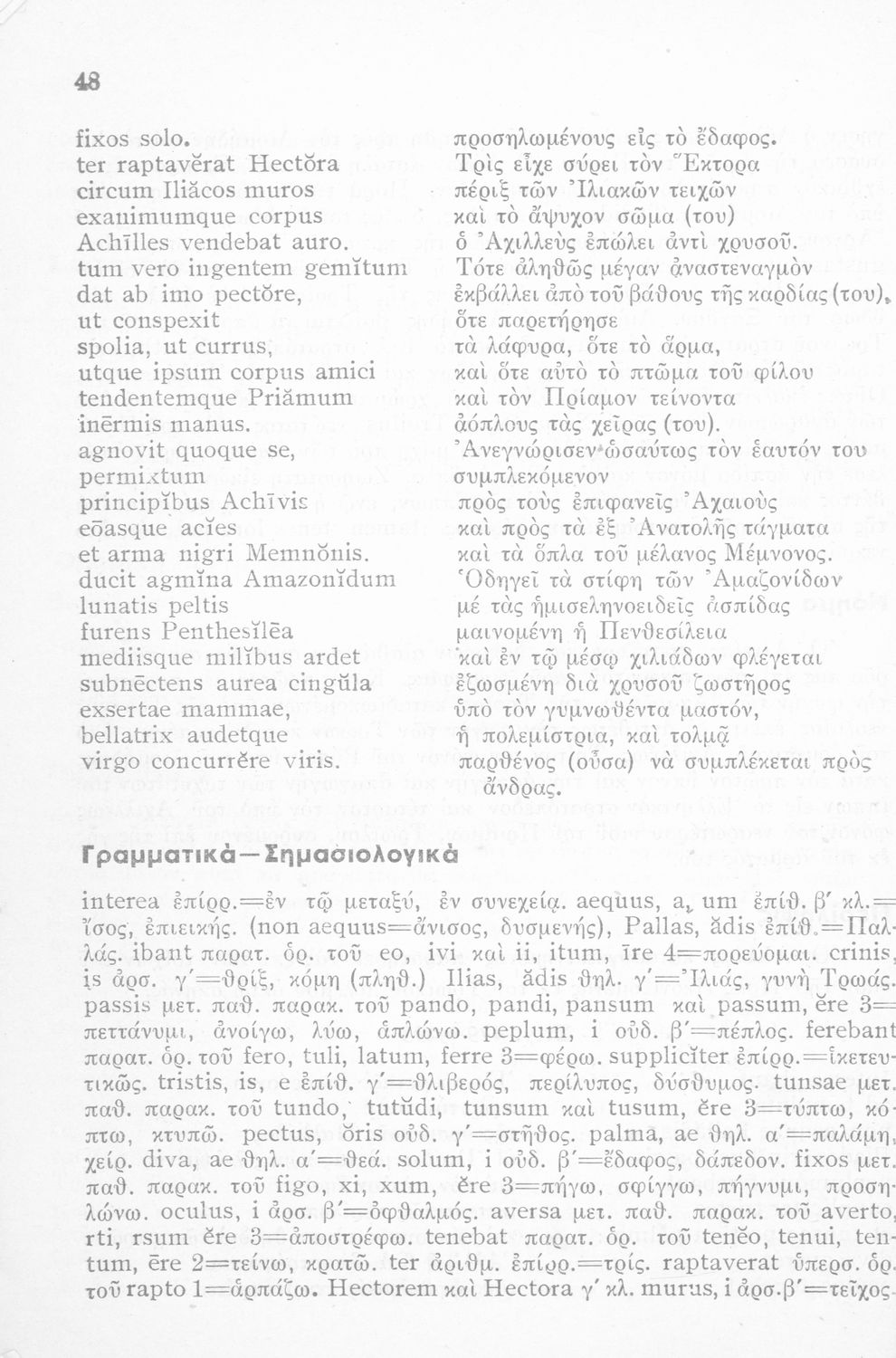 Μαθητικό βοήθημα Λατινικών για την Η΄ τάξη των Οκταταξίων Γυμνασίων που περιέχει κείμενο, μετάφραση, γραμματικά, σημασιολογικά και συντακτικά σχόλια, νόημα και περίληψη.