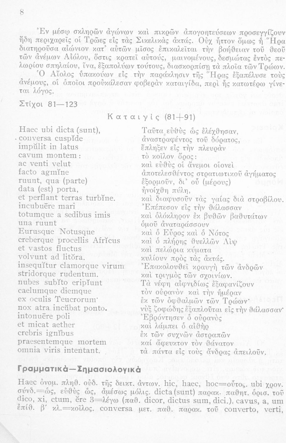 Μαθητικό βοήθημα Λατινικών για την Η΄ τάξη των Οκταταξίων Γυμνασίων που περιέχει κείμενο, μετάφραση, γραμματικά, σημασιολογικά και συντακτικά σχόλια, νόημα και περίληψη.
