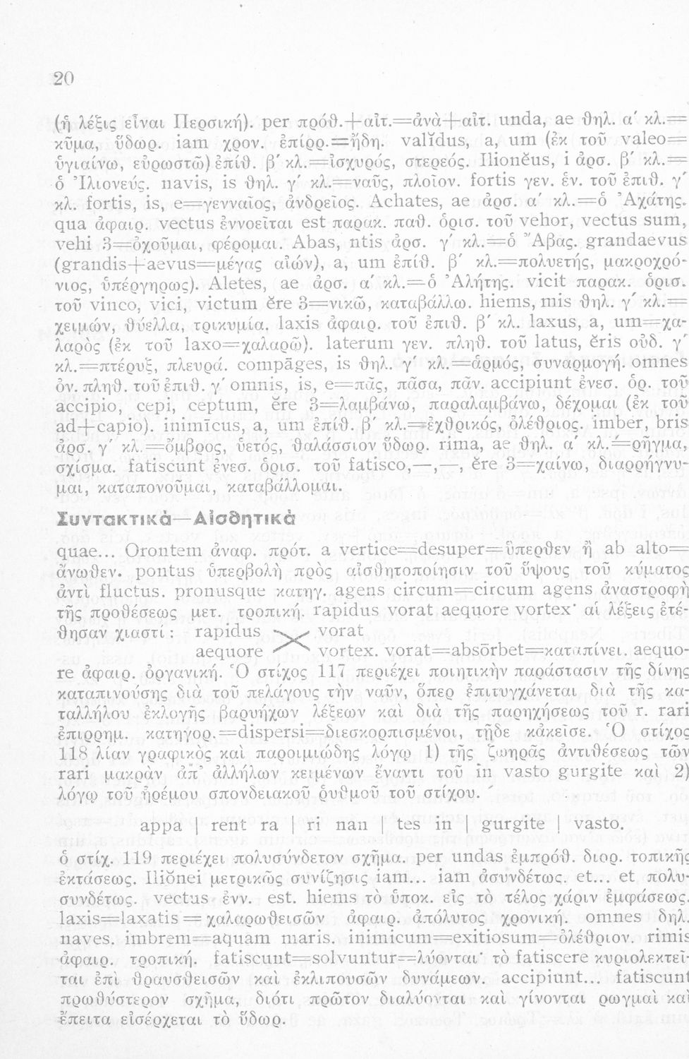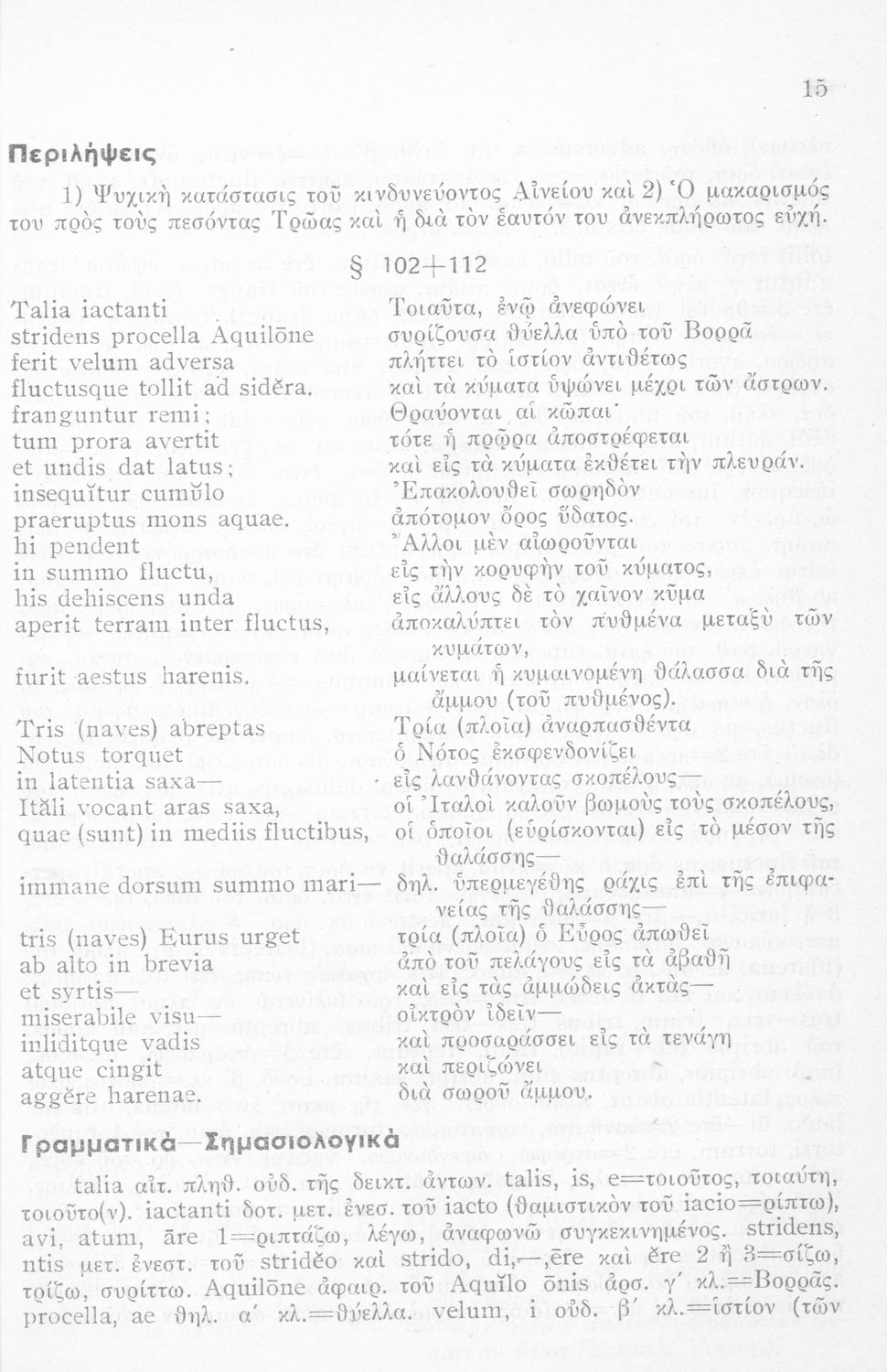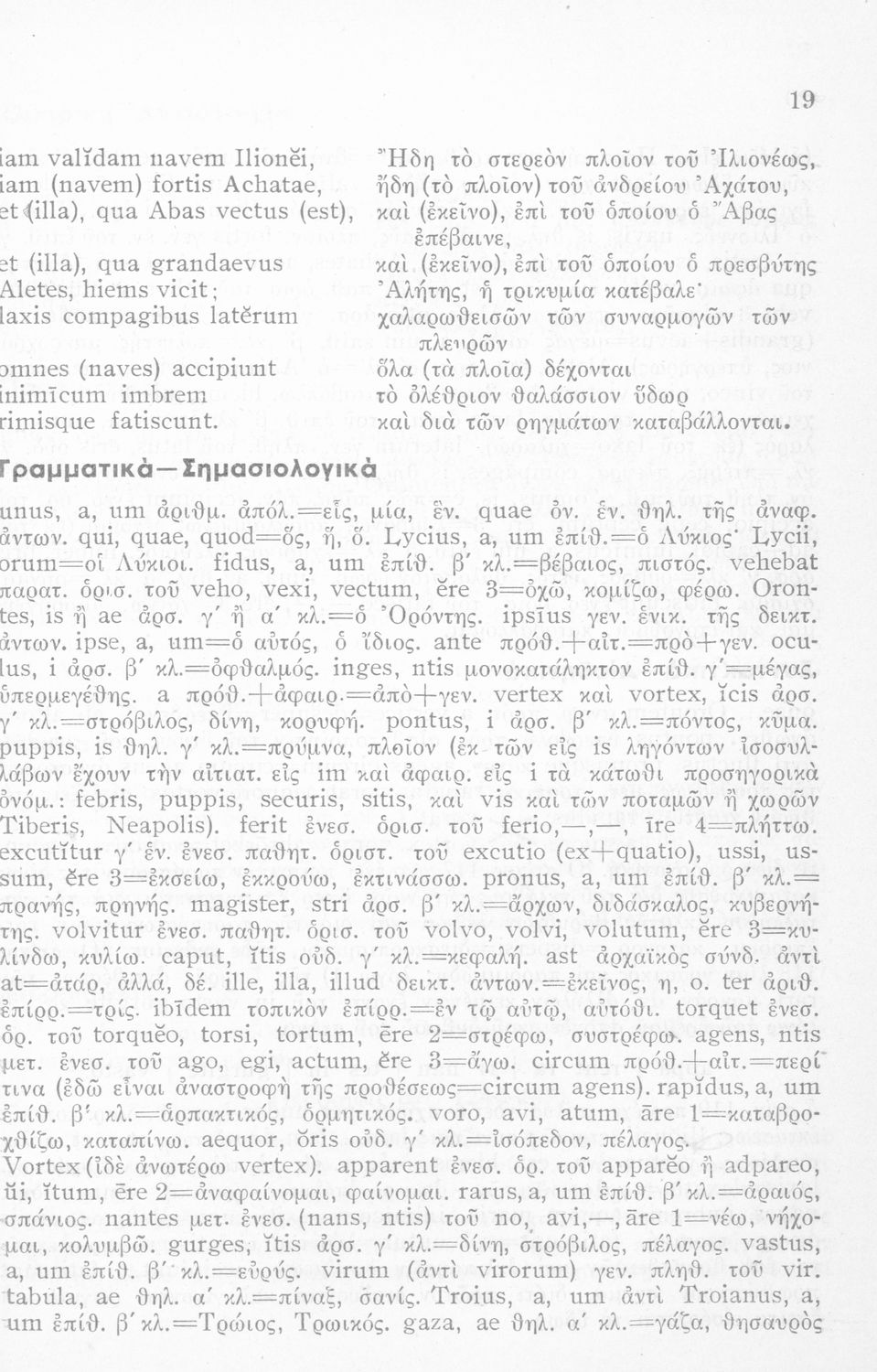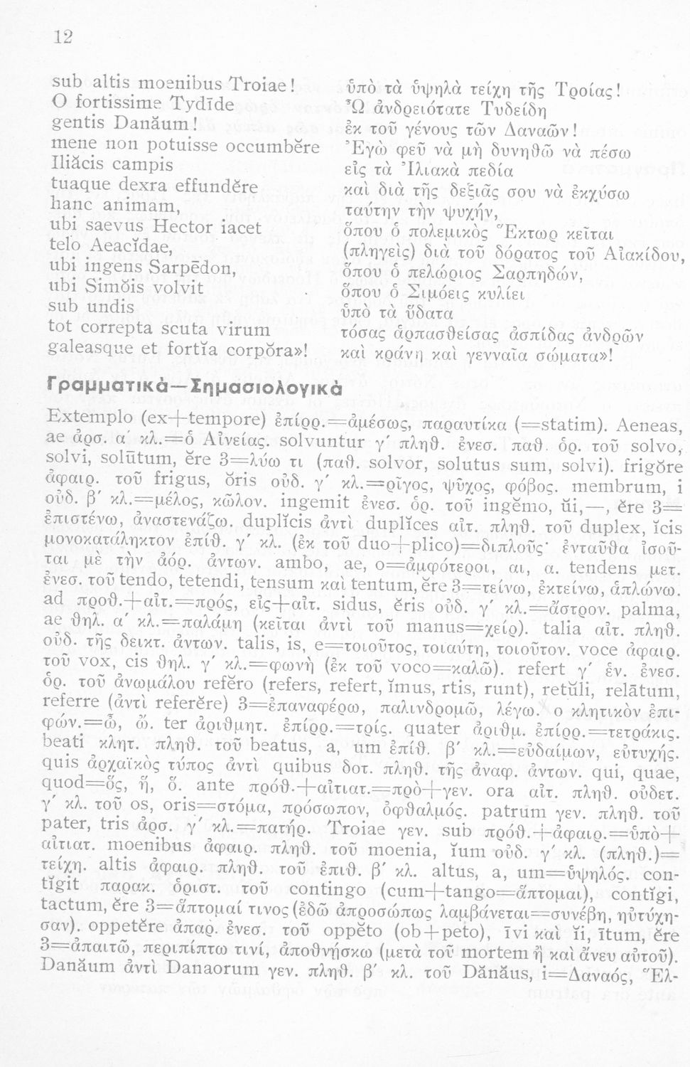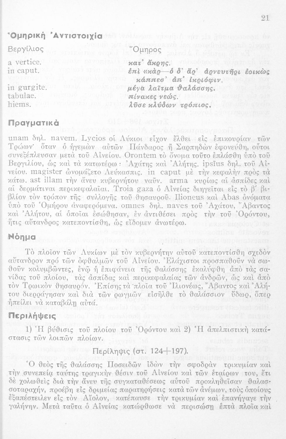 LDR 01277 2200193 4500 035 ## _a01-45067 040 ## _aΙνστιτούτο Εκπαιδευτικής Πολιτικής 041 ## _ael 100 ## _aΠόπλιος Βιργίλιος Μάρων (P. Vergilius Maro) _aΓεώργιος Ν. Παπανικολάου (μετάφραση/σχόλια) 110 ## _a45067 245 0# _aΟυεργιλίου Αινειάδος Εκλογαί εκ του Α΄ βιβλίου Σχολικόν βοήθημα δια την Η΄ τάξιν των Οκταταξίων Γυμνασίων 260 ## _aΑθήνα 300 ## _a56 _c20 520 ## _aΜαθητικό βοήθημα Λατινικών για την Η΄ τάξη των Οκταταξίων Γυμνασίων που περιέχει κείμενο, μετάφραση, γραμματικά, σημασιολογικά και συντακτικά σχόλια, νόημα και περίληψη. 521 ## _aΗ' Γυμνασίου 522 ## _aΕλλάδα 546 ## _aΚαθαρεύουσα 563 ## _aΜαλακό Εξώφυλλο 650 #4 _aΑντωνυμίες _aΑριθμητικά _aΕνεργητική και παθητική φωνή _aΕπίθετα _aΚλίση _aΡήματα _aΣυζυγίες _aΥποκείμενα