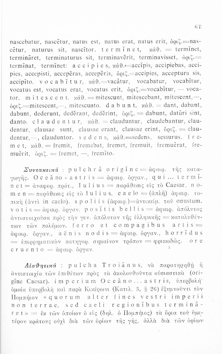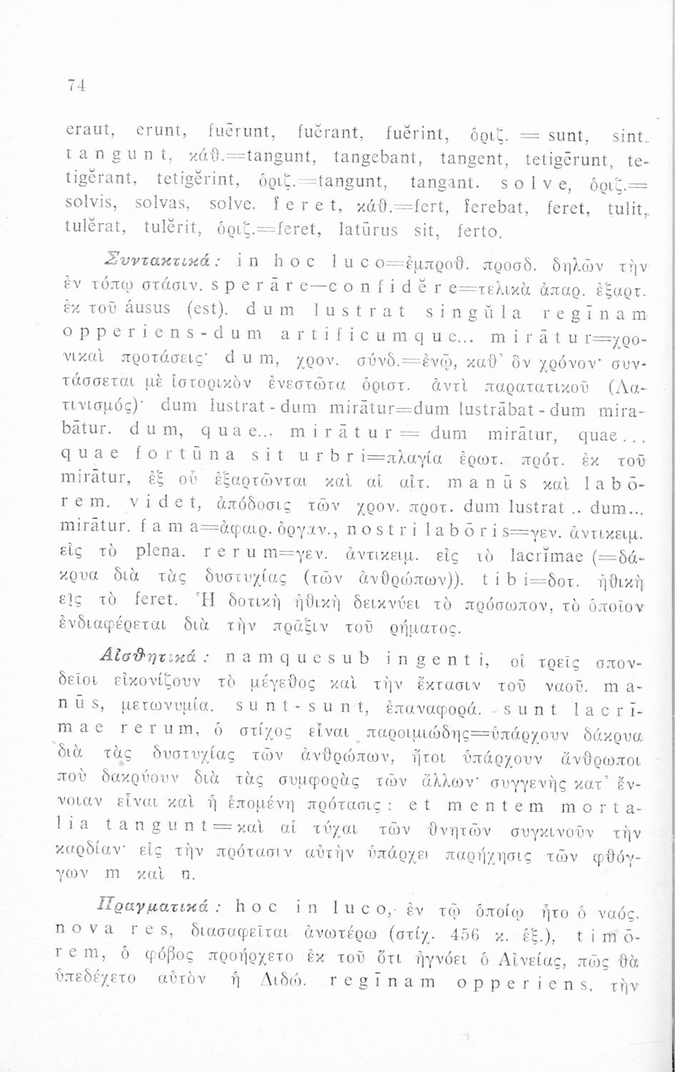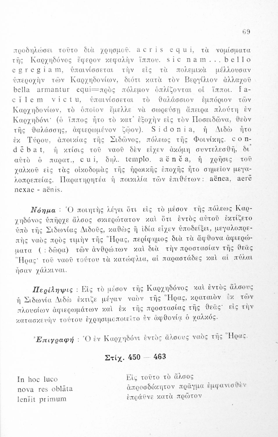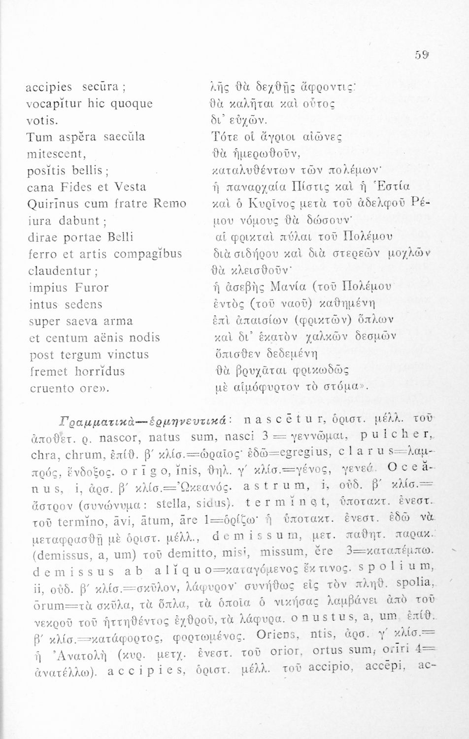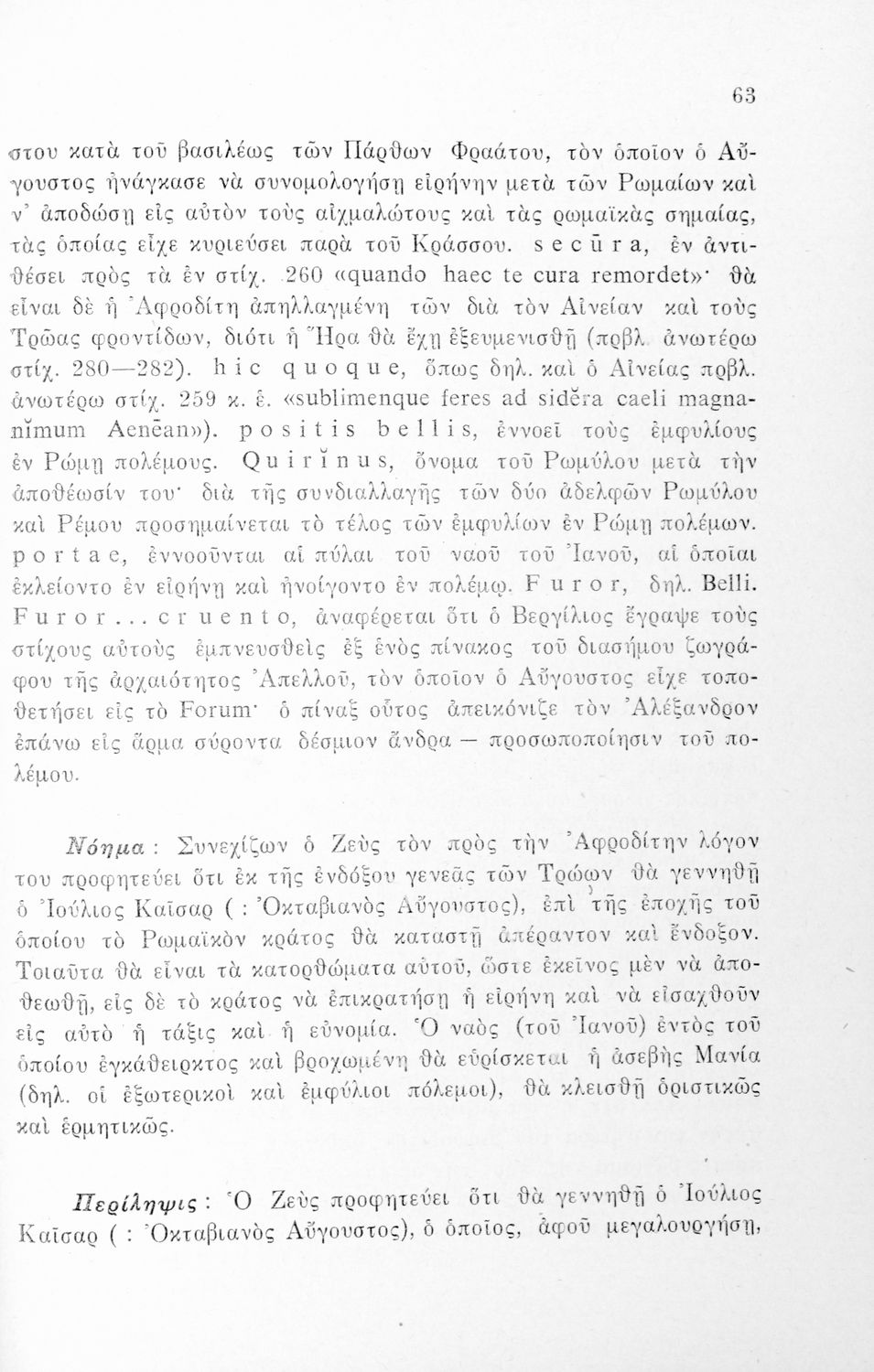 Μαθητικό βοήθημα Λατινικών για την Γ' Λυκείου. Περιέχει μετάφραση, γραμματολογικές, συντακτικές παρατηρήσεις και αισθητικά σχόλια.