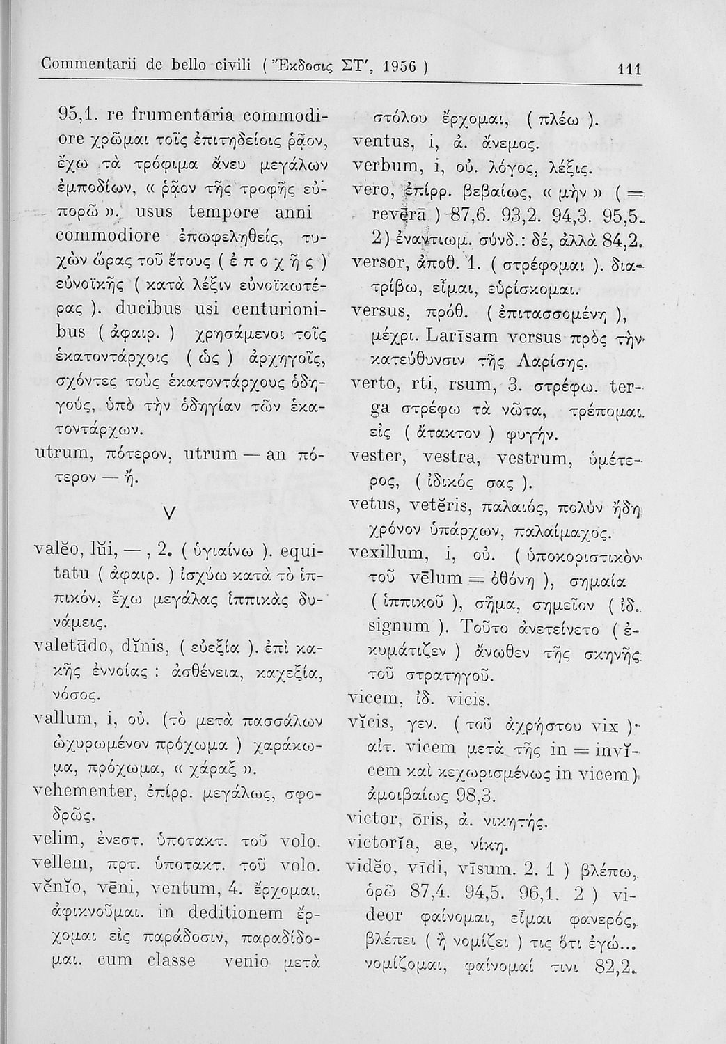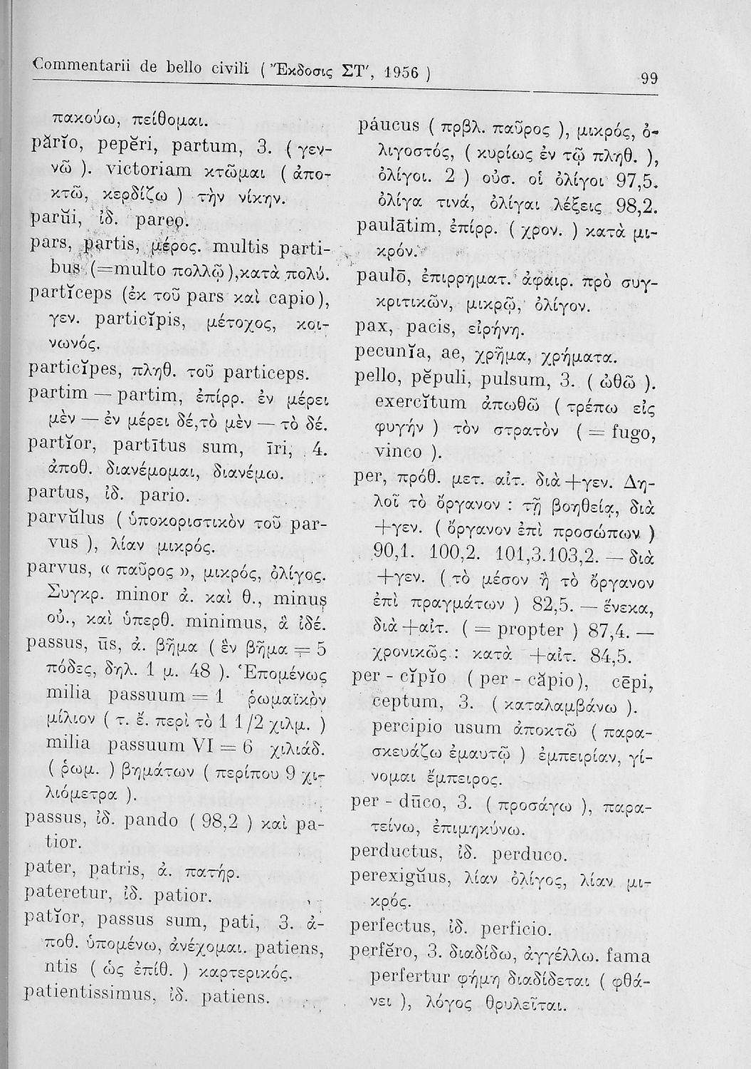 Βαθμίδα εκπαίδευσης: Δευτεροβάθμια Μάθημα: Λατινικά Γλώσσα: Απλή καθαρεύουσα Παρουσίαση περιεχομένου: Σχολικό εγχειρίδιο Λατινικών που περιέχει αποσπάσματα από τα απομνημονεύματα του Ιούλιου Καίσαρα, σύντομο βιογραφικό σημείωμα, εισαγωγή στο έργο και πραγματολογικά και γλωσσικά σχόλια. Ο συγγραφέας ήταν καθηγητής της Λατινικής Φιλολογίας στο Πανεπιστήμιο Αθηνών. |