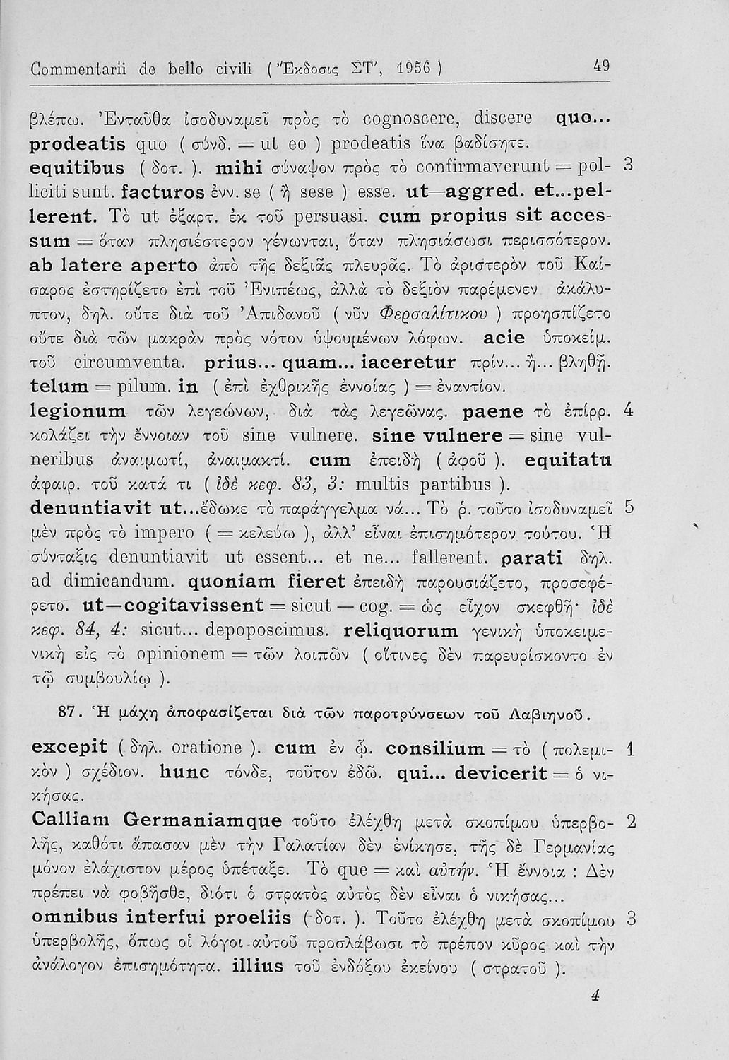 Σχολικό εγχειρίδιο Λατινικών για τη Β΄ Γυμνασίου που περιέχει αποσπάσματα από τα απομνημονεύματα του Ιούλιου Καίσαρα, σύντομο βιογραφικό σημείωμα, εισαγωγή στο έργο και πραγματολογικά και γλωσσικά σχόλια.
