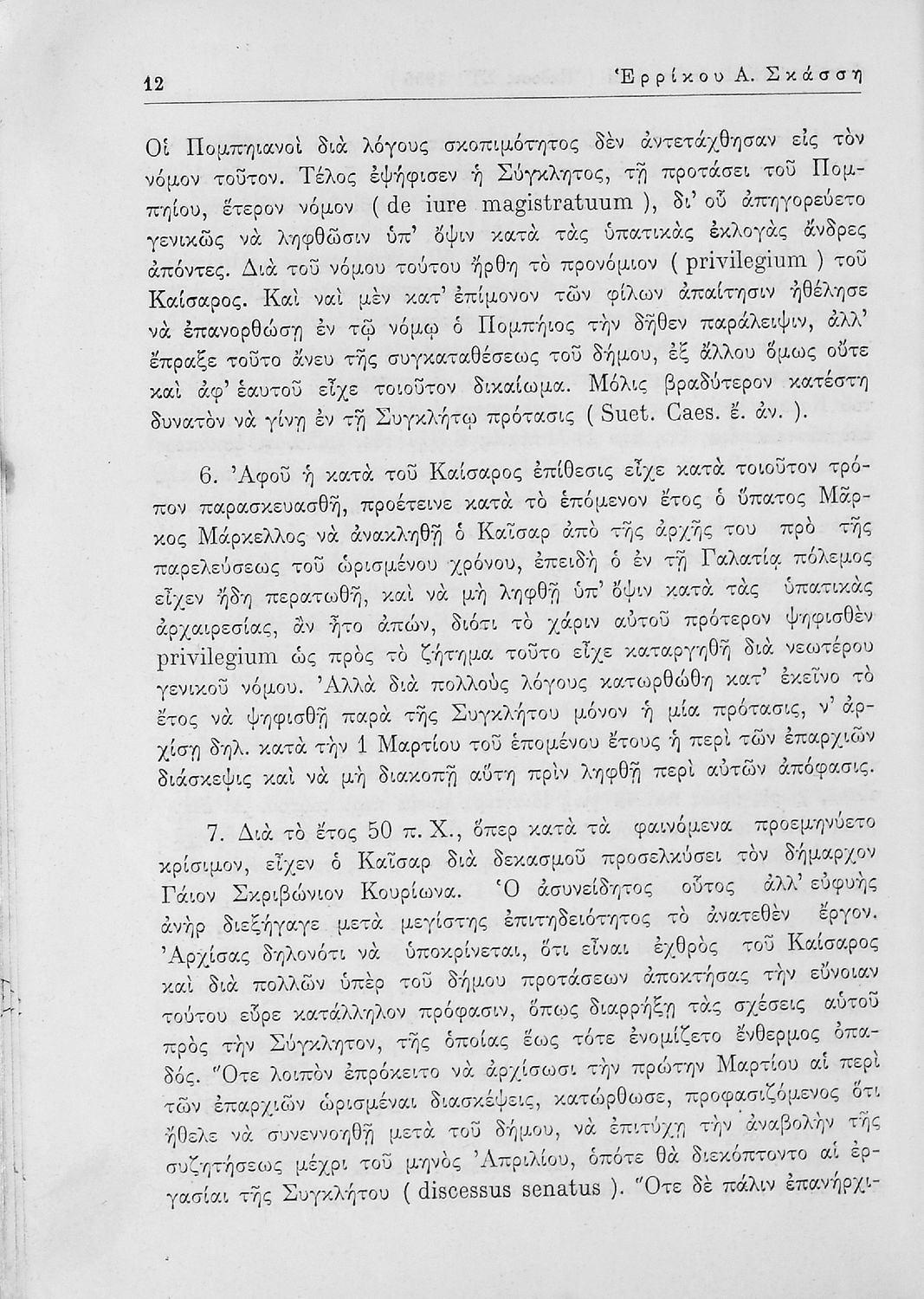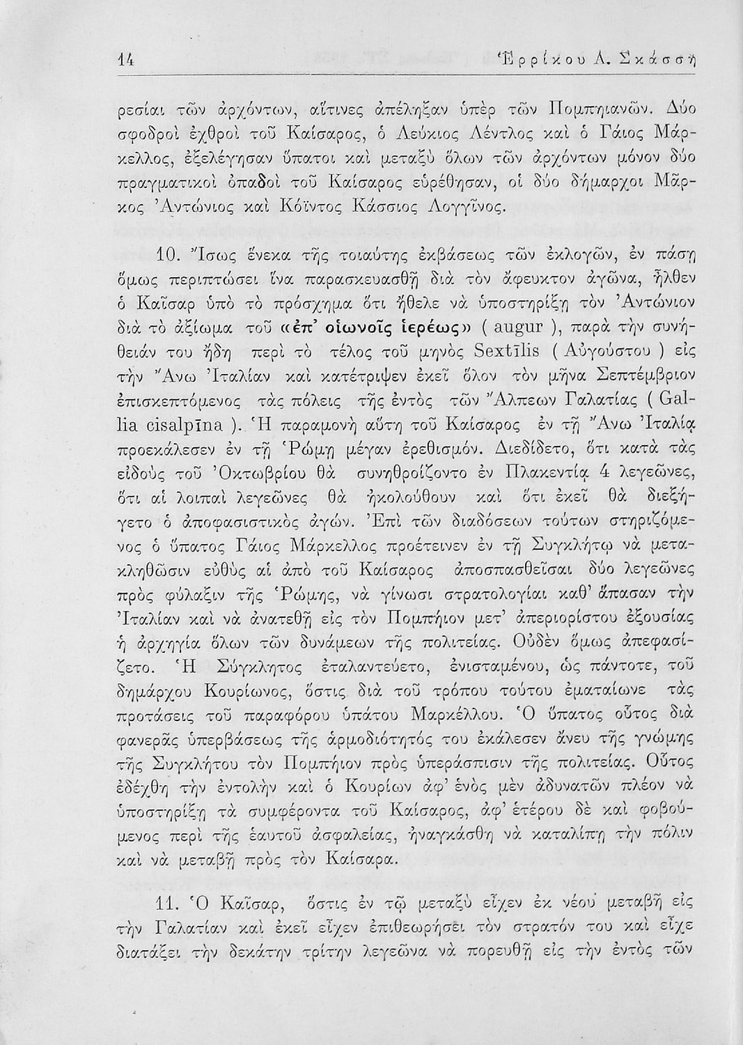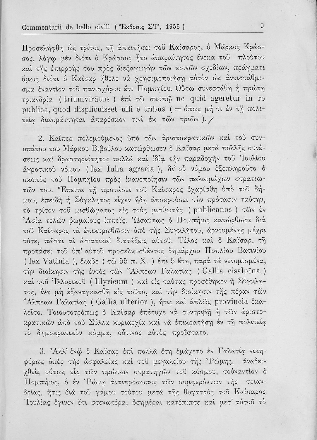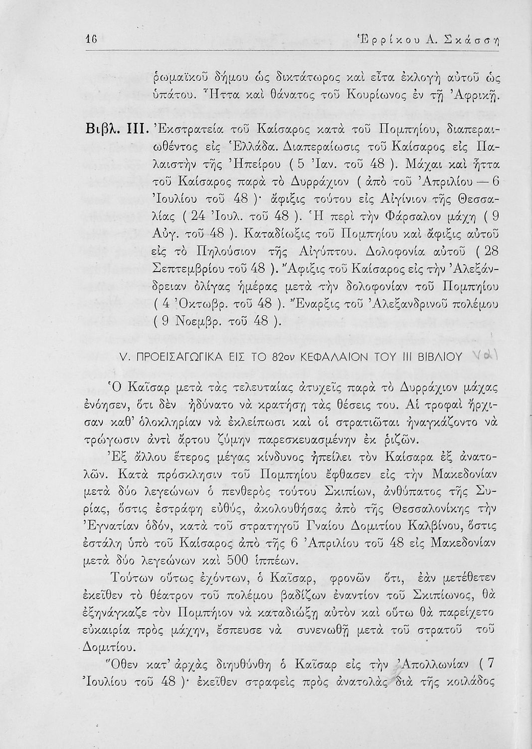 Βαθμίδα εκπαίδευσης: Δευτεροβάθμια Μάθημα: Λατινικά Γλώσσα: Απλή καθαρεύουσα Παρουσίαση περιεχομένου: Σχολικό εγχειρίδιο Λατινικών που περιέχει αποσπάσματα από τα απομνημονεύματα του Ιούλιου Καίσαρα, σύντομο βιογραφικό σημείωμα, εισαγωγή στο έργο και πραγματολογικά και γλωσσικά σχόλια. Ο συγγραφέας ήταν καθηγητής της Λατινικής Φιλολογίας στο Πανεπιστήμιο Αθηνών. |