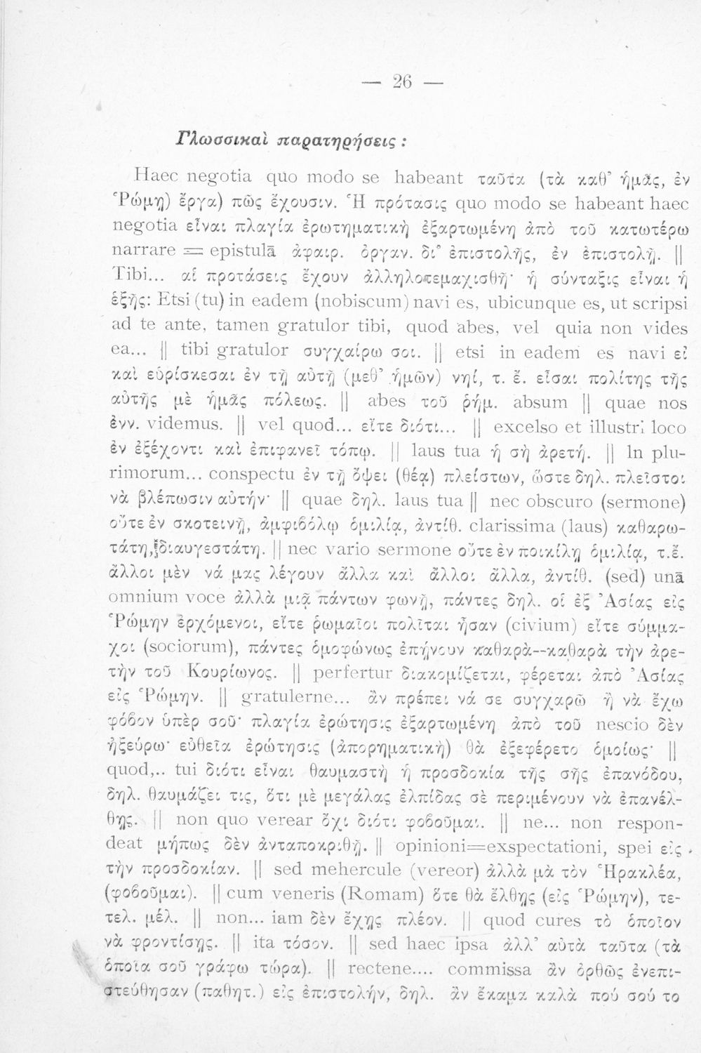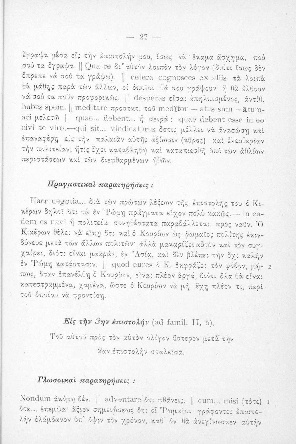 Σχολικό εγχειρίδιο Λατινικών για τη Γ΄ Γυμνασίου που περιέχει κείμενο, εισαγωγή στις επιστολές και σημειώσεις επί των επιστολών. Ο επιμελητής ήταν τακτικός καθηγητής της Λατινικής Φιλολογίας.