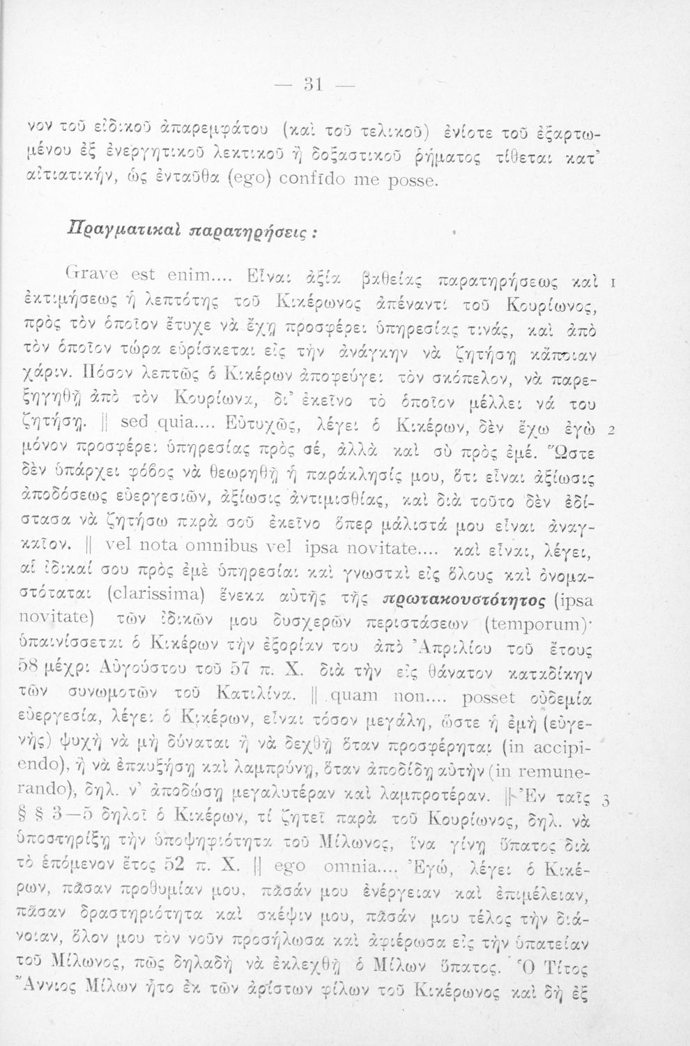 Σχολικό εγχειρίδιο Λατινικών για τη Γ΄ Γυμνασίου που περιλαμβάνει κείμενο, βιογραφικό σημείωμα του Κικέρωνα, εισαγωγικές παρατηρήσεις και ερμηνευτικές σημειώσεις.