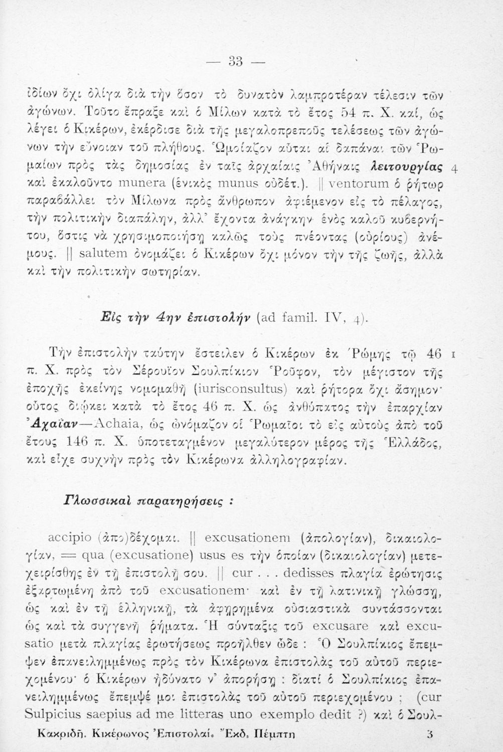 Μάρκος Τύλλιος Κικέρωνας (M. Tullius Cicero), Θεοφάνης Α. Κακριδής (σχόλια, σημειώσεις)