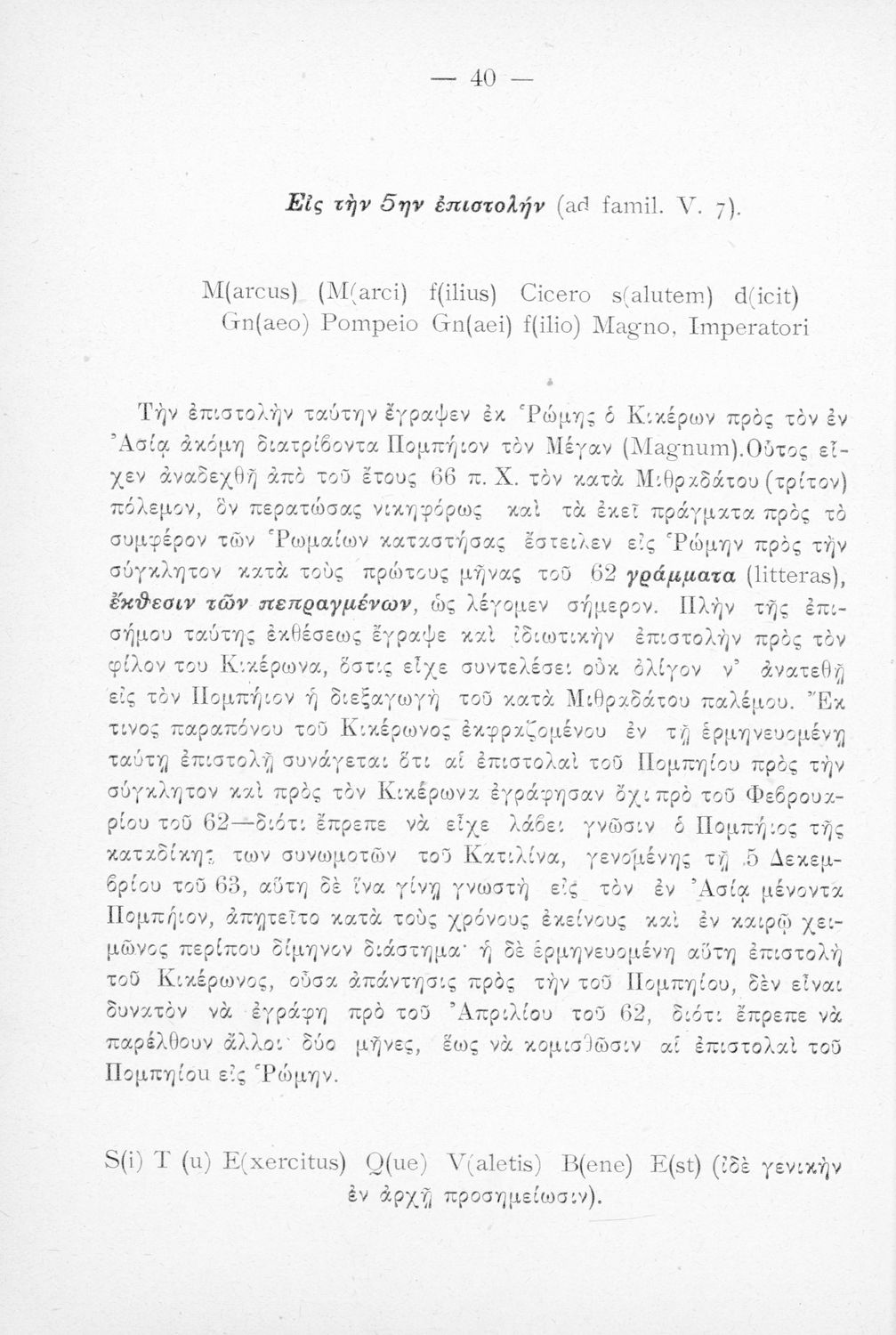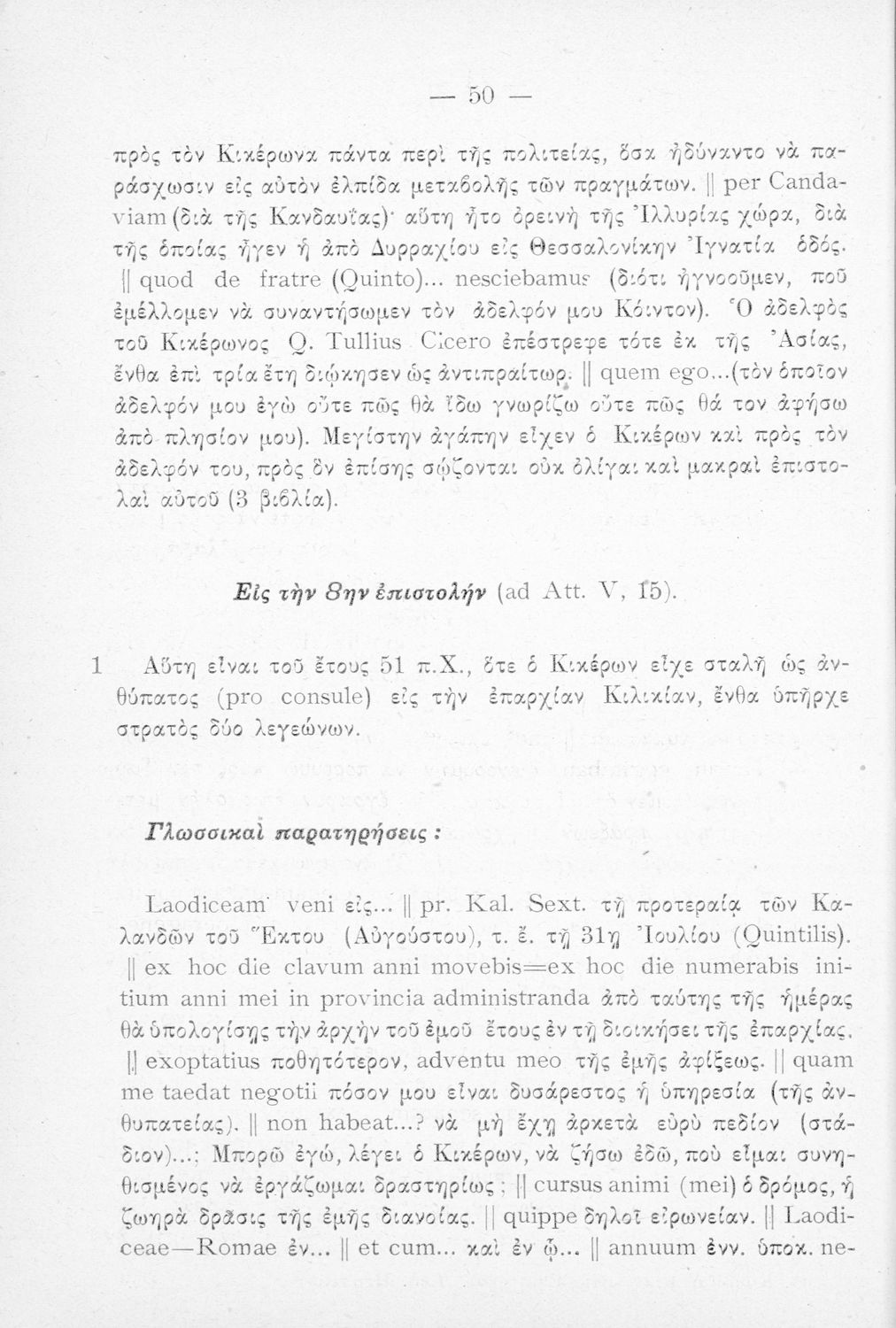 Κωδικός αναγνώρισης: 01-45070 Τίτλος: Μάρκου Τυλλίου Κικέρωνος Επιστολαί αι προς διδασκαλίαν εν τοις Γυμνασίοις υπό του Υπουργείου ωρισμέναι (δια την Γ΄ τάξιν) Συγγραφέας: Μάρκος Τύλλιος Κικέρωνας (M. Tullius Cicero), Θεοφάνης Α. Κακριδής (σχόλια/παρατηρήσεις) Μέγεθος και υπόστρωμα: Σχολικό εγχειρίδιο, 21εκ., σκληρό εξώφυλλο, 71 σελίδες. |