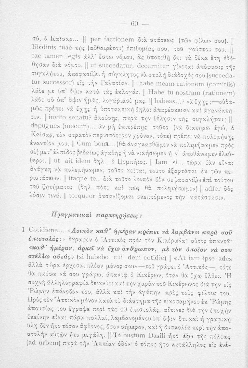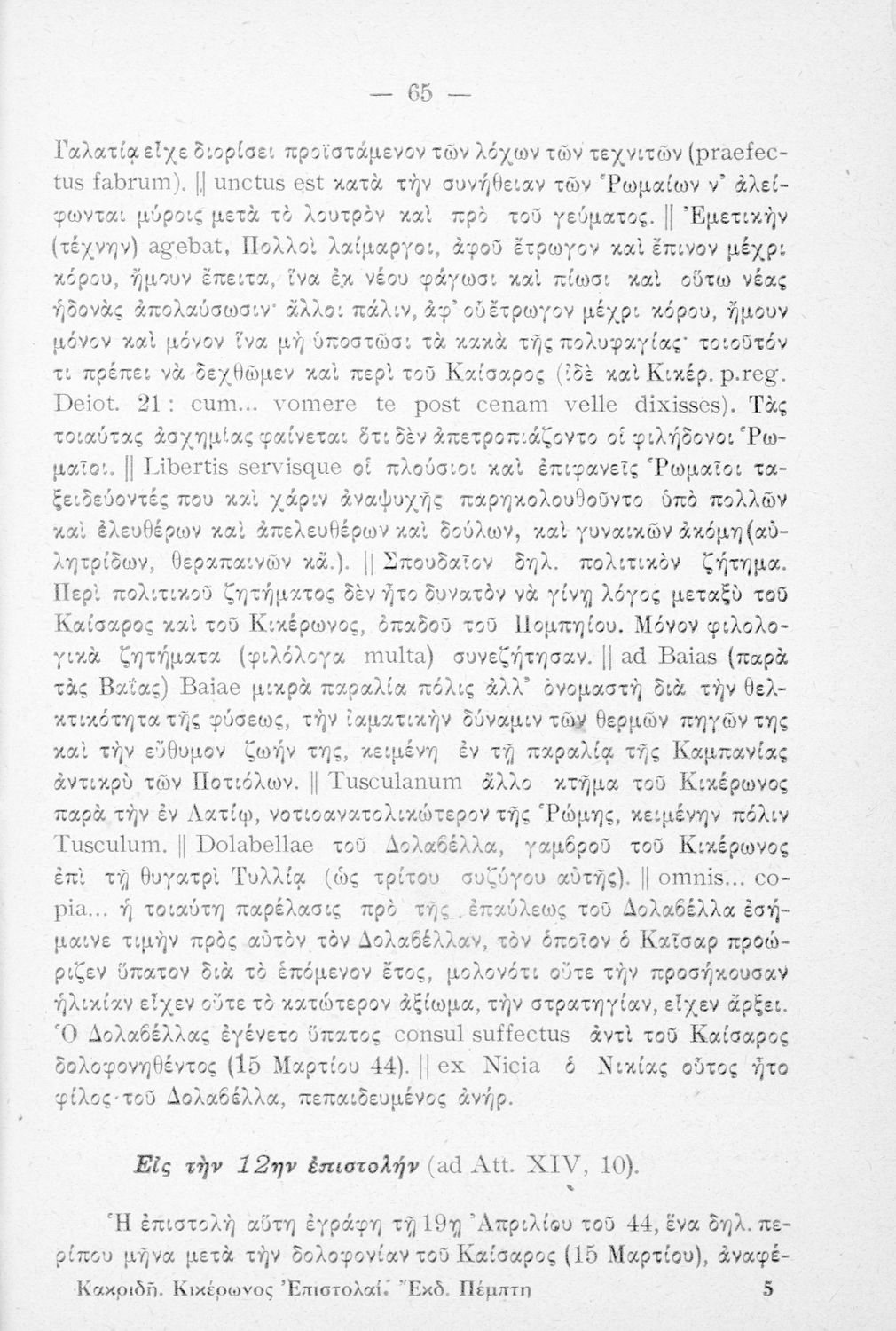Σχολικό εγχειρίδιο Λατινικών για την Ε΄ Γυμνασίου που περιλαμβάνει επιστολές του Κικέρωνα προς τους οικείους του και προς τον Αττικό, και πραγματολογικά και ερμηνευτικά σχόλια. Ο επιμελητής ήταν τακτικός ...