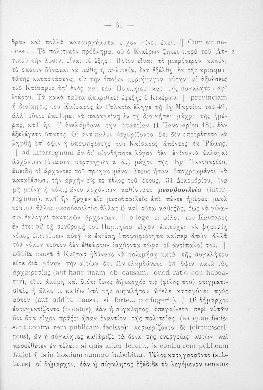 Μάρκος Τύλλιος Κικέρωνας (M. Tullius Cicero), Θεοφάνης Α. Κακριδής (σχόλια, σημειώσεις)