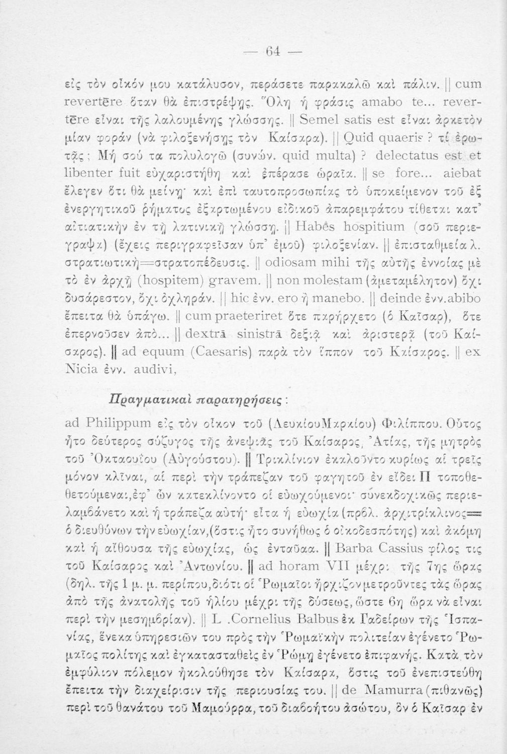 Σχολικό εγχειρίδιο Λατινικών για τα Γυμνάσια που περιλαμβάνει κείμενο, ερμηνευτικές, πραγματολογικές και γλωσσικές παρατηρήσεις.