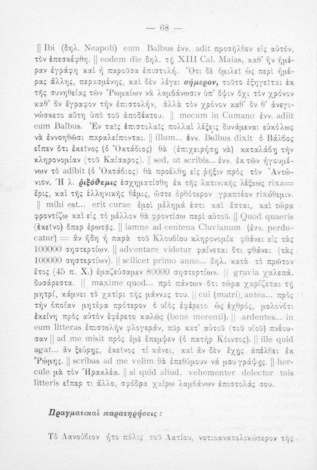 Σχολικό εγχειρίδιο Λατινικών για τη Γ΄ Γυμνασίου που περιέχει κείμενο, εισαγωγή στις επιστολές και σημειώσεις επί των επιστολών. Ο επιμελητής ήταν τακτικός καθηγητής της Λατινικής Φιλολογίας.