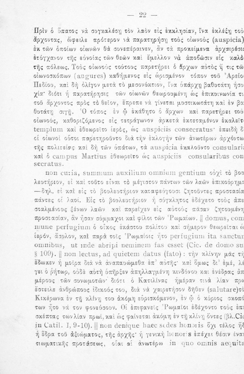 Σχολικό εγχειρίδιο Λατινικών για τη Γ΄ Γυμνασίου που περιλαμβάνει κείμενο, βιογραφικό σημείωμα του Κικέρωνα, εισαγωγικές παρατηρήσεις και ερμηνευτικές σημειώσεις.