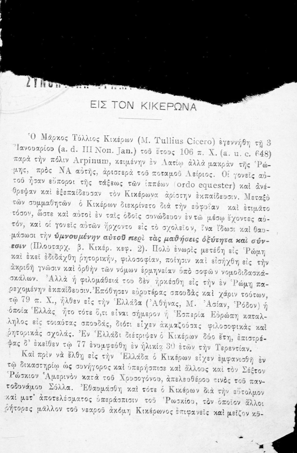 Σχολικό εγχειρίδιο Λατινικών Γ΄ Γυμνασίου που περιλαμβάνει το έργο του Κικέρωνα Υπέρ του Αρχία του ποιητή λόγος, εισαγωγή στη ζωή και την εργογραφία του Κικέρωνα, και ερμηνευτικά και γραμματολογικά σχόλια.