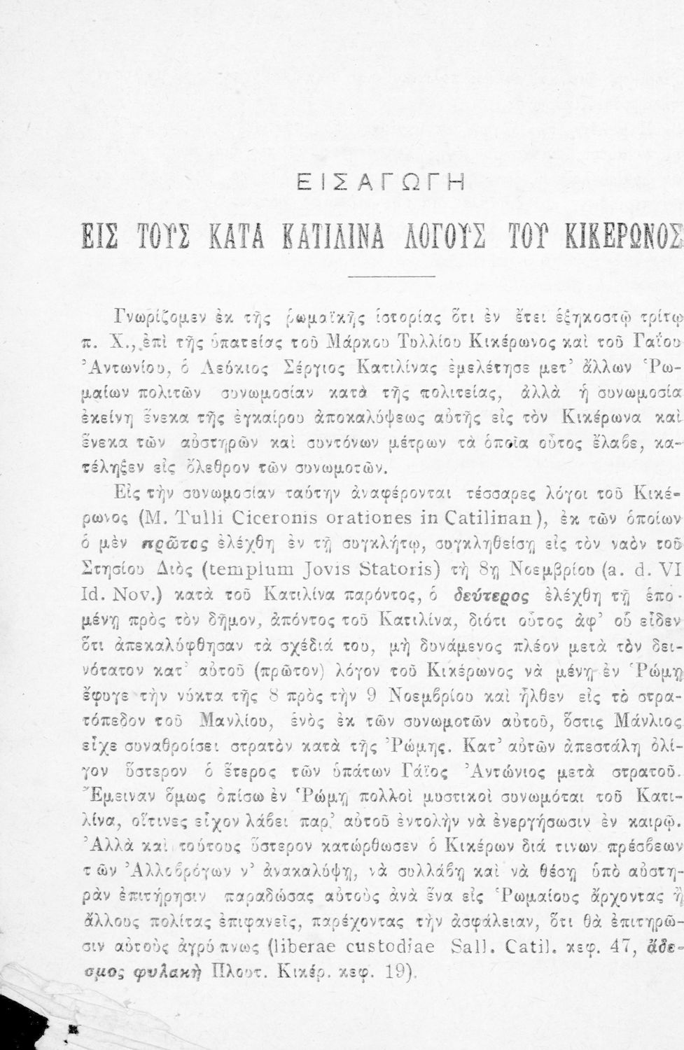 Μάρκου Τυλλίου Κικέρωνος Ο τέταρτος κατά Κατιλίνα Λόγος προς χρήσιν των μαθητών της Γ΄ τάξεως του Γυμνασίου