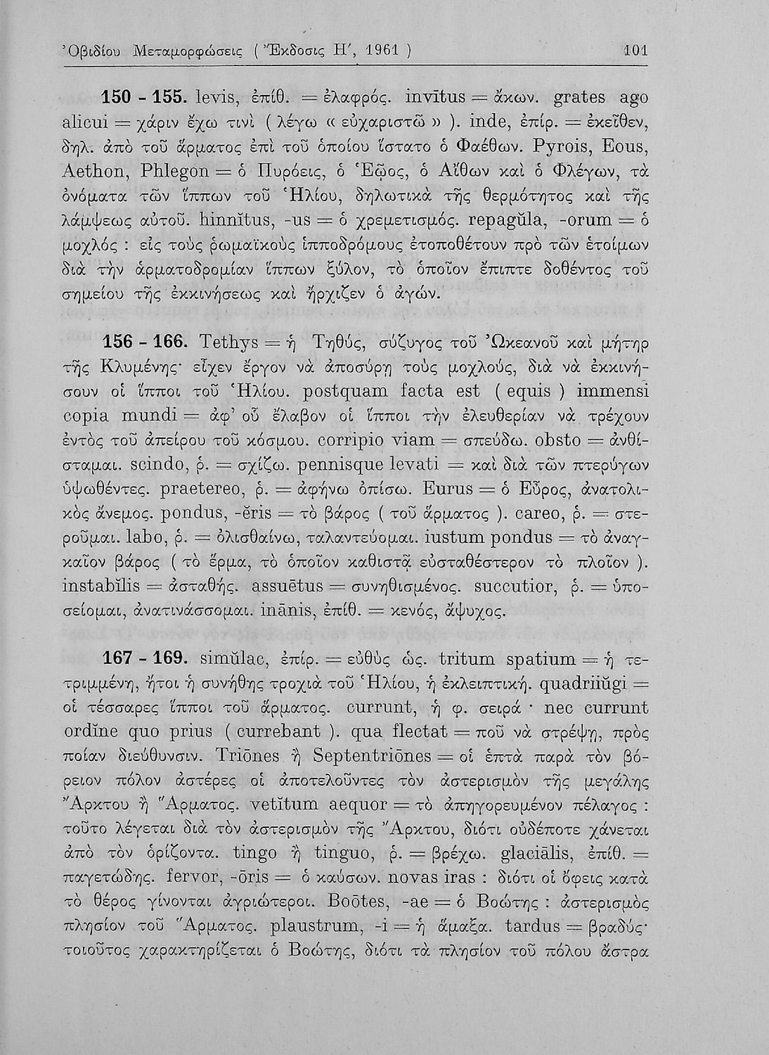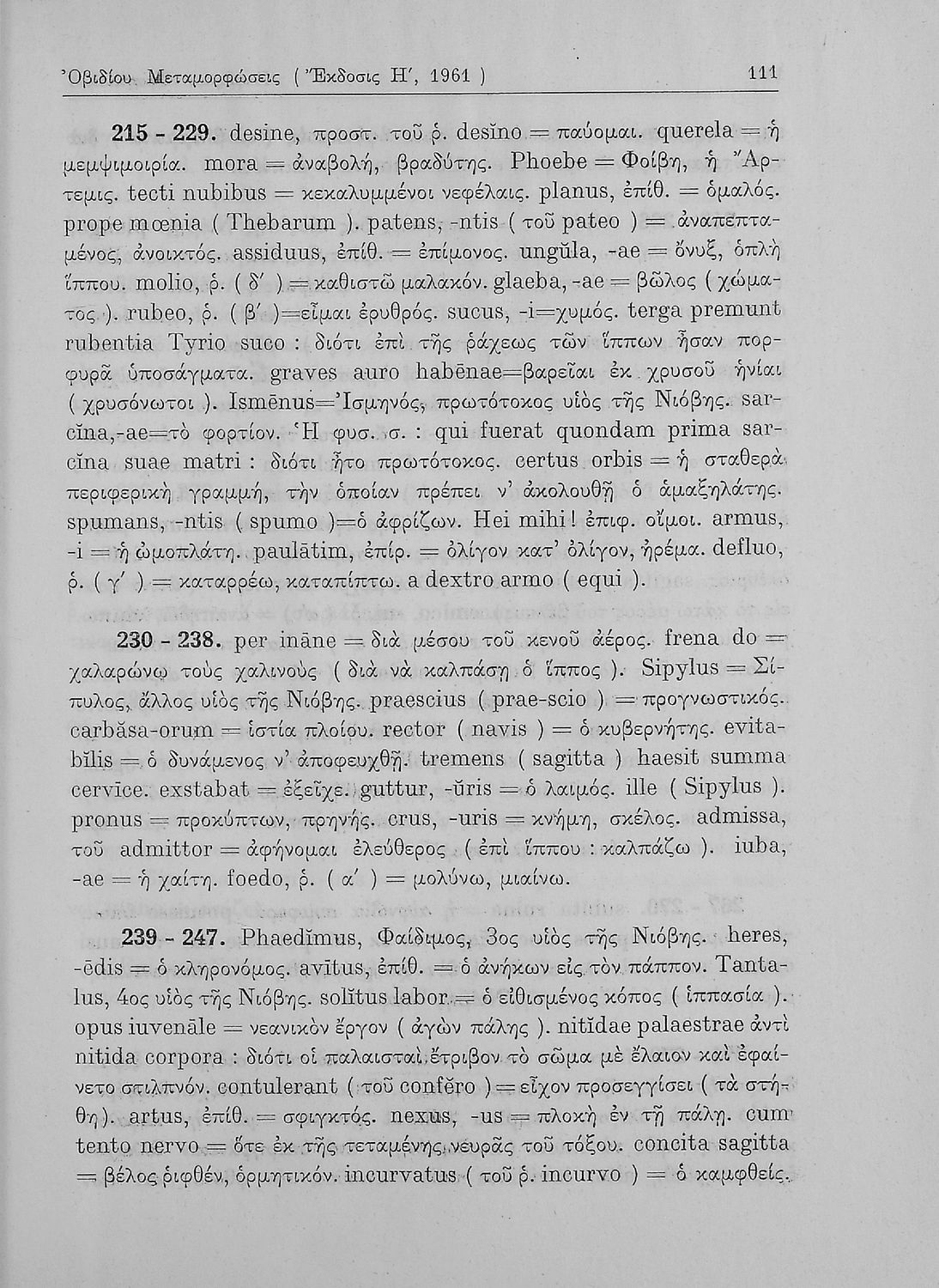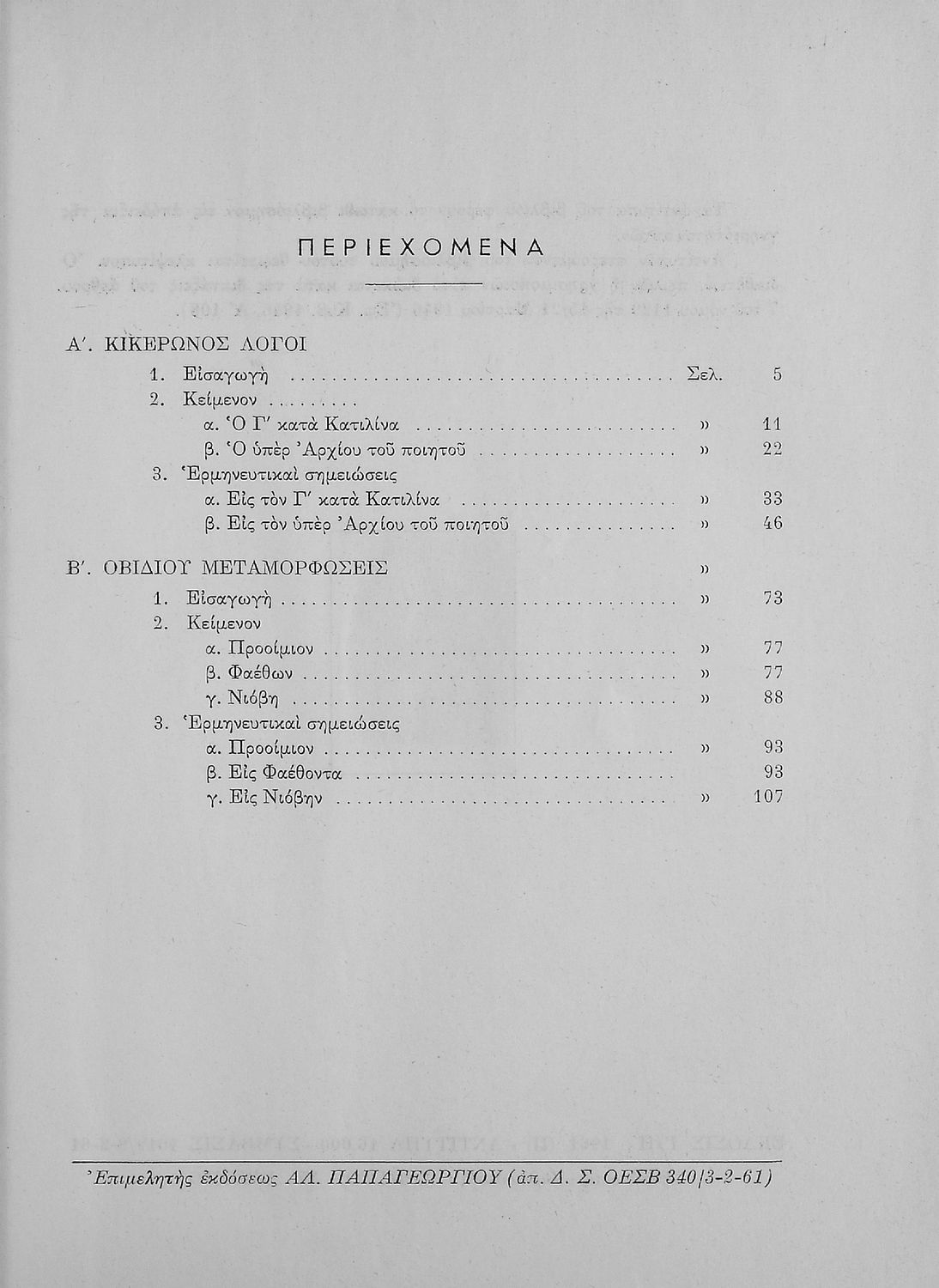 Σχολικό εγχειρίδιο Λατινικών για την Ε΄ Γυμνασίου που περιέχει βιογραφικό σημείωμα των Κικέρωνα και Οβίδιου, εισαγωγικά σχόλια, κείμενο και ερμηνευτικές σημειώσεις.