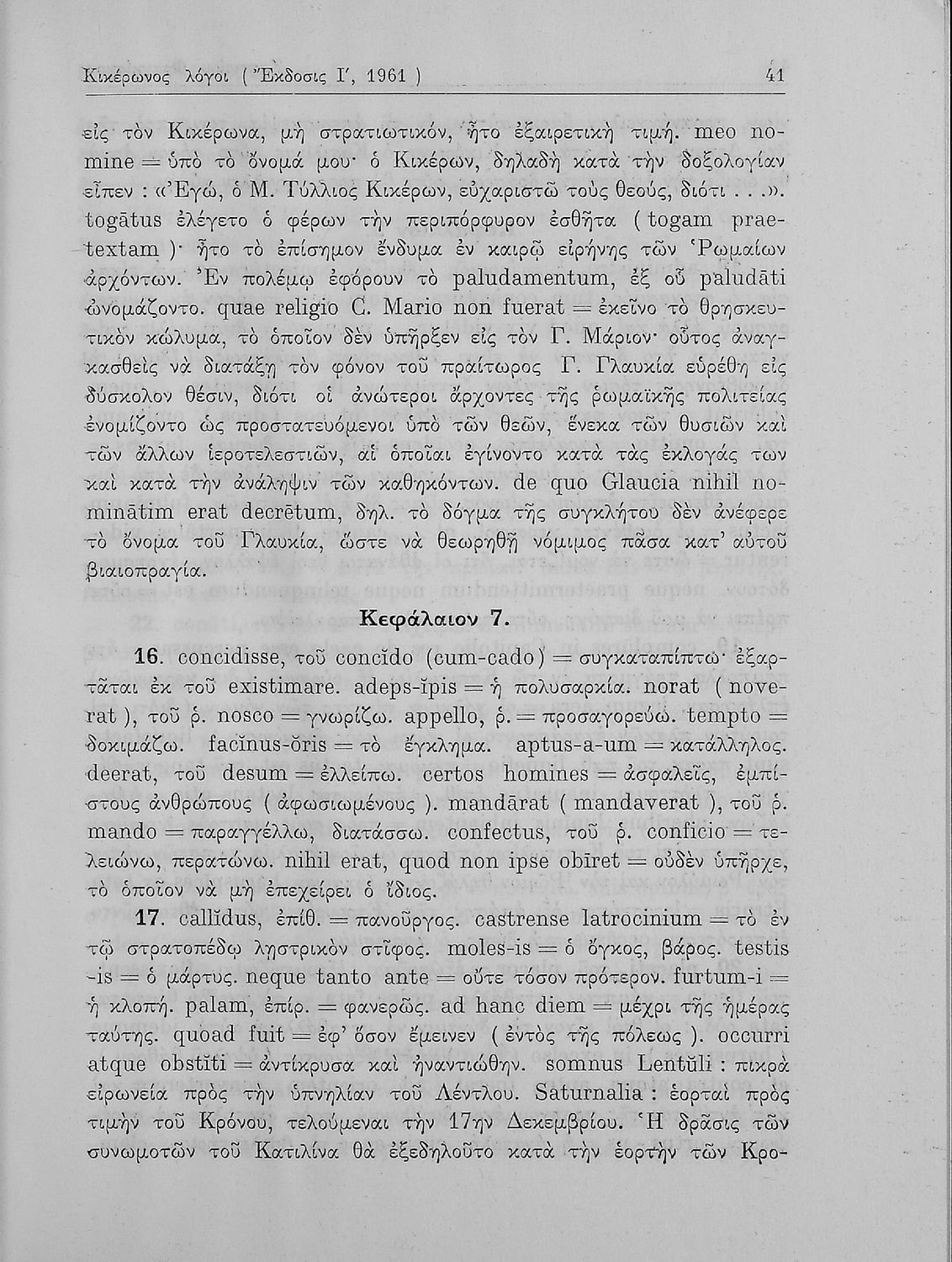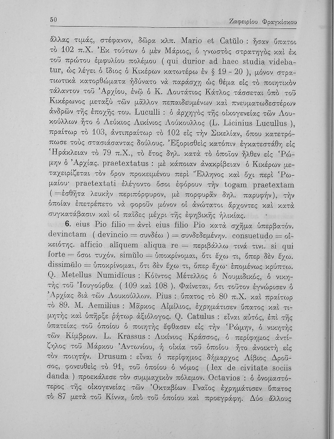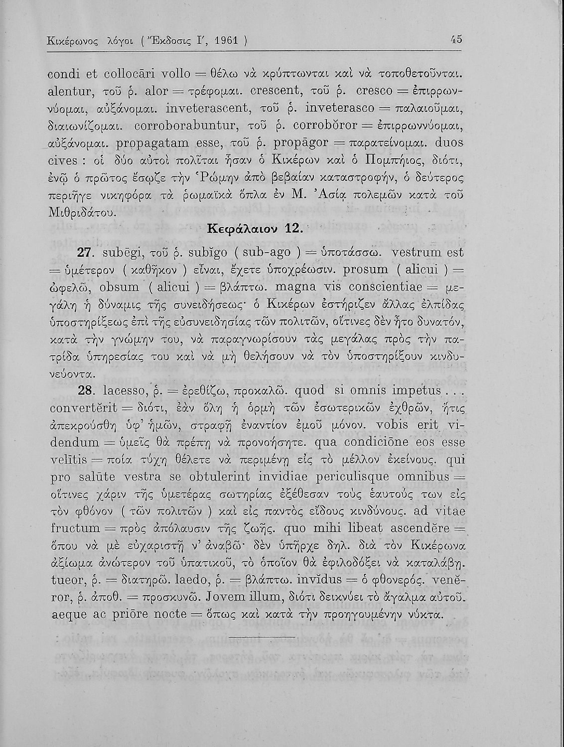 Σχολικό εγχειρίδιο Λατινικών για την Ε΄ Γυμνασίου παλαιού τύπου και την ΣΤ΄ Γυμνασίου νέου τύπου ου περιέχει βιογραφικό σημείωμα των Κικέρωνα και Οβίδιου, εισαγωγικά σχόλια, κείμενο και ερμηνευτικές σημειώσεις.