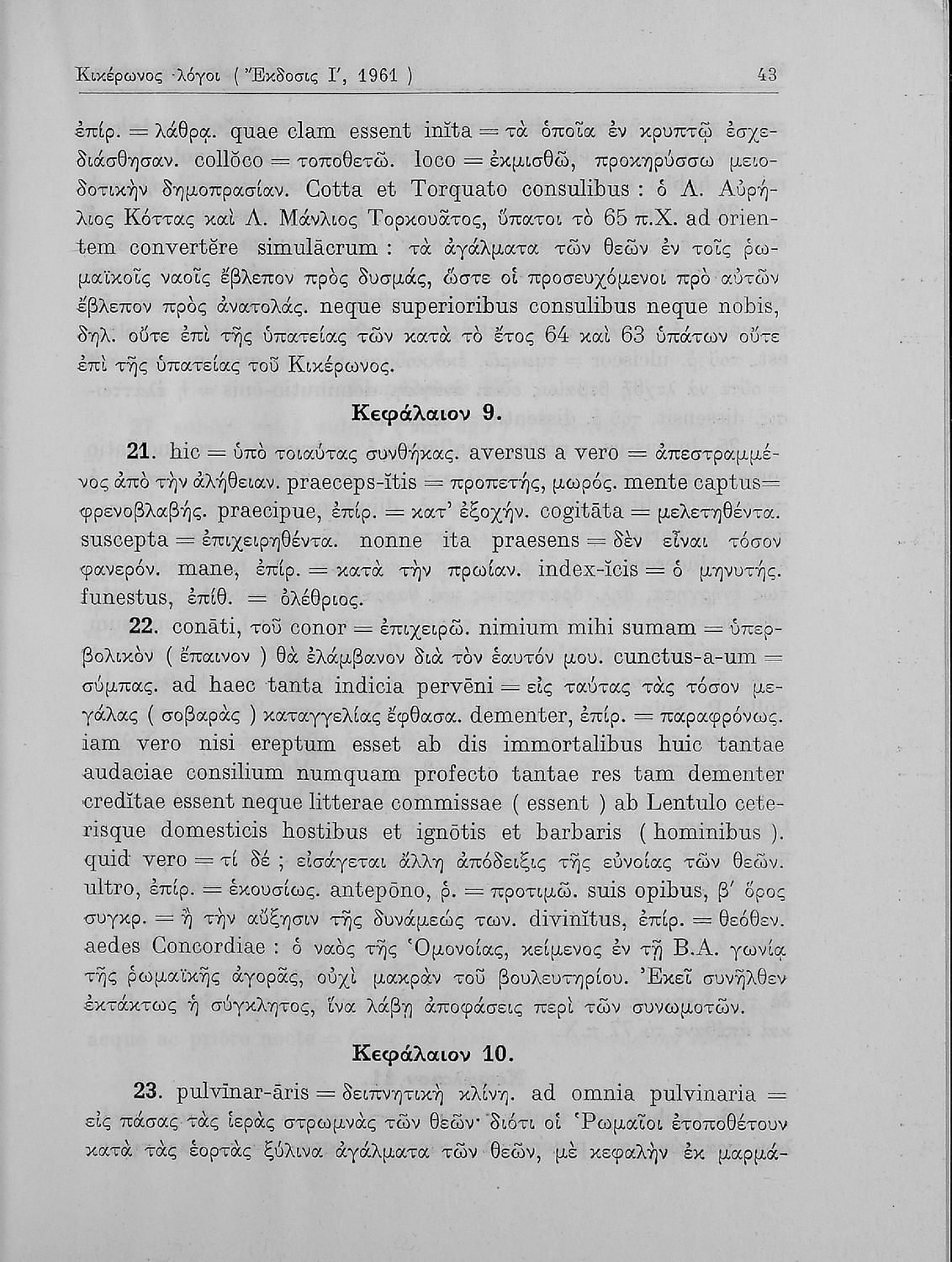 Μάρκος Τύλλιος Κικέρωνας (M. Tullius Cicero), Θεοφάνης Α. Κακριδής (σχόλια/παρατηρήσεις)