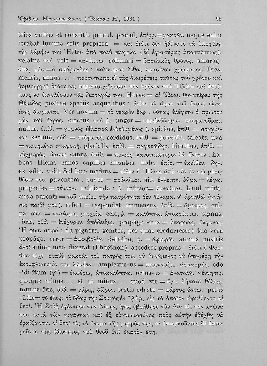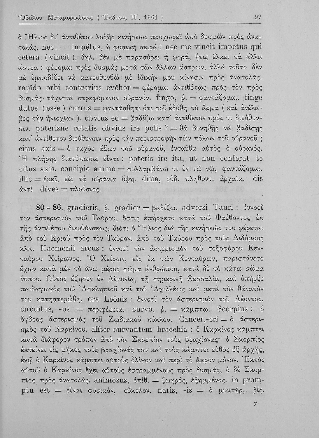 Σχολικό εγχειρίδιο Λατινικών για την Ε΄ Γυμνασίου παλαιού τύπου και την ΣΤ΄ Γυμνασίου νέου τύπου ου περιέχει βιογραφικό σημείωμα των Κικέρωνα και Οβίδιου, εισαγωγικά σχόλια, κείμενο και ερμηνευτικές σημειώσεις.
