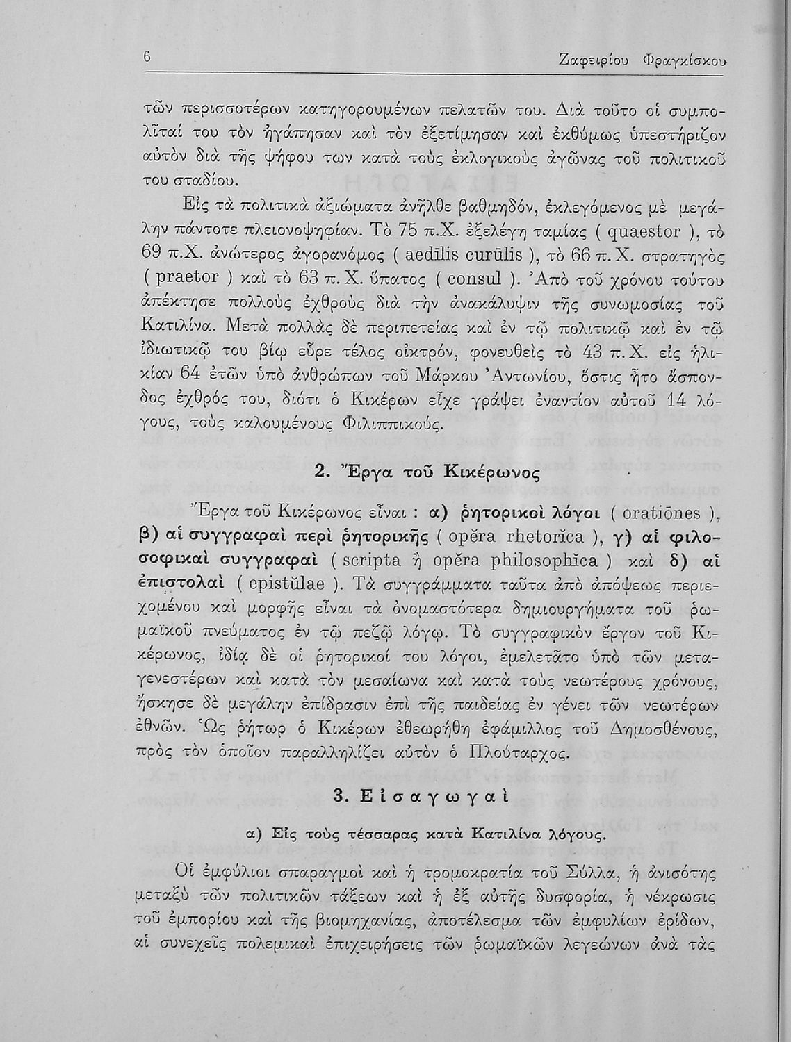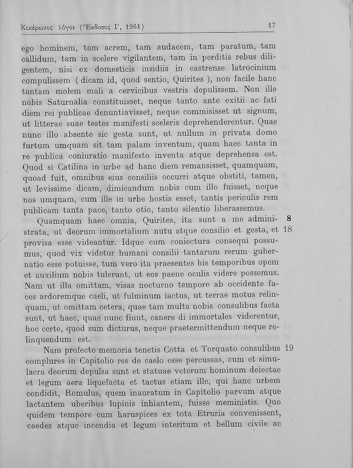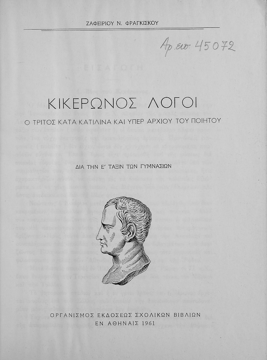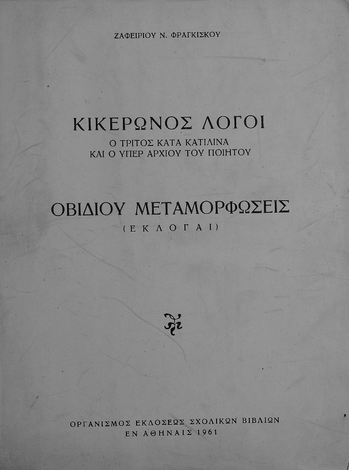 Σχολικό εγχειρίδιο Λατινικών για την Ε΄ Γυμνασίου που περιέχει βιογραφικό σημείωμα των Κικέρωνα και Οβίδιου, εισαγωγικά σχόλια, κείμενο και ερμηνευτικές σημειώσεις.