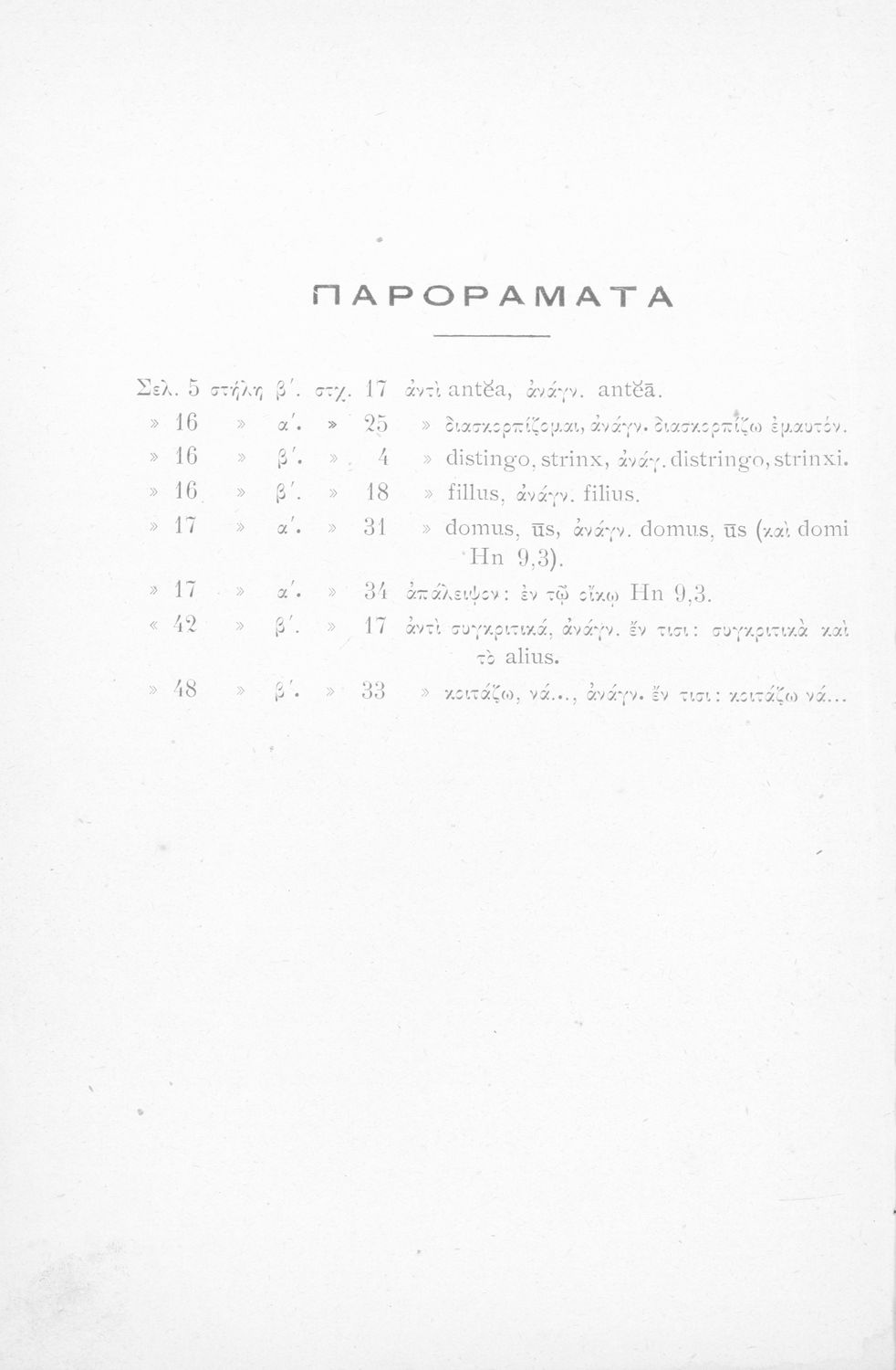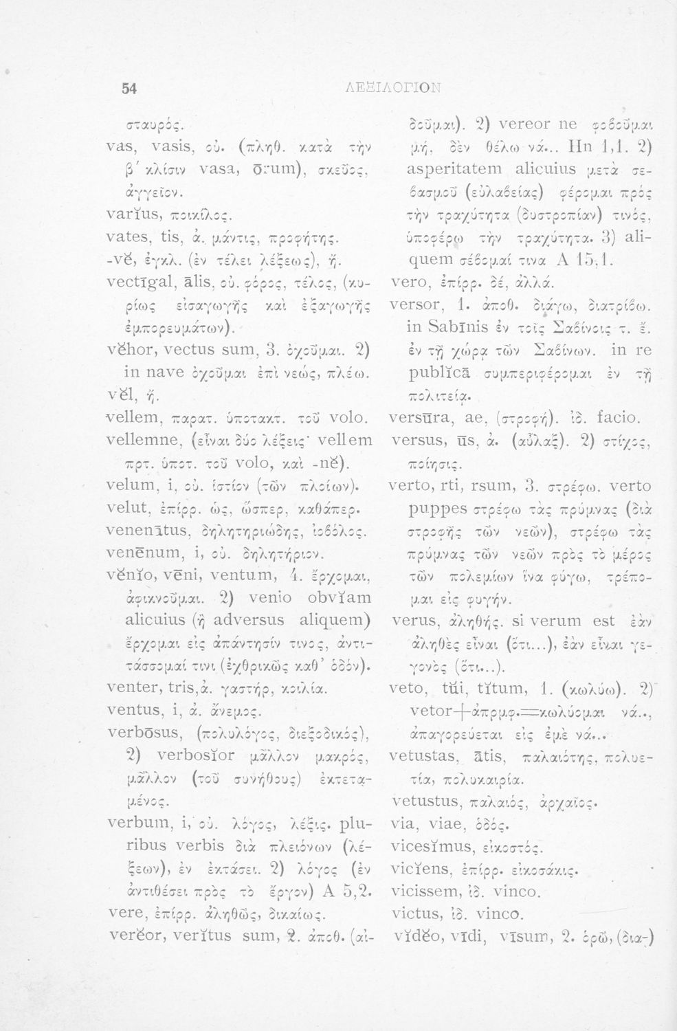 Σχολικό εγχειρίδιο Λατινικών που αποτελεί λεξιλόγιο των Εκλογών του Κορνήλιου Νέπωτα και περιέχει όλες τις λέξεις και φράσεις που περιλαμβάνονται στην εγκεκριμένη τρίτη έκδοση. Ο συγγραφέας ήταν καθηγητής της Λατινικής Φιλολογίας.