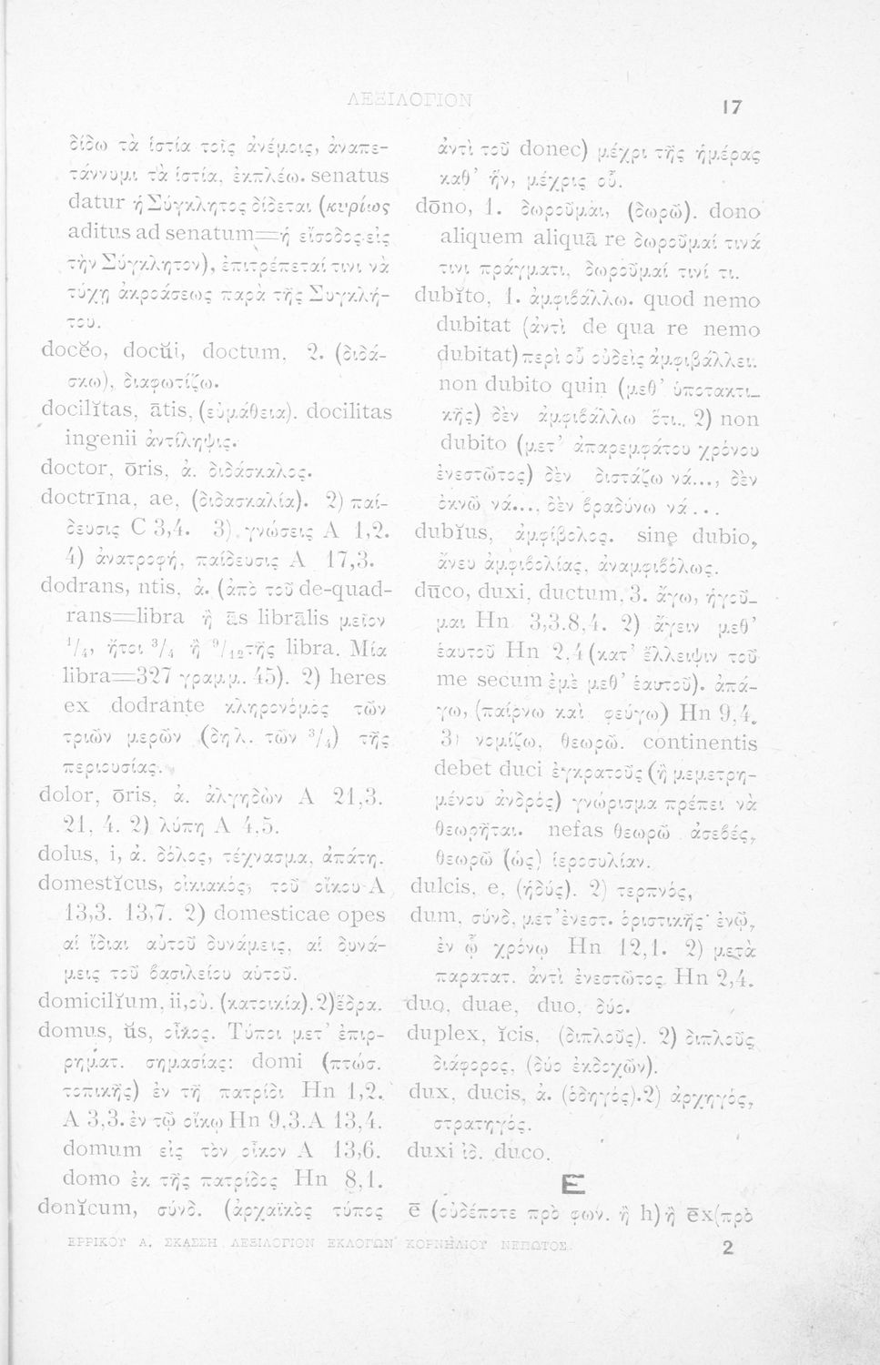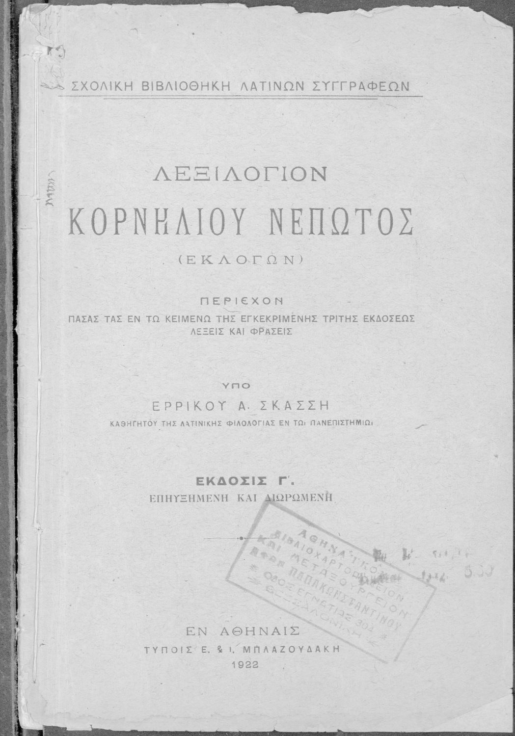 Σχολικό εγχειρίδιο Λατινικών που αποτελεί λεξιλόγιο των Εκλογών του Κορνήλιου Νέπωτα και περιέχει όλες τις λέξεις και φράσεις που περιλαμβάνονται στην εγκεκριμένη τρίτη έκδοση. Ο συγγραφέας ήταν καθηγητής της Λατινικής Φιλολογίας.