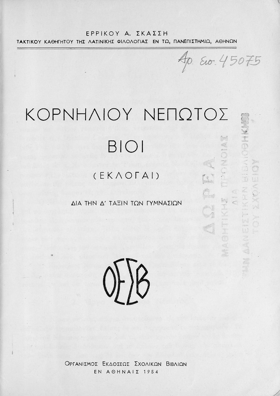 Συγγραφέας: Κορνήλιος Νέπως (Cornelius Nepos), Ερρίκος Α. Σκάσσης (σχόλια/παρατηρήσεις), Κ. Σταυρόπουλος (επιμέλεια)