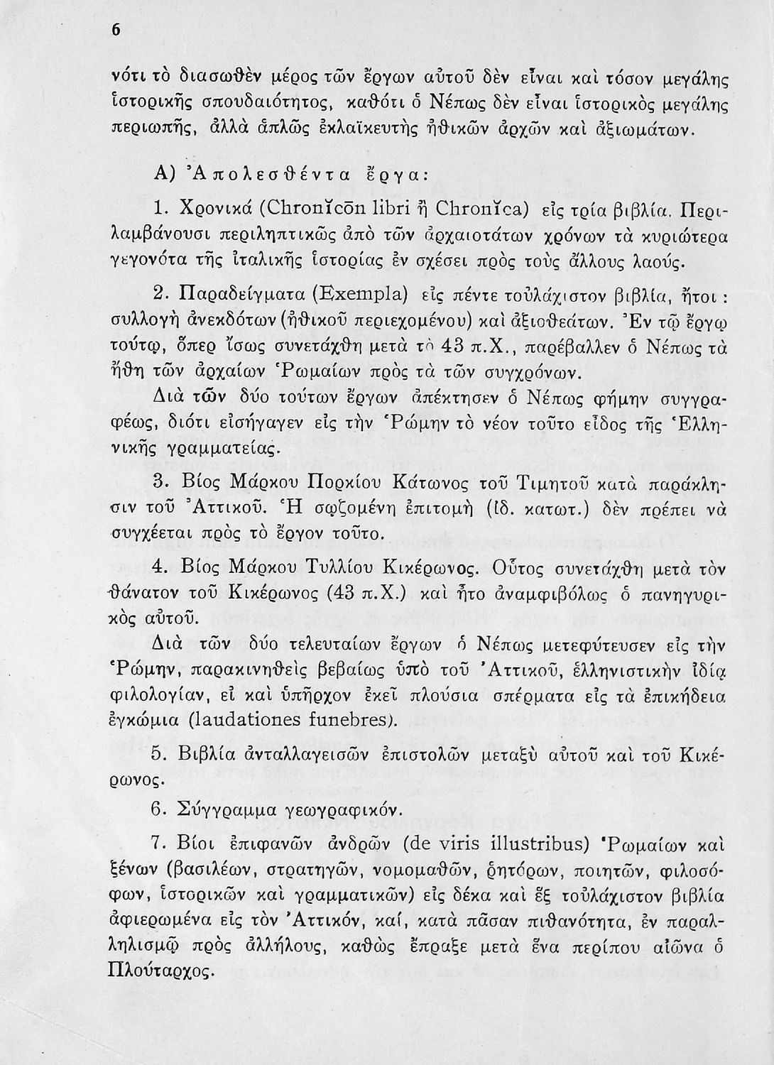 Σχολικό εγχειρίδιο Λατινικών για την Δ΄ Γυμνασίου παλαιού τύπου και την Ε΄ Γυμνασίου νέου τύπου που περιέχει σύντομο βιογραφικό σημείωμα του Νέπωτα, αποσπάσματα από τα έργα Αμίλκας, Αννίβας, Κάτων και Αττικός ...