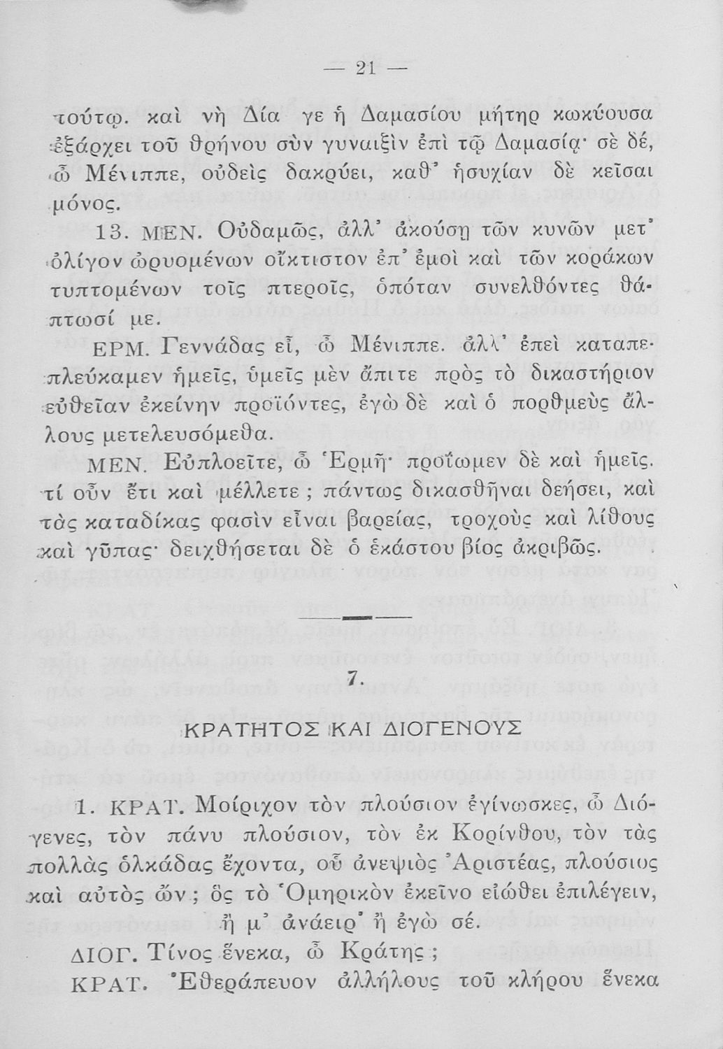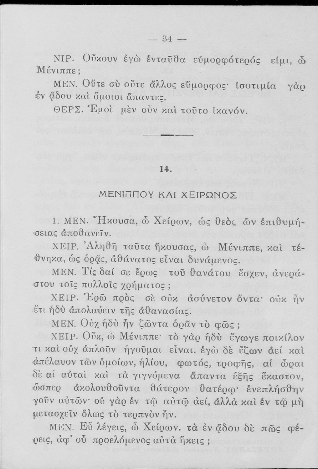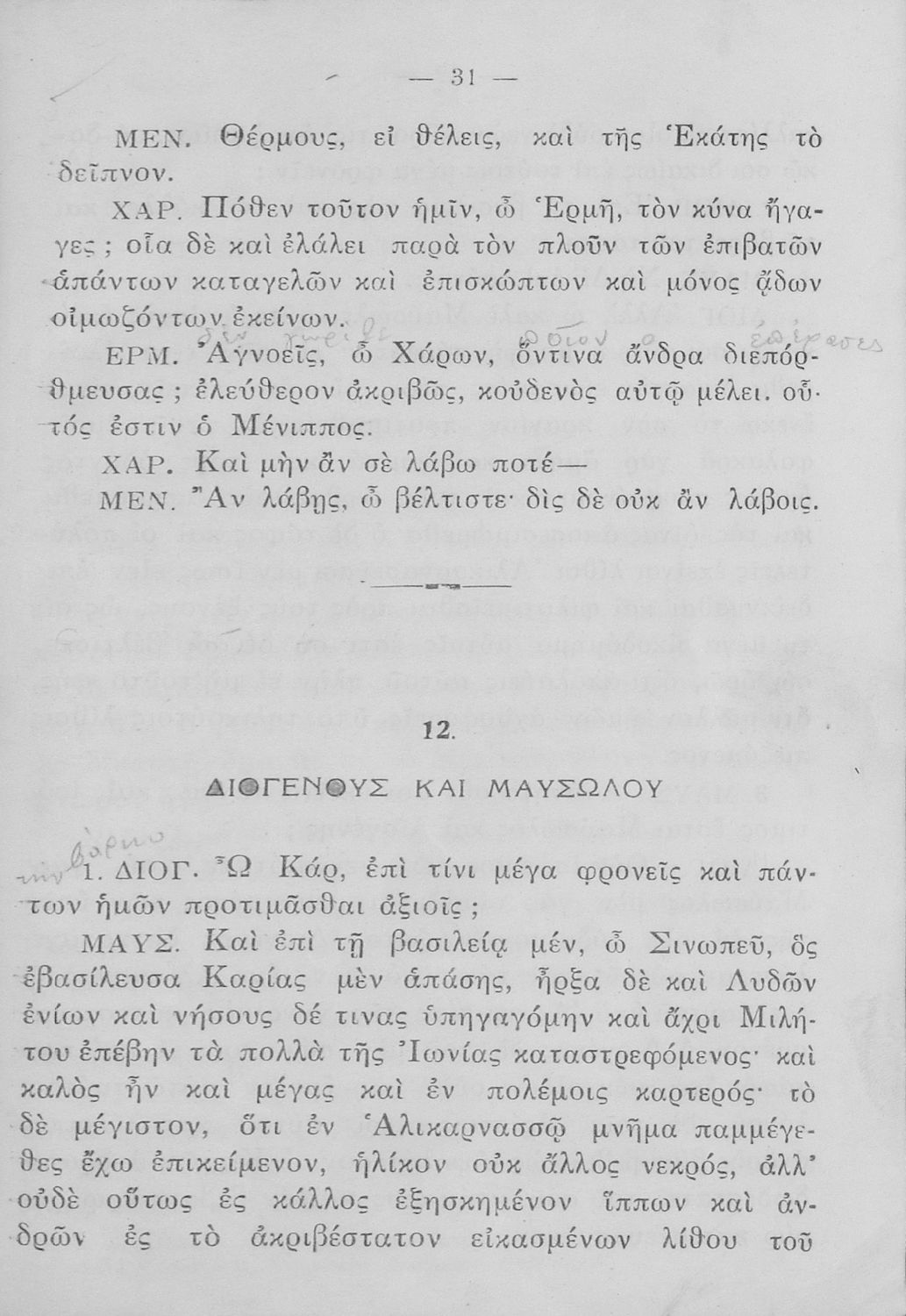 Σχολικό εγχειρίδιο Αρχαίων Ελληνικών Α΄ Γυμνασίου που περιλαμβάνει εισαγωγή στη ζωή και το έργο του Λουκιανού, αποσπάσματα από του Νεκρικούς διαλόγους και ερμηνευτικές σημειώσεις.