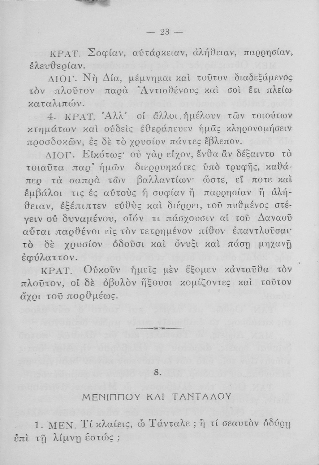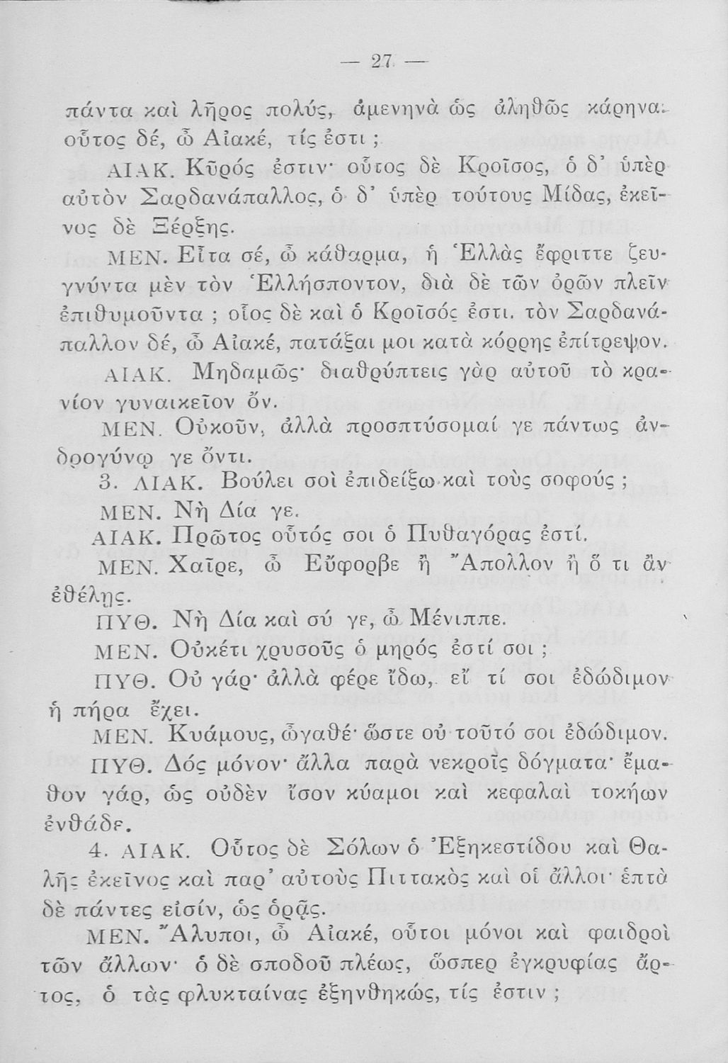 LDR 01463 2200217 4500 035 ## _a01-45077 040 ## _aΙνστιτούτο Εκπαιδευτικής Πολιτικής 041 ## _ael 100 ## _aΛουκιανός _aΧρίστος Α. Παπαναστασίου _aΝικόλαος Ε. Φραγκίσκος (σχόλια) 110 ## _a45077 245 0# _aΛουκιανού Νεκρικοί Διάλογοι Εκλογαί, προς χρήσιν των μαθητών της Α΄ τάξεως των Γυμνασίων και των Ημιγυμνασίων και της των αντιστοίχων σχολών της Μέσης Εκπαιδεύσεως 250 ## _a3η Έκδοση 260 ## _aΑθήνα _bΒιβλιοπωλείο Ιωάννη Ν. Σιδέρη _c1936 300 ## _a56 _c19 520 ## _aΣχολικό εγχειρίδιο Αρχαίων Ελληνικών Α΄ Γυμνασίου που περιλαμβάνει εισαγωγή στη ζωή και το έργο του Λουκιανού, αποσπάσματα από του Νεκρικούς διαλόγους και ερμηνευτικές σημειώσεις. 521 ## _aΑ' Γυμνασίου 522 ## _aΕλλάδα 546 ## _aΚαθαρεύουσα 563 ## _aΣκληρό Εξώφυλλο 583 ## _a44429/12-8-1932 _c1932 650 #4 _aΔιογένης _aΘερσίτης _aΚυνικοί φιλόσοφοι _aΜαυσωλός _aΜένιππος _aΝιρεύς