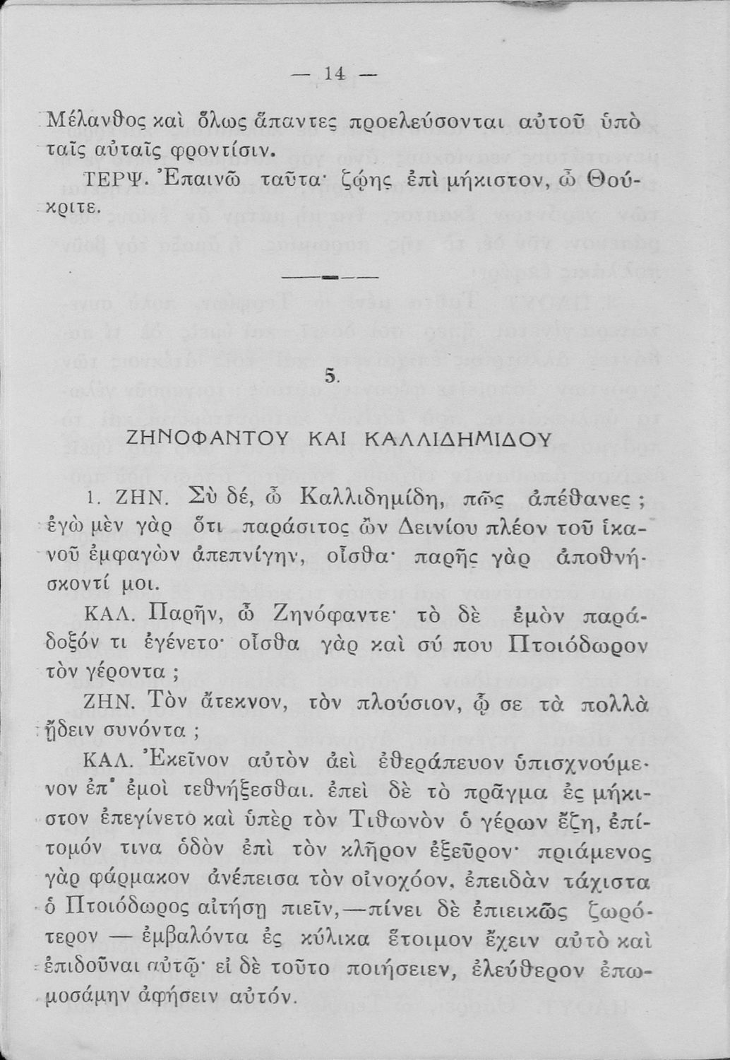 Βαθμίδα εκπαίδευσης: Δευτεροβάθμια Τάξη: Α' Γυμνασίου Μάθημα: Αρχαία Ελληνικά Γλώσσα: Καθαρεύουσα Παρουσίαση περιεχομένου: Σχολικό εγχειρίδιο Αρχαίων Ελληνικών Α΄ Γυμνασίου που περιλαμβάνει εισαγωγή στη ζωή και το έργο του Λουκιανού, αποσπάσματα από του Νεκρικούς διαλόγους και ερμηνευτικές σημειώσεις. |