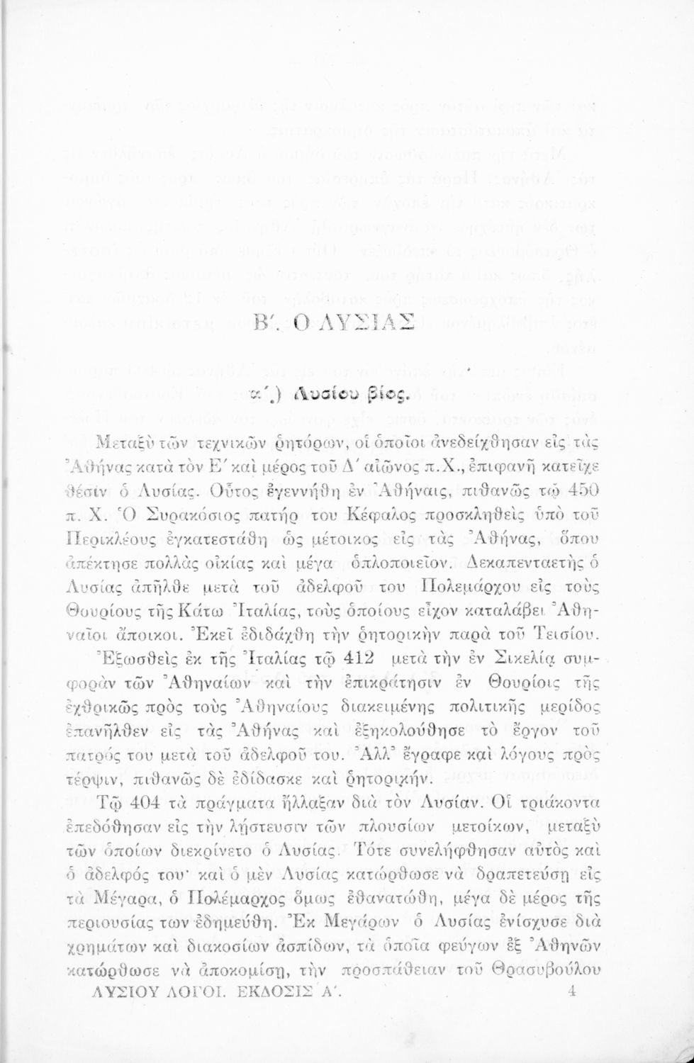 Λυσίου Λόγοι Εκλογαί δια την Γ' τάξιν του εξαταξίου Γυμνασίου και των αντιστοίχων σχολών της Μέσης Εκπαιδεύσεως