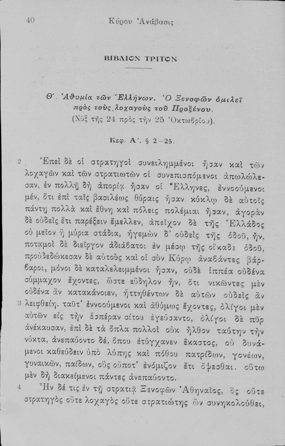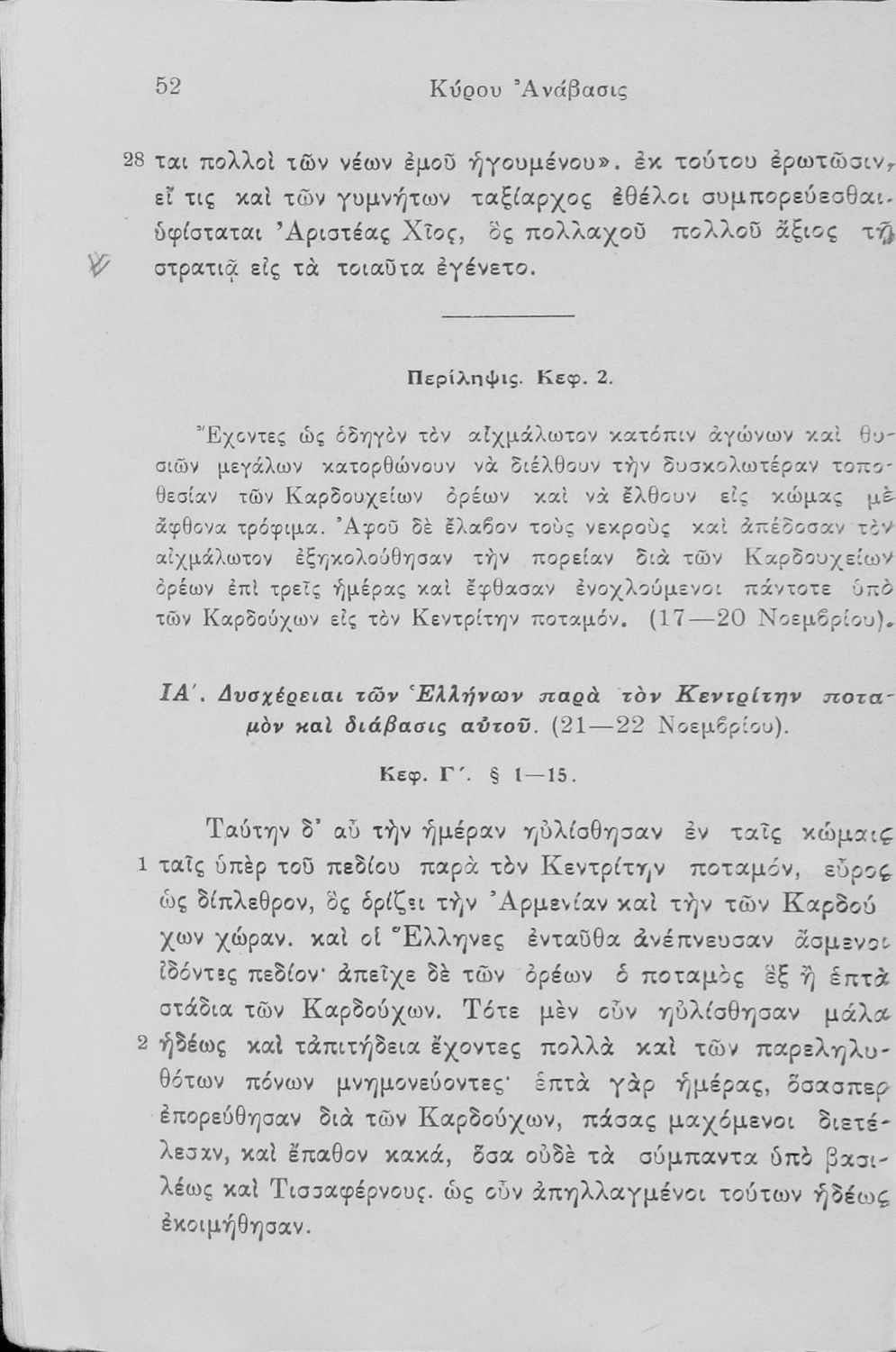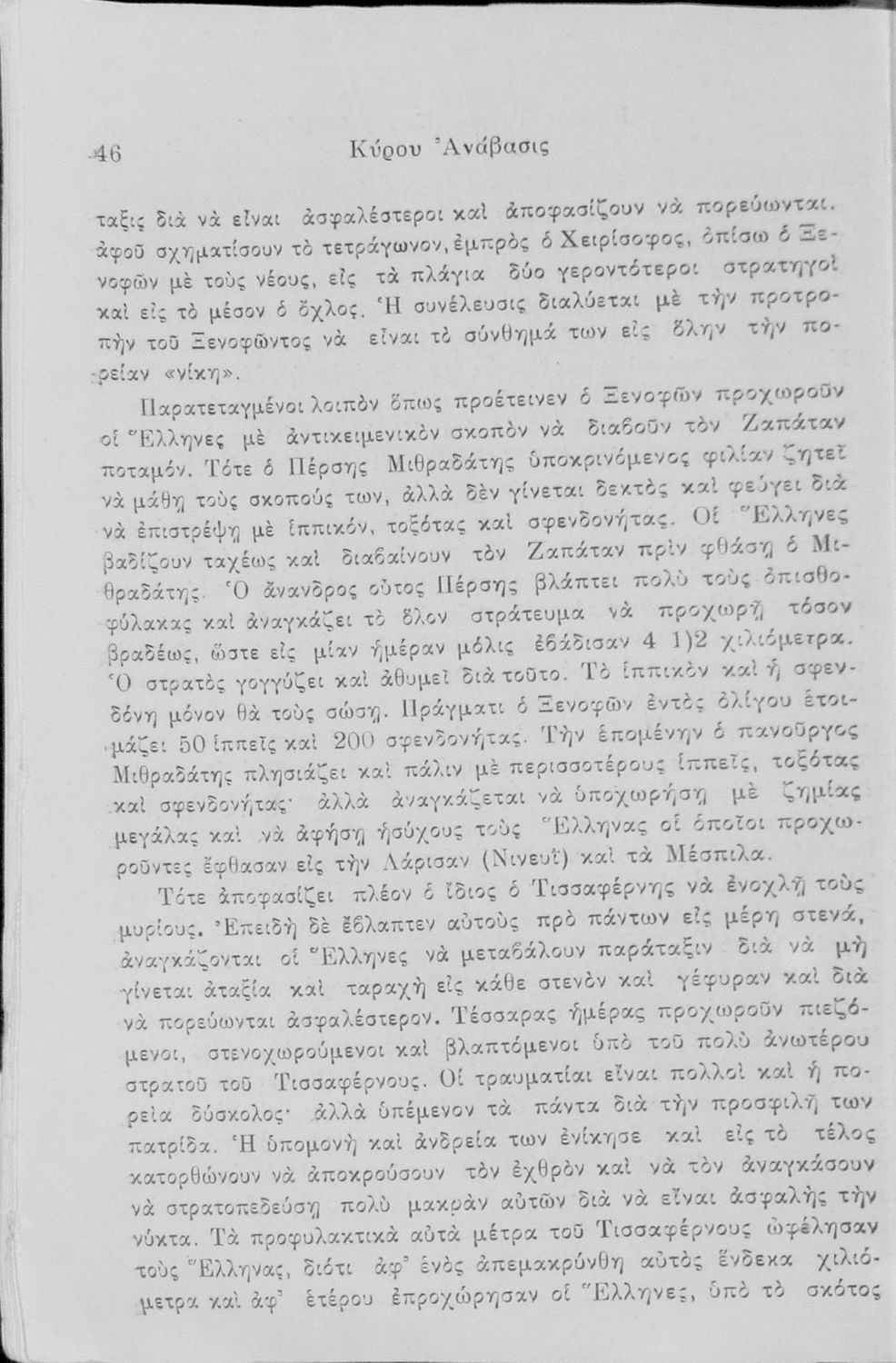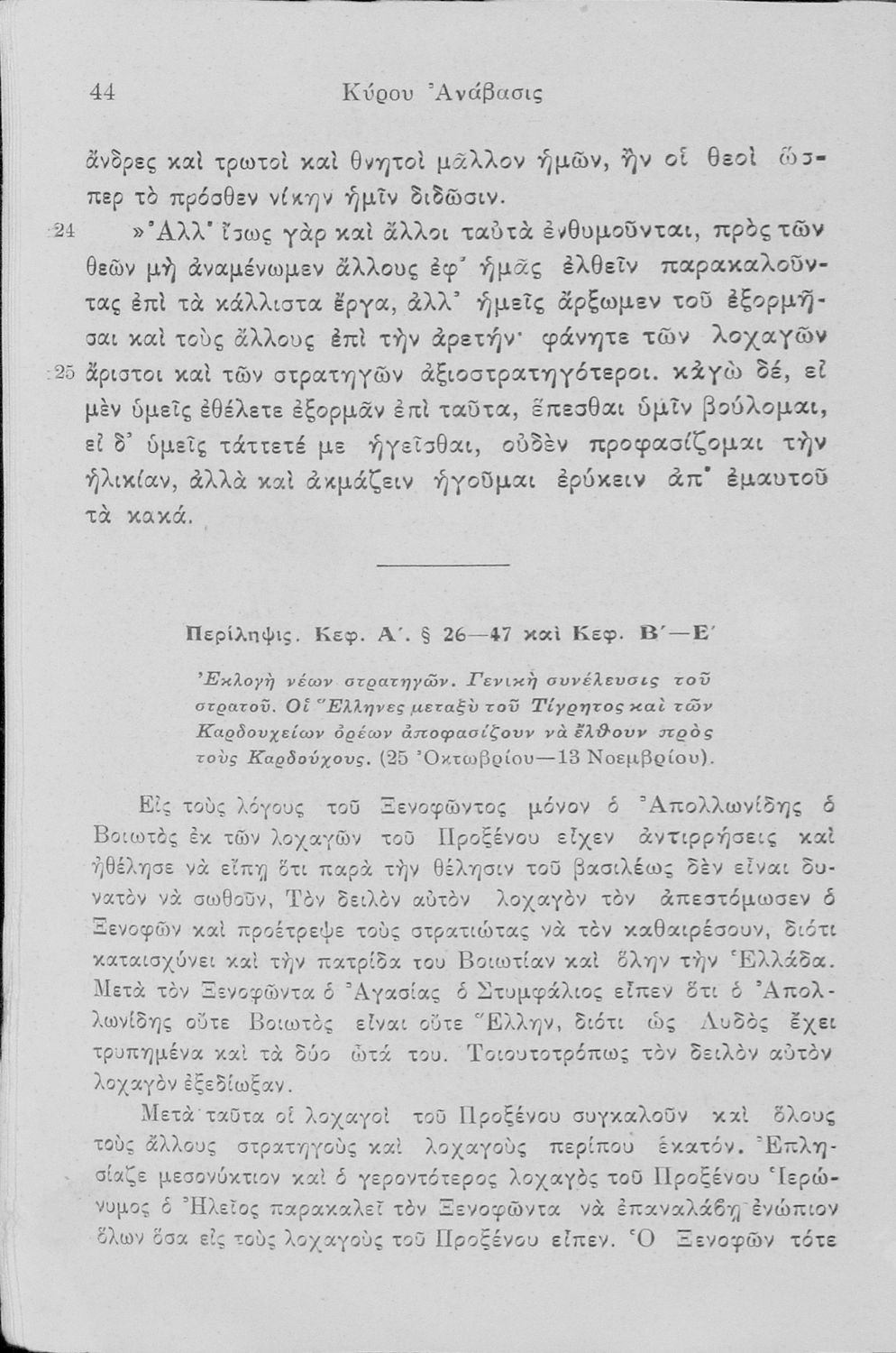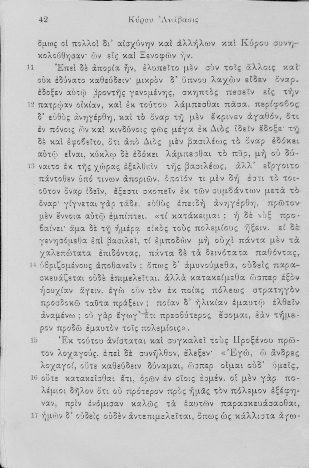 Σχολικό εγχειρίδιο Αρχαίων Ελληνικών Β΄ Γυμνασίου που περιλαμβάνει αποσπάσματα από το έργο του Ξενοφώντα Κύρου Ανάβασις, εισαγωγικά σχόλια για τη ζωή και το έργο του, ερμηνευτικές και γραμματικές παρατηρήσεις.
