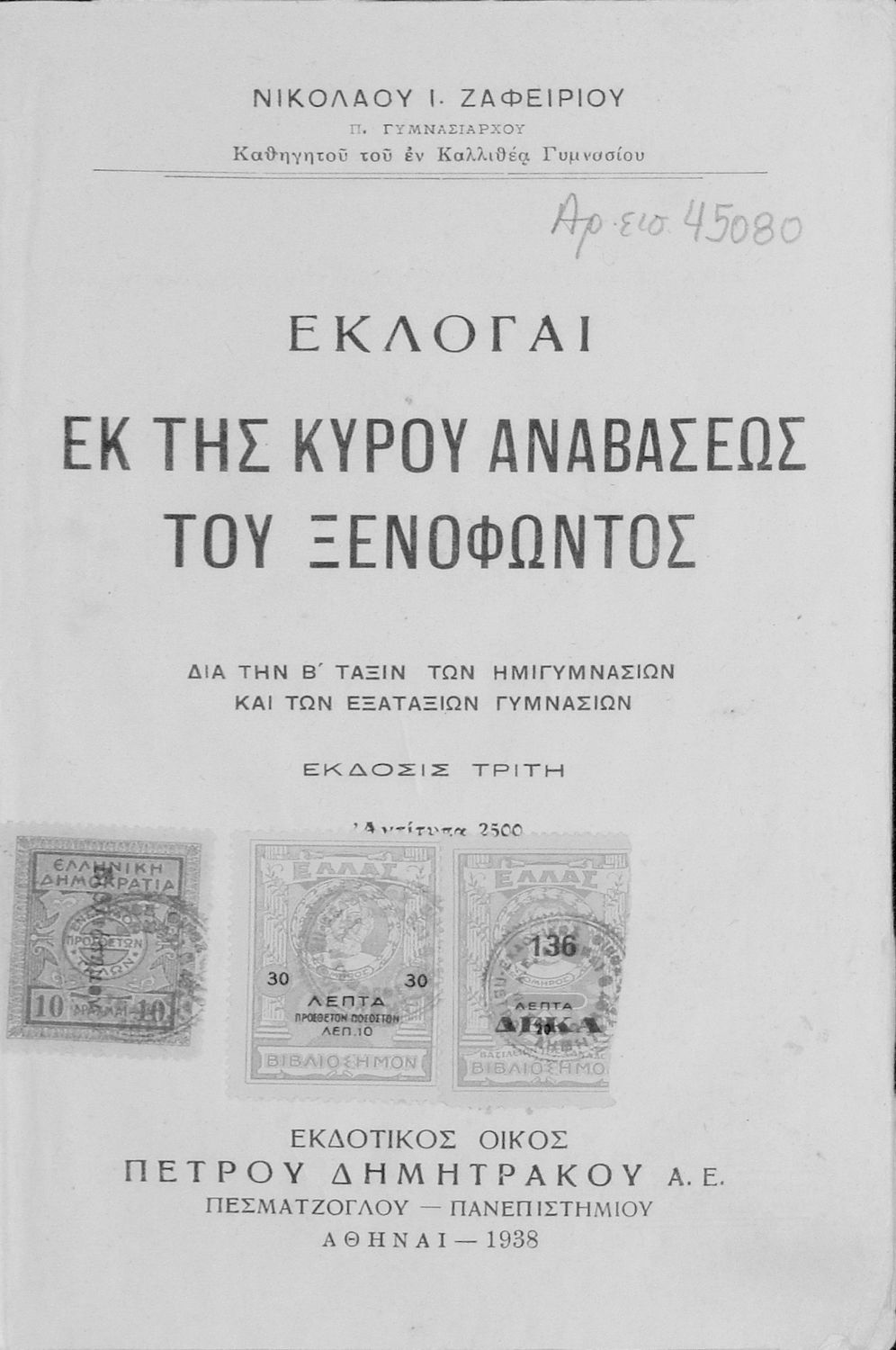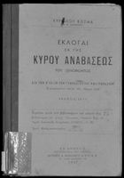Τίτλος: Εκλογαί εκ της Κύρου Αναβάσεως του Ξενοφώντος. Δια την Β΄ Τάξιν των Ημιγυμνασίων και των Εξατάξιων Γυμνασίων
