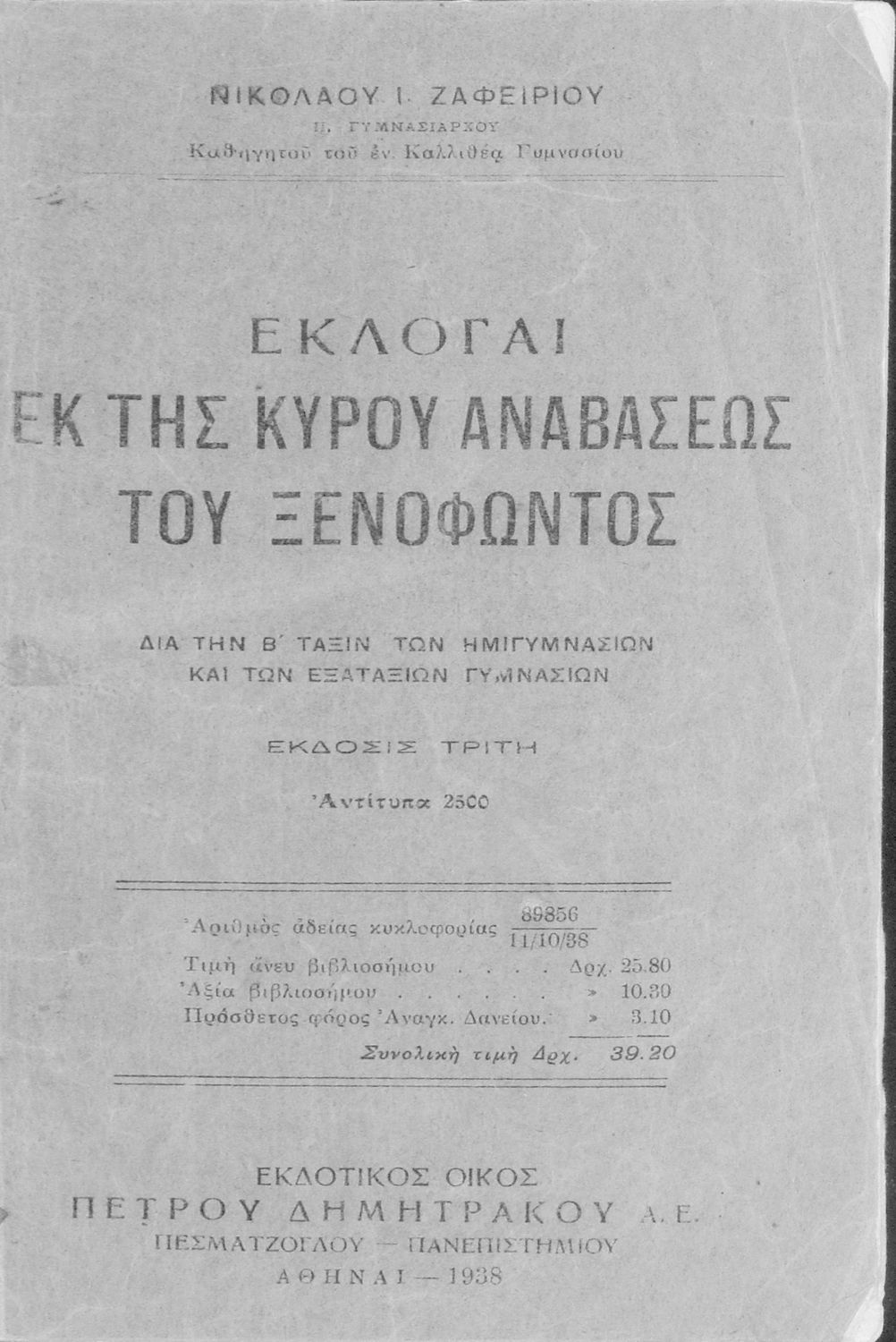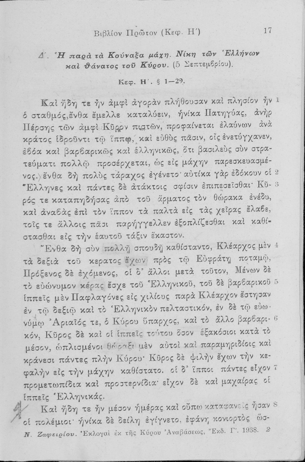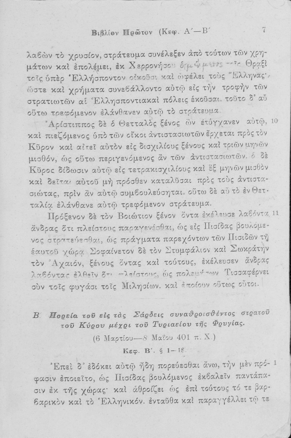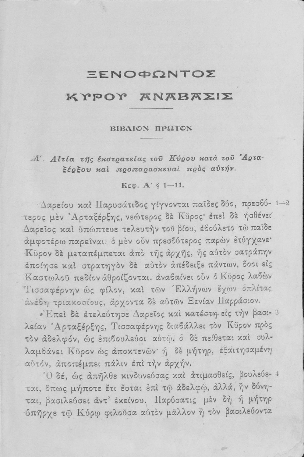 Εκλογαί εκ της Κύρου Αναβάσεως του Ξενοφώντος. Δια την Β΄ Τάξιν των Ημιγυμνασίων και των Εξατάξιων Γυμνασίων